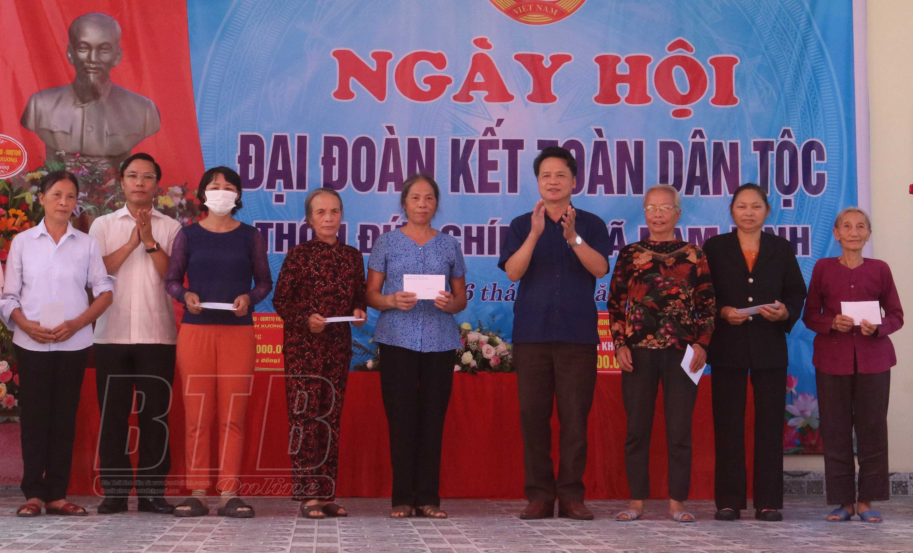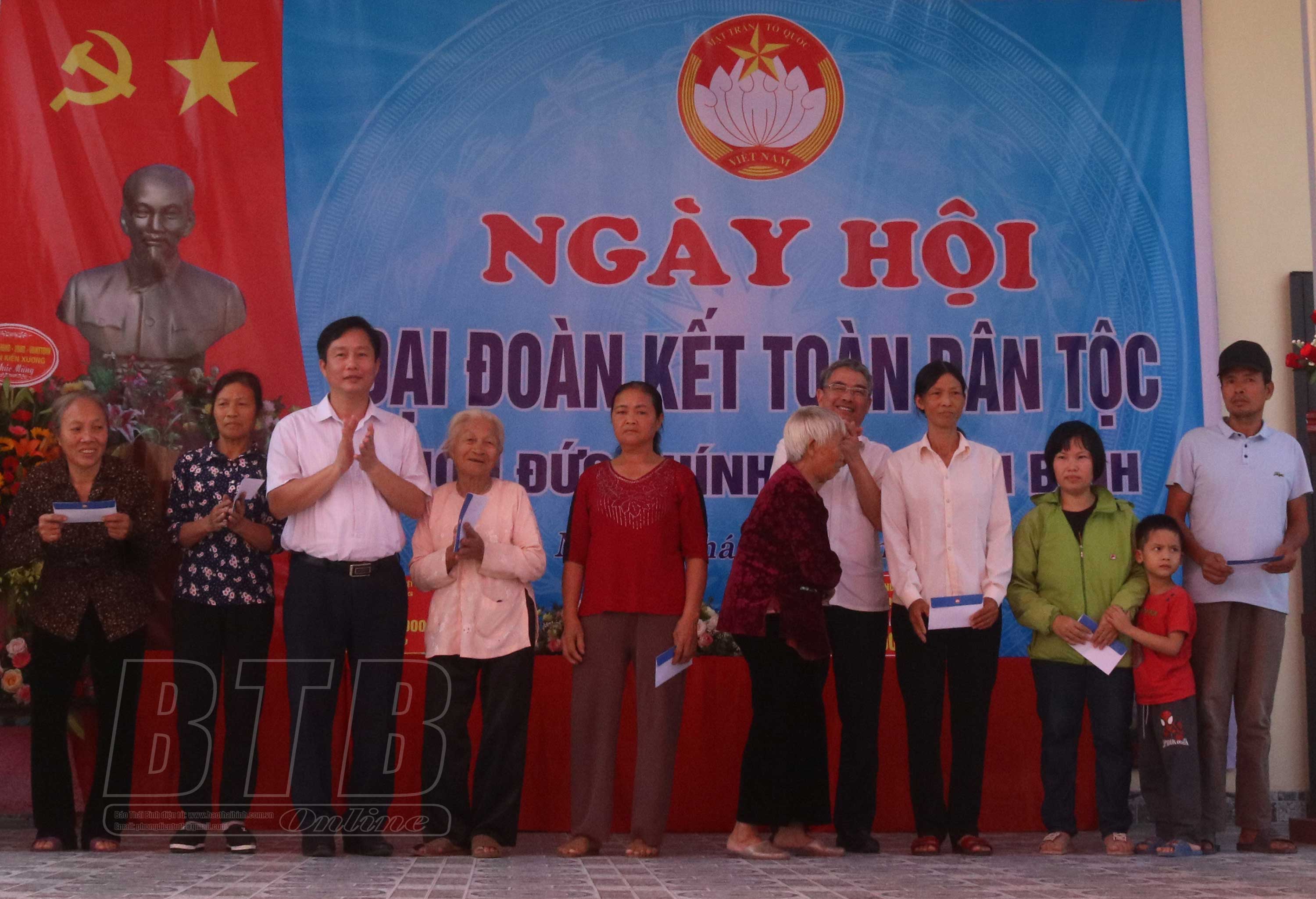 Nhân dịp này, các đồng chí lãnh đạo tỉnh, huyện Kiến Xương đã tặng quà cho các hộ nghèo, hộ có hoàn cảnh khó khăn trong thôn.