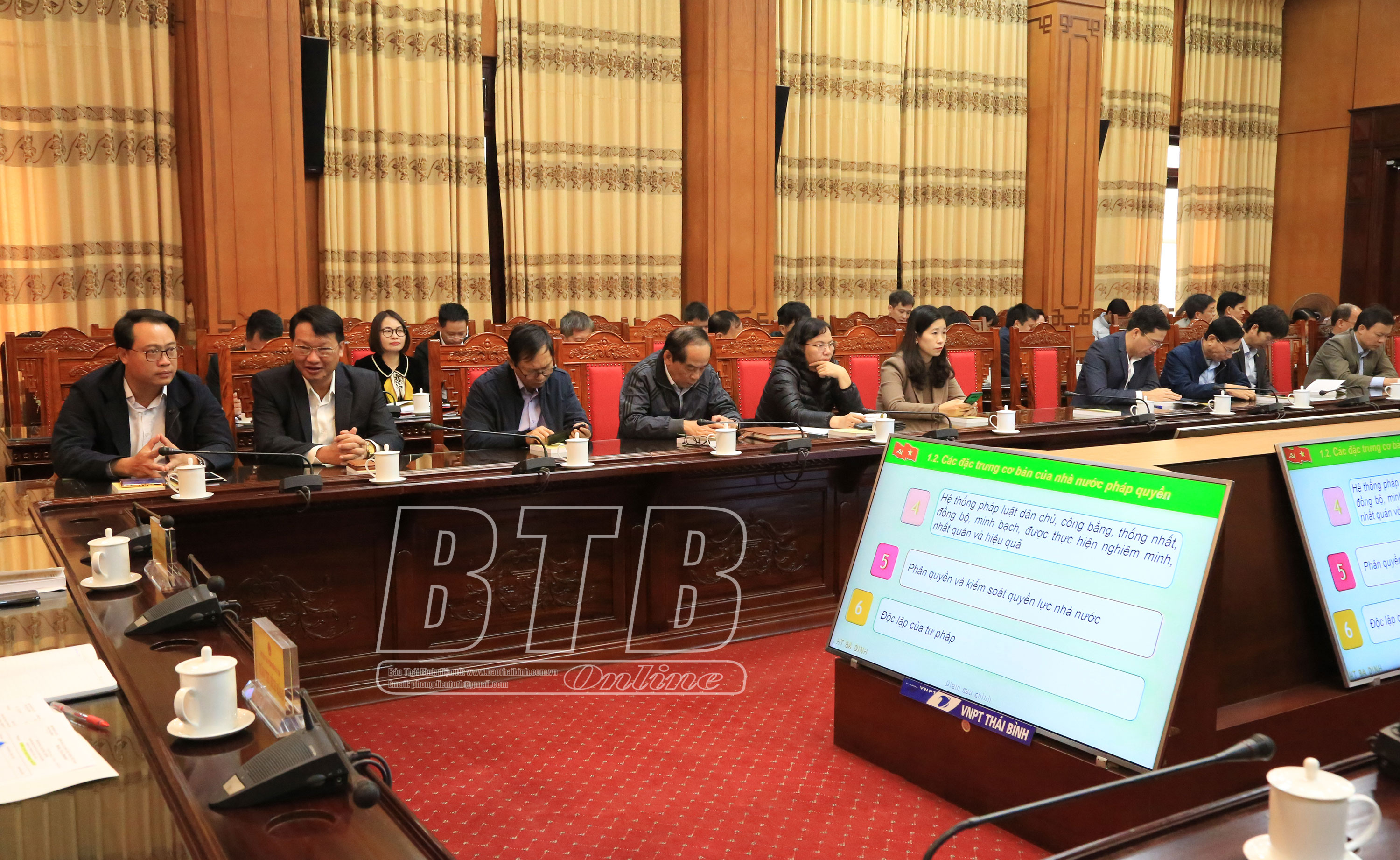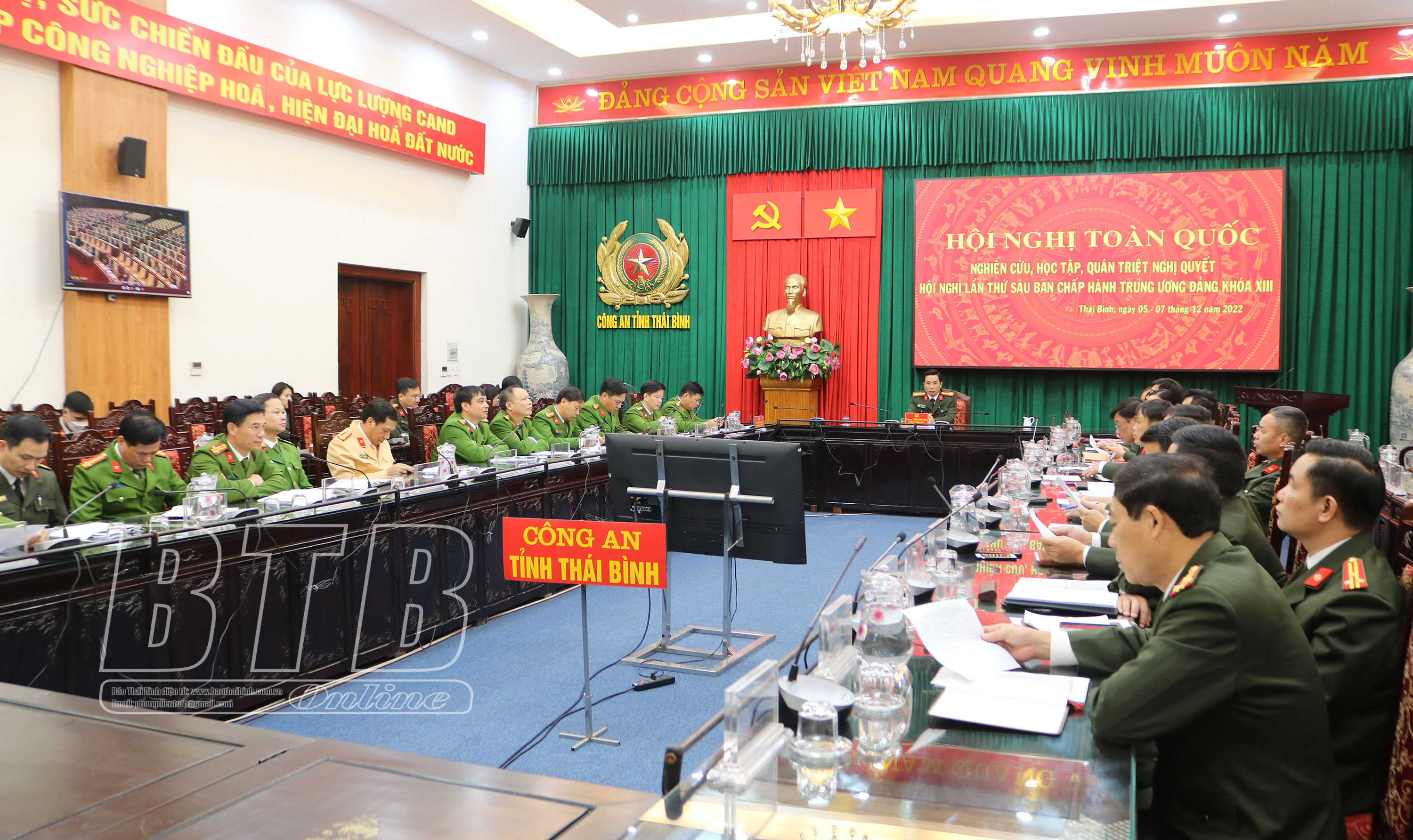 Đại biểu dự hội nghị tại các điểm cầu: Công an tỉnh, Bộ Chỉ huy Quân sự tỉnh, Bộ Chỉ huy Bộ đội Biên phòng tỉnh, Đảng ủy Khối các cơ quan tỉnh, Báo Thái Bình.