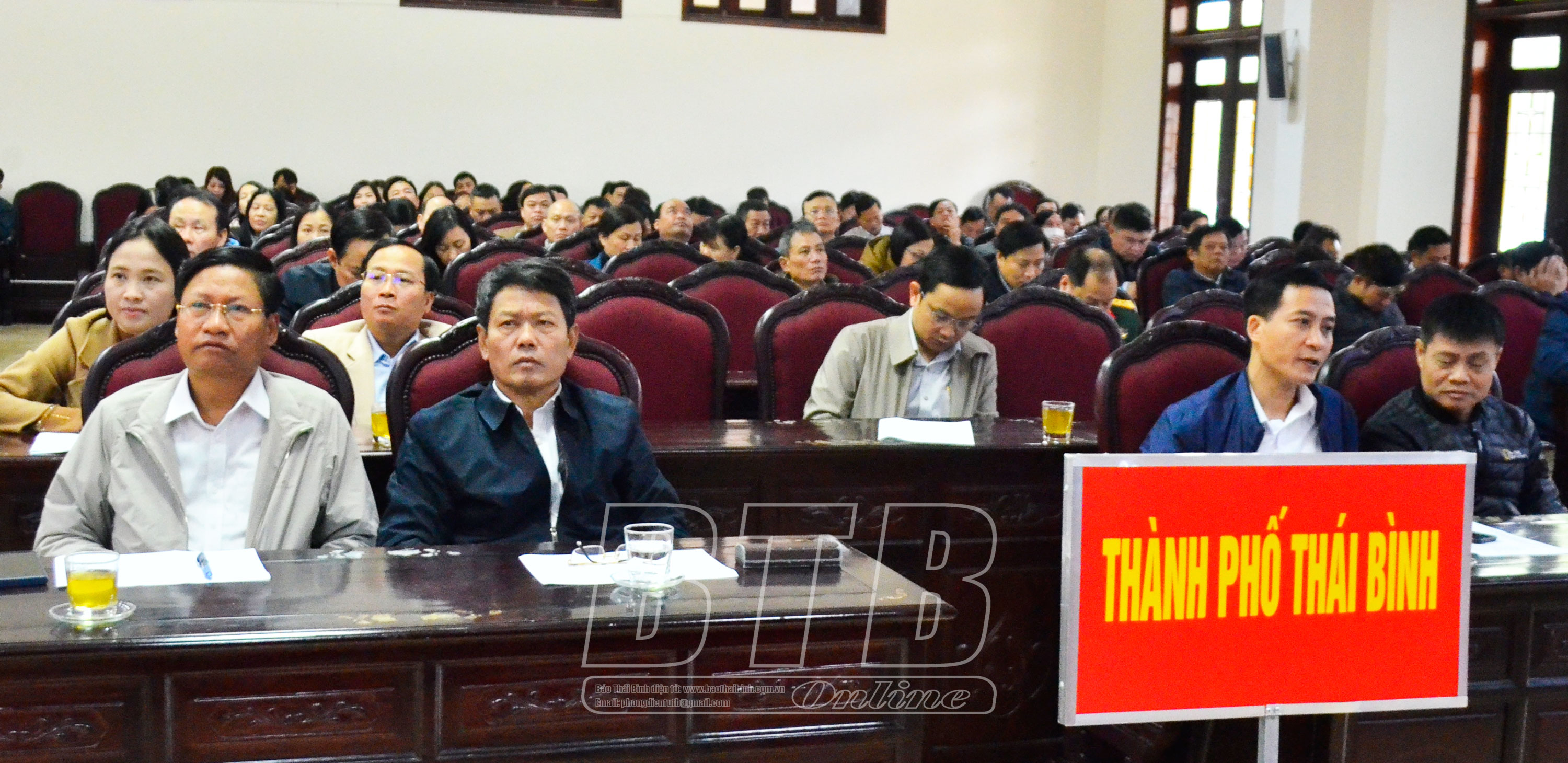 Đại biểu dự hội nghị tại các điểm cầu: Thành phố, Tiền Hải, Quỳnh Phụ, Vũ Thư, Đông Hưng, Thái Thụy, Kiến Xương và Hưng Hà.
