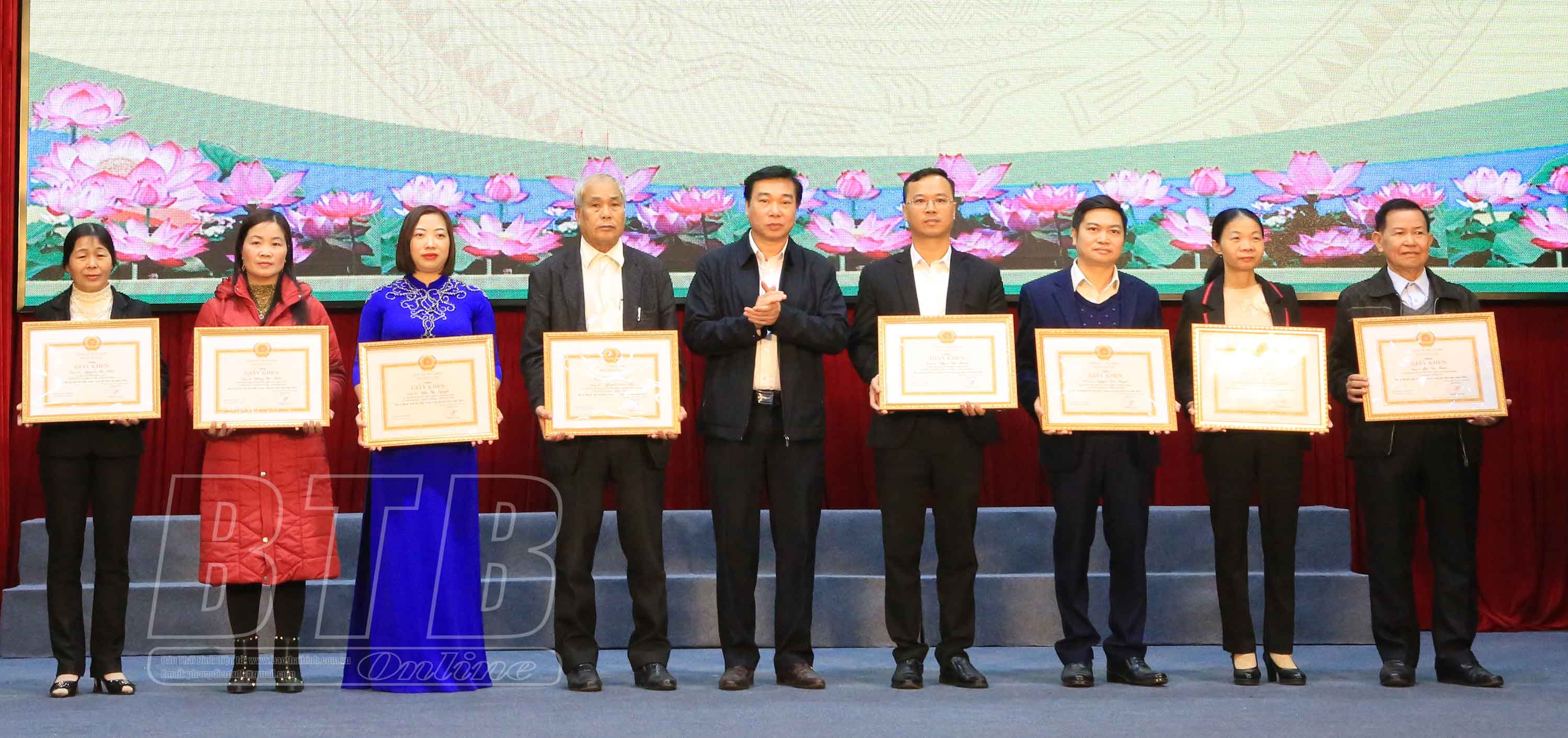 Đồng chí Nguyễn Văn Giang, Ủy viên Ban Thường vụ, Trưởng ban Dân vận Tỉnh ủy tặng giấy khen cho các cá nhân tiêu biểu.