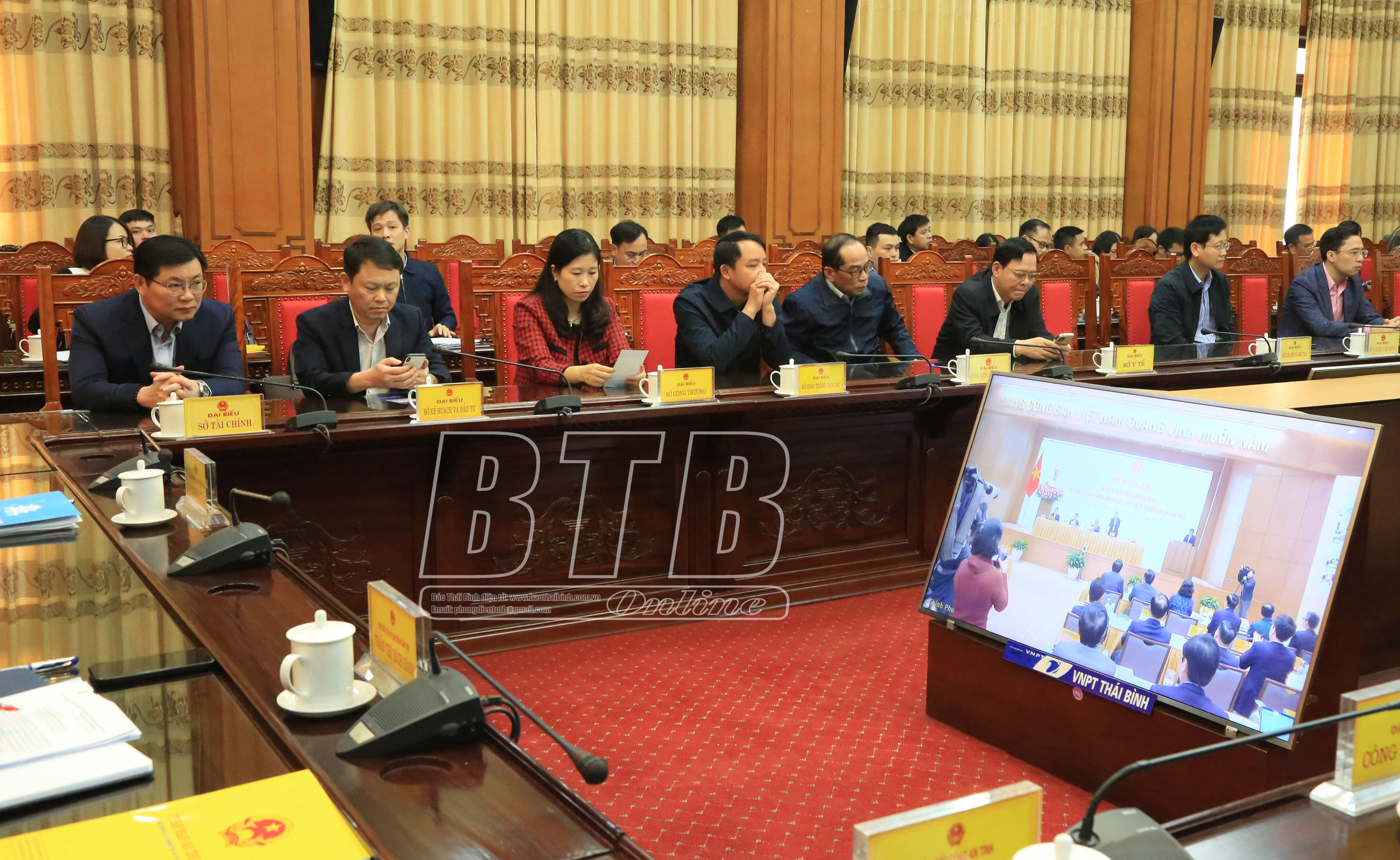 Các đại biểu dự hội nghị trực tuyến tại điểm cầu tỉnh Thái Bình.