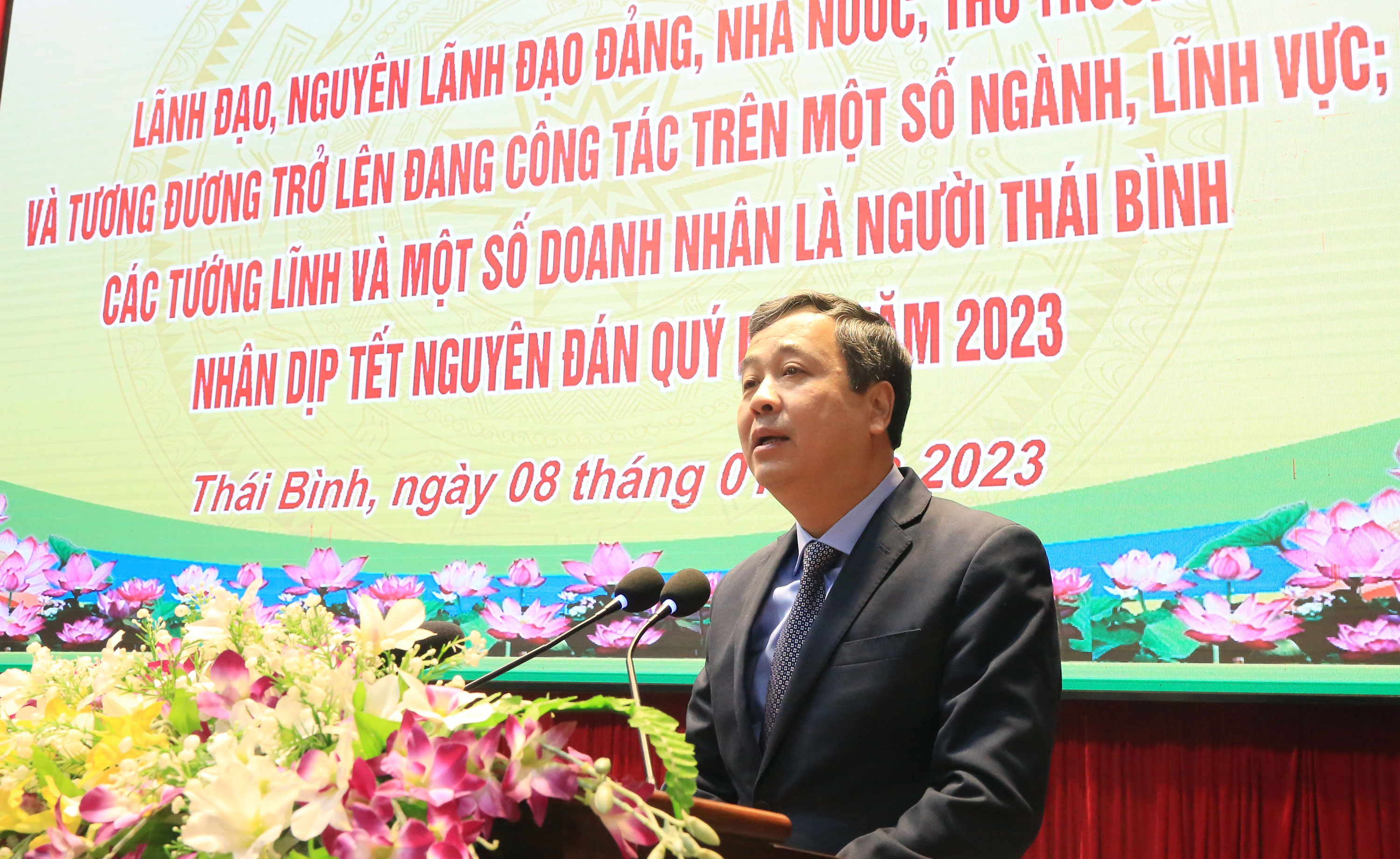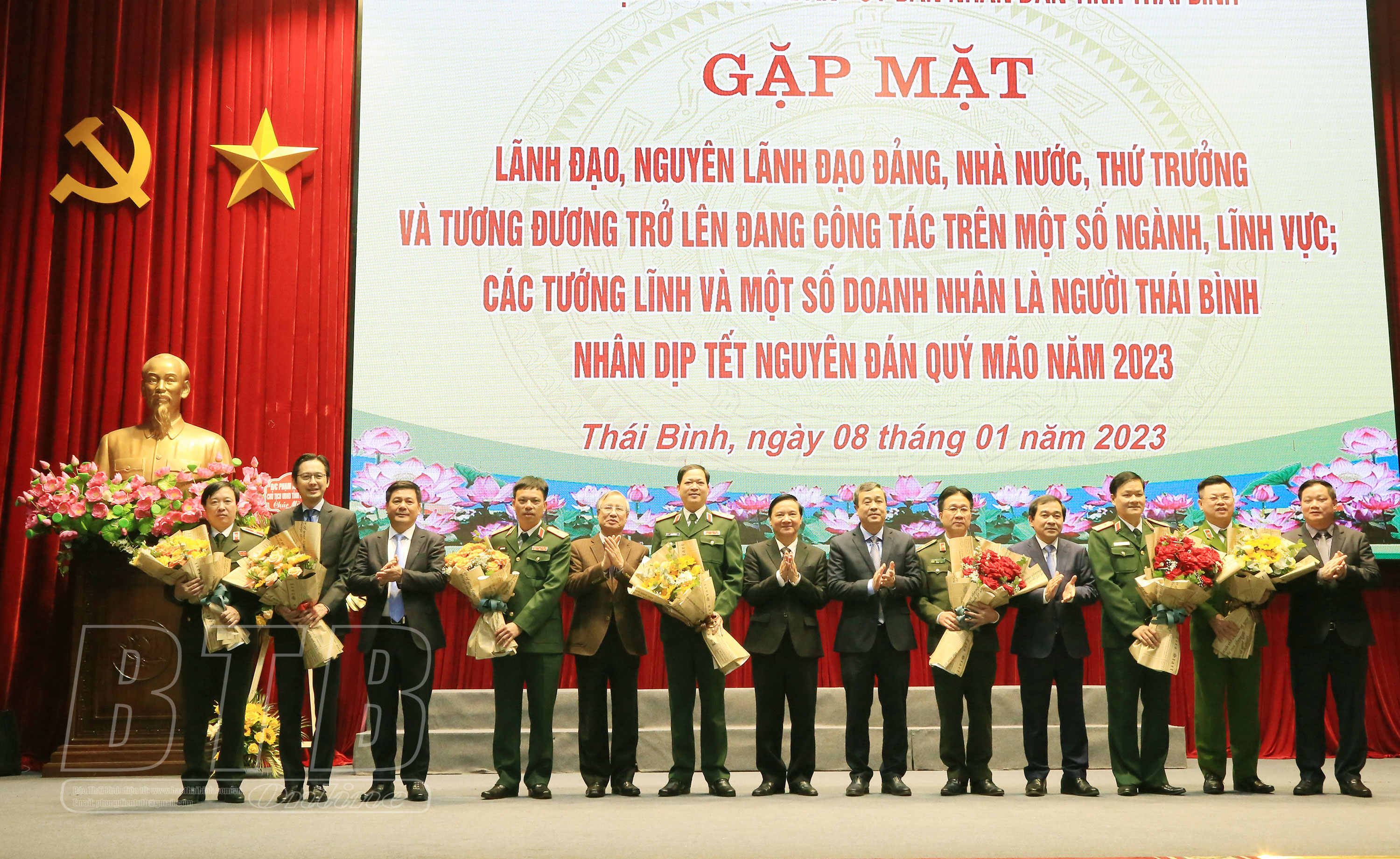 Tại buổi gặp mặt, đồng chí Nguyễn Khắc Thận, Phó Bí thư Tỉnh ủy, Chủ tịch UBND tỉnh thông tin những kết quả nổi bật trong phát triển kinh tế - xã hội của tỉnh trong 2022. Trong đó, tốc độ tăng trưởng GRDP trên địa bàn tăng 9,52% so với năm 2021. Tỷ lệ giải ngân vốn đầu tư công tiếp tục nằm trong tốp dẫn đầu cả nước. Thu ngân sách trên địa bàn đạt trên15.000 tỷ đồng, trong đó thu nội địa đạt mốc12.000 tỷ đồng.Thu hút đầu tư tiếp tục có kết quả tích cực; năm 2022 tổng số vốn đầu tư đạt khoảng 33.000 tỷ đồng, tăng gấp 1,6 lần so với năm 2021. Trong đó, vốn đầu tư trực tiếp nước ngoài đạt trên 660 triệu USD. Văn hóa - xã hội không ngừng được nâng cao, an sinh xã hội, chế độ, chính sách đối với người có công, hộ nghèo tiếp tục được quan tâm. Công tác quốc phòng, quân sự địa phương được tăng cường; an ninh chính trị được giữ vững, trật tự an toàn xã hội được bảo đảm. Công tác xây dựng Đảng và hệ thống chính trị được thực hiện đồng bộ, hiệu quả. Những kết quả đó bên cạnh công tác lãnh đạo, chỉ đạo, giúp đỡ của Trung ương là sự nỗ lực, quyết tâm cao của cả hệ thống chính trị, sự đoàn kết, thống nhất trong lãnh đạo, chỉ đạo, quyết liệt trong tổ chức thực hiện; sự đồng thuận, ủng hộ của nhân dân và nỗ lực của cộng đồng doanh nghiệp, trong đó có sự quan tâm, giúp đỡ, đóng góp, hỗ trợ rất lớn của những người con quê hương Thái Bình thành đạt trên các lĩnh vực. Năm 2023, Thái Bình tiếp tục giữ vững ổn định an ninh chính trị, trật tự an toàn xã hội, bảo đảm môi trường ổn định; tạo sự đồng thuận cao trong hệ thống chính trị và nhân dân, cùng thống nhất về nhận thức và hành động, quyết tâm đạt được các mục tiêu đề ra. Trong đó, tập trung phát triển kinh tế, thu ngân sách, đẩy mạnh thu hút đầu tư, nhất là thu hút đầu tư trực tiếp nước ngoài và thu hút đầu tư vào Khu kinh tế Thái Bình, thúc đẩy thành lập thêm các khu công nghiệp trong Khu kinh tế; tập trung cao đẩy nhanh tiến độ thi công các công trình, dự án trọng điểm và những công trình mới, phát triển đô thị và hoàn thiện quy hoạch tỉnh...