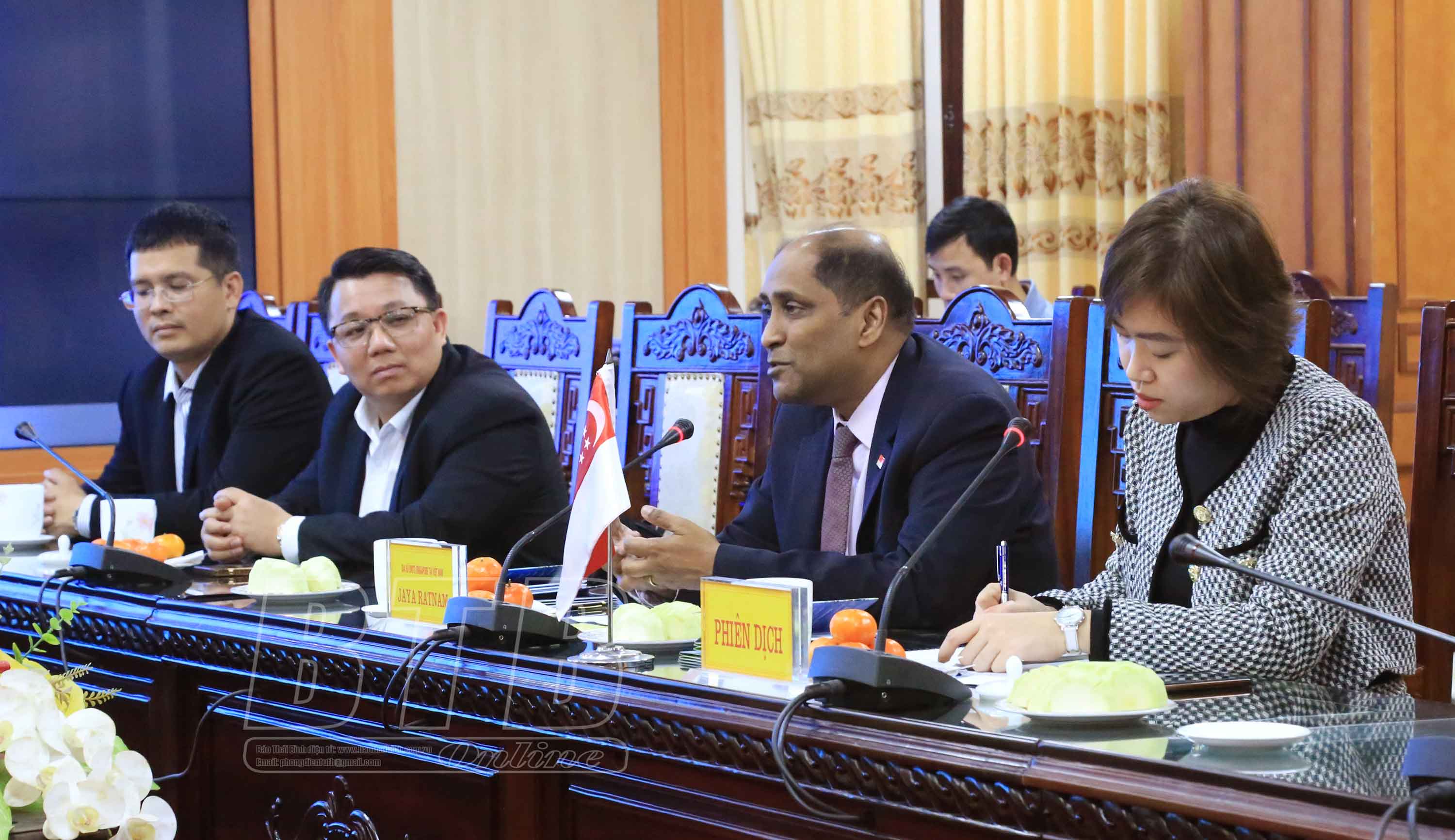 Với vai trò của Đại sứ quán Singapore tại Việt Nam, Đại sứ Jaya Ratnam khẳng định sẽ tạo ra cầu nối thúc đẩy hợp tác giữa Singapore với tỉnh và hỗ trợ Thái Bình tổ chức xúc tiến thu hút đầu tư tại Singapore thời gian tới.