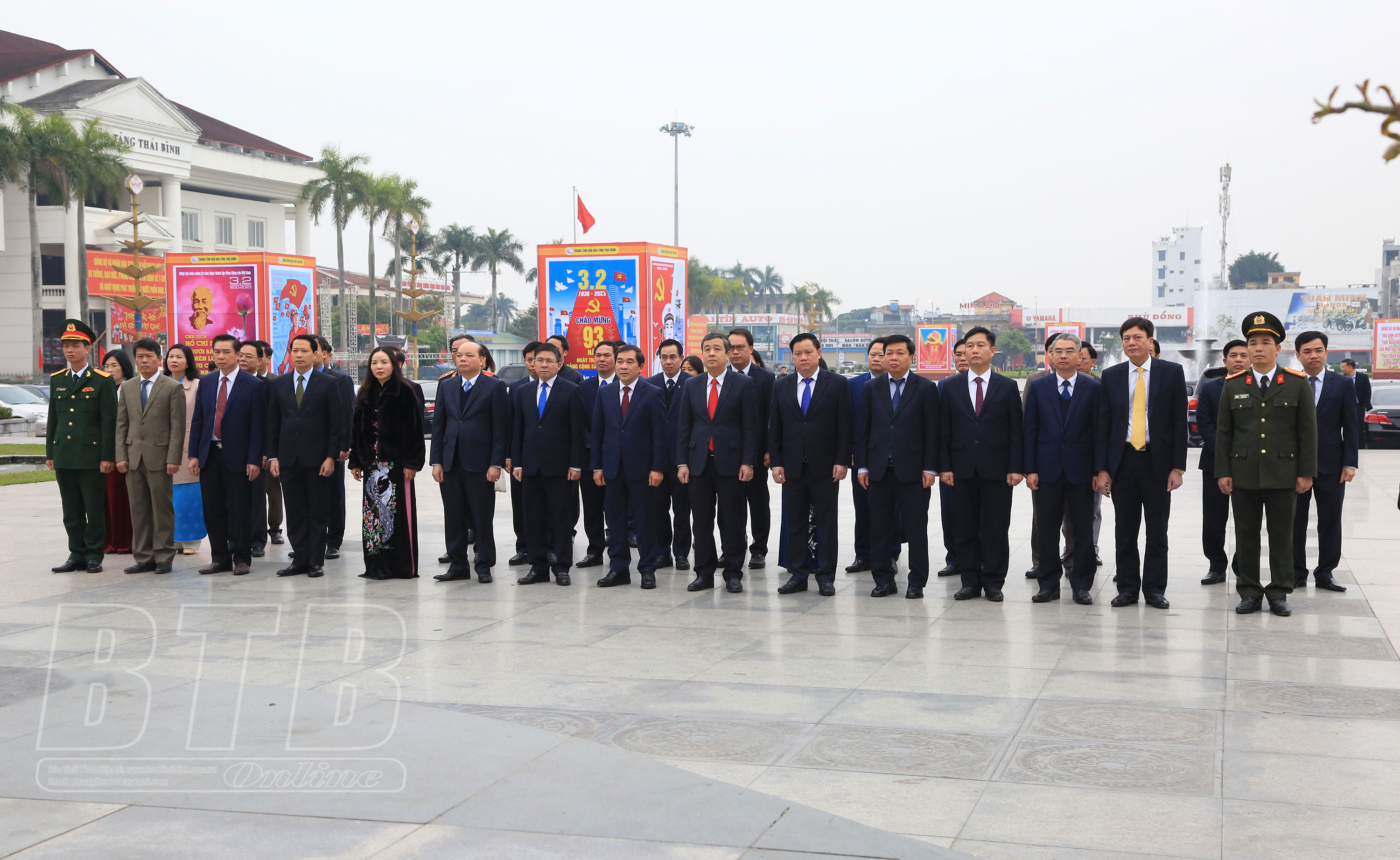 Tại Đền thờ Bác Hồ, Tượng đài Bác Hồ với nông dân Việt Nam, trong không khí trang nghiêm, thành kính, các đồng chí lãnh đạo tỉnh và các đại biểu đã dâng hương, dâng hoa bày tỏ lòng biết ơn vô hạn đối với công lao to lớn của Chủ tịch Hồ Chí Minh, người đã dành trọn đời mình đấu tranh cho nền độc lập, tự do của dân tộc. 93 năm qua, Đảng Cộng sản Việt Nam dưới ánh sáng của Chủ nghĩa Mác - Lênin, tư tưởng Hồ Chí Minh đã lãnh đạo toàn Đảng, toàn dân, toàn quân ta giành được những thắng lợi vẻ vang trong sự nghiệp đấu tranh giải phóng dân tộc, xây dựng và bảo vệ Tổ quốc. Đảng bộ, chính quyền và nhân dân Thái Bình cũng đã nêu cao tinh thần đại đoàn kết, phát huy tiềm năng thế mạnh để phát triển kinh tế - xã hội, nâng cao đời sống vật chất, tinh thần cho nhân dân; xây dựng Đảng trong sạch, vững mạnh.