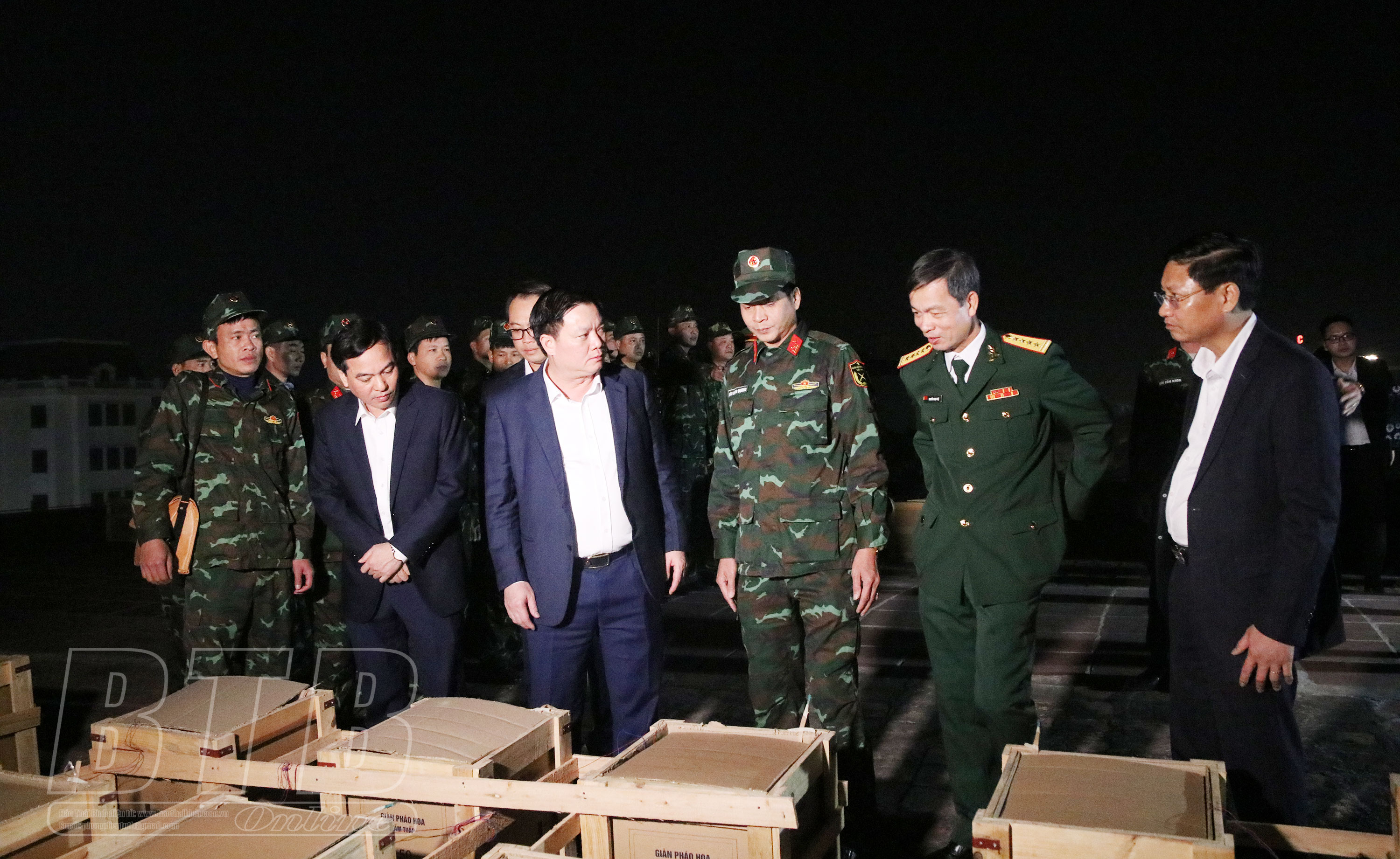 Các đồng chí lãnh đạo tỉnh kiểm tra công tác chuẩn bị bắn pháo hoa đêm giao thừa tại trận địa pháo hoa Trụ sở Tỉnh ủy cũ.