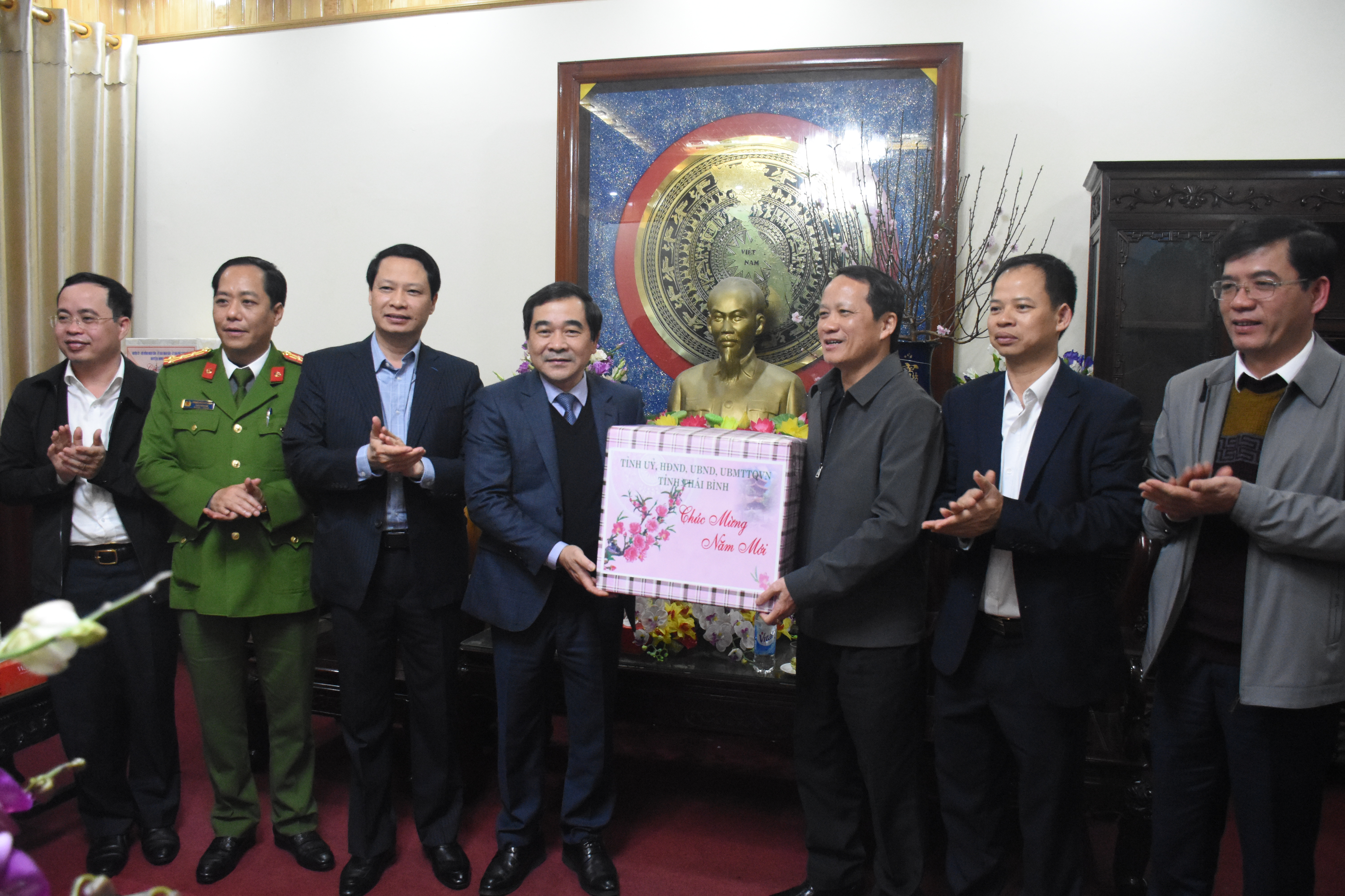 Tại thành phố Thái Bình, đồng chí Phó Bí thư thường trực Tỉnh ủy, Chủ tịch HĐND tỉnh đã tới thăm, chúc tết Ban Quản lý Đền thờ Bác Hồ (phường Hoàng Diệu, thành phố Thái Bình); Ban Quản lý Đền thờ Liệt sĩ tỉnh.