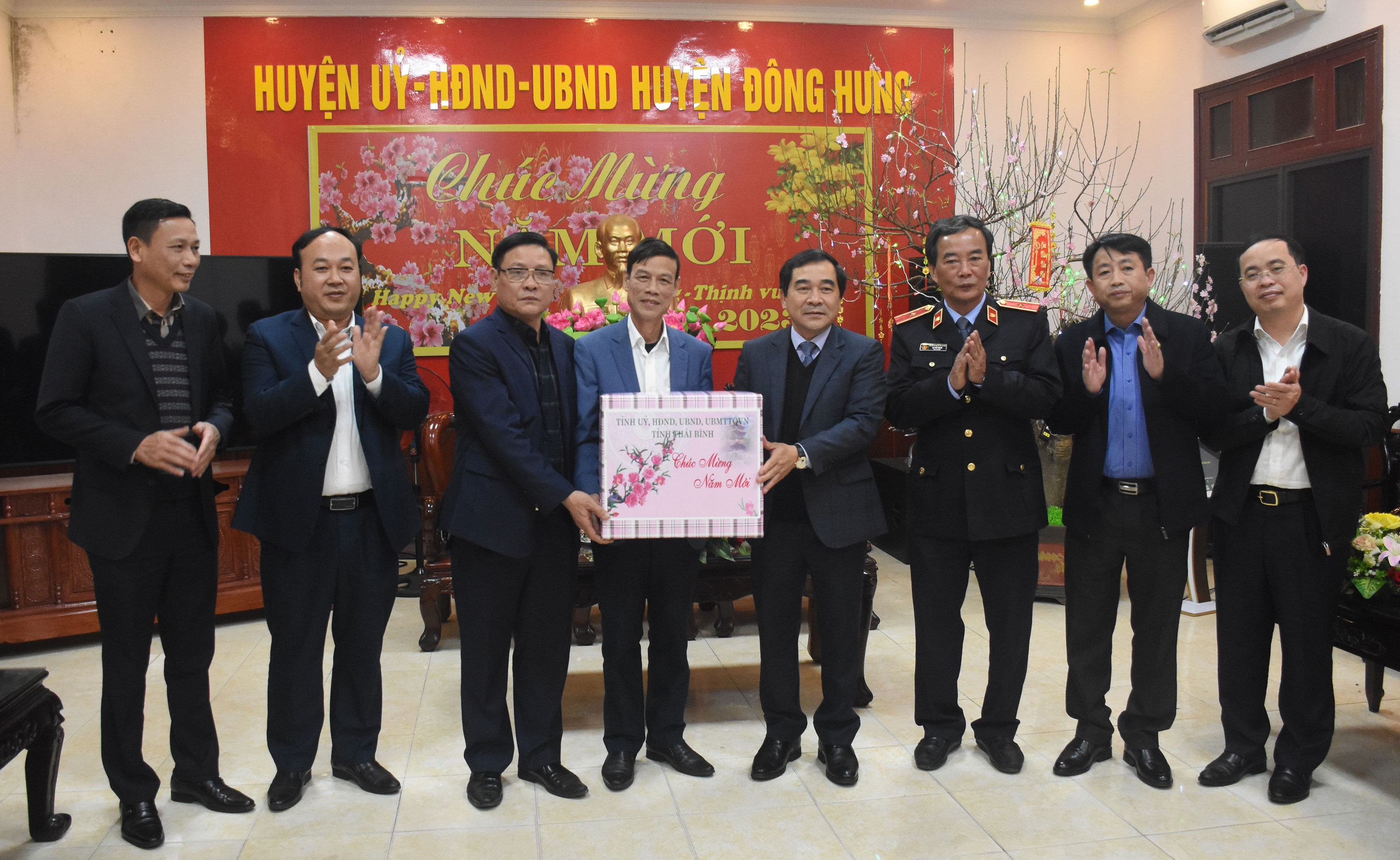 Đồng chí Nguyễn Tiến Thành, Phó Bí thư thường trực Tỉnh ủy, Chủ tịch HĐND tỉnh chúc tết huyện Đông Hưng.