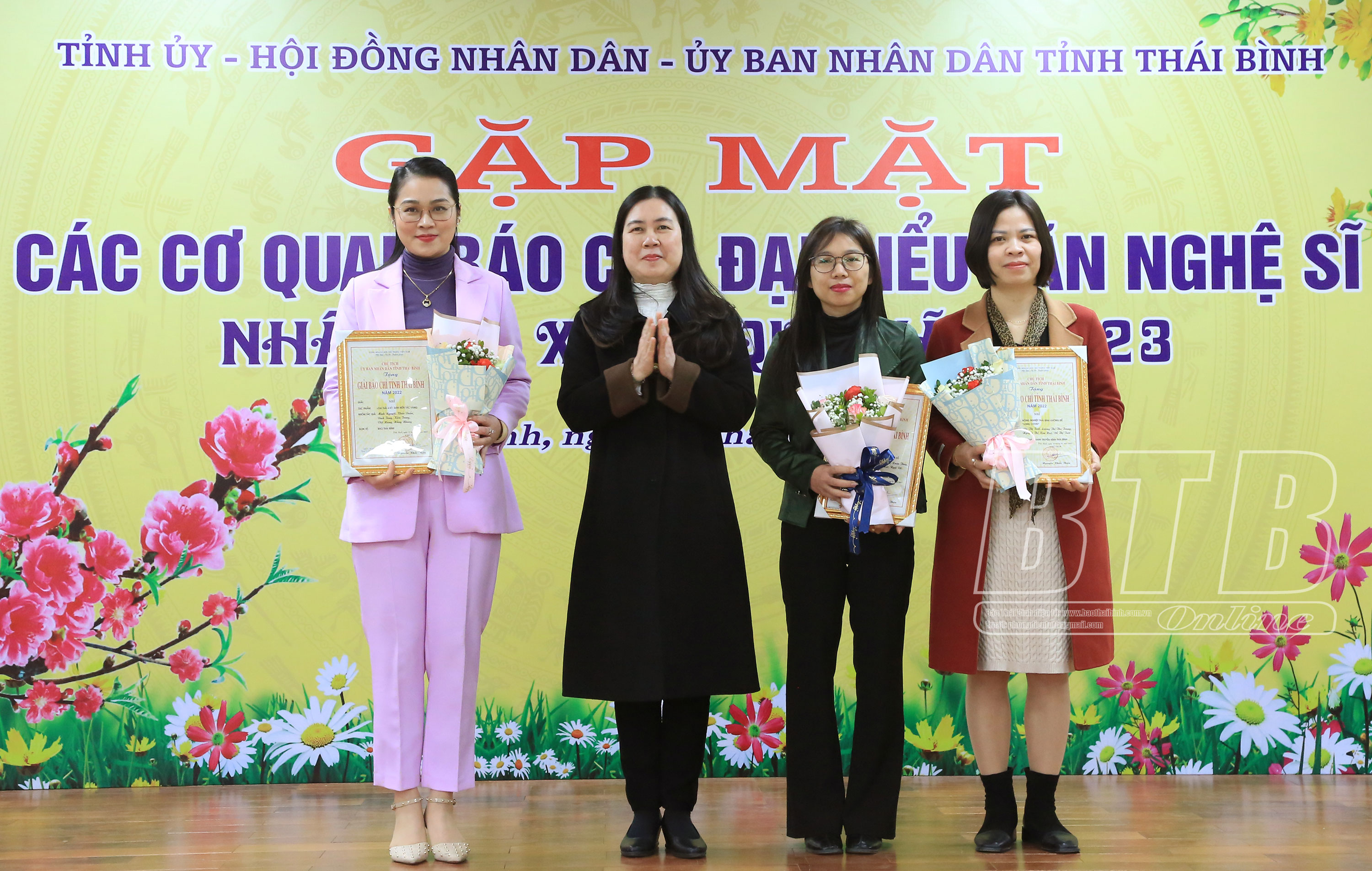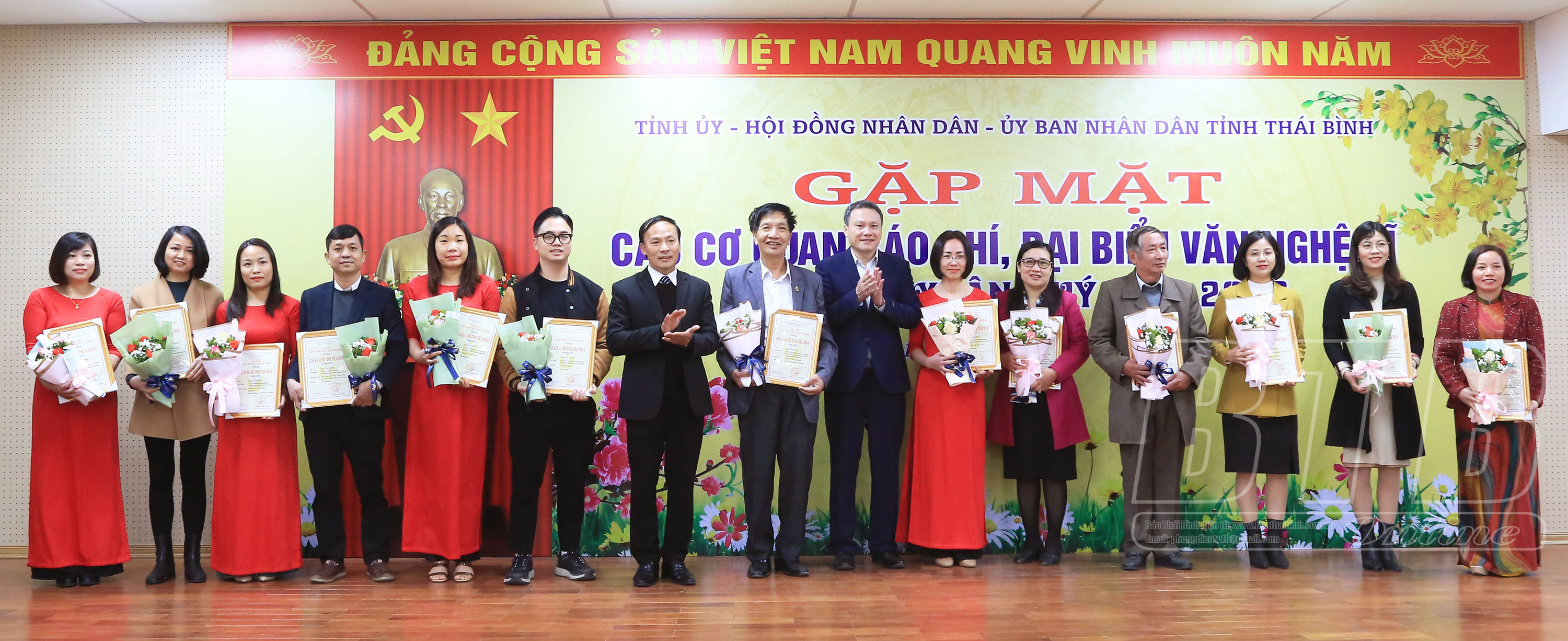 Phát biểu tại buổi gặp mặt, đồng chí Phạm Đồng Thụy, Ủy viên Ban Thường vụ, Trưởng ban Tuyên giáo Tỉnh ủy nhấn mạnh những kết quả đạt được của tỉnh trong năm 2022 có sự đóng góp quan trọng của đội ngũ cán bộ, phóng viên, biên tập viên, người lao động các cơ quan báo chí địa phương, trung ương và đội ngũ văn nghệ sĩ trên địa bàn tỉnh. Đồng chí Trưởng ban Tuyên giáo Tỉnh ủy đề nghị các cơ quan quản lý báo chí tiếp tục thực hiện tốt vai trò định hướng thông tin báo chí, nâng cao chất lượng công tác chỉ đạo, quản lý báo chí, nhất là các sự kiện chính trị quan trọng của đất nước, của tỉnh và những vấn đề phát sinh để thực hiện tốt công tác thông tin, tuyên truyền; đẩy mạnh chuyển đổi số trong quản lý báo chí; thường xuyên quan tâm tạo điều kiện thuận lợi để các cơ quan báo chí, văn nghệ sĩ thực hiện tốt nhiệm vụ chính trị. Đối với các cơ quan báo chí truyền thông, đồng chí đề nghị cần tuân thủ, thực hiện nghiêm quy định của Đảng, pháp luật của Nhà nước, ứng dụng công nghệ thông tin, công nghệ hiện đại để thường xuyên đổi mới, sáng tạo trong sản xuất các chương trình có nội dung sinh động, chất lượng, có chiều sâu, mang hơi thở của cuộc sống thực tiễn, khát vọng phát triển tỉnh Thái Bình; phát huy vai trò đi đầu của báo chí, văn học nghệ thuật trong đấu tranh phòng chống suy thoái tư tưởng chính trị, đạo đức, lối sống, chống các xu hướng tự diễn biến, tự chuyển hóa trong nội bộ, phòng chống tham nhũng, tiêu cực; tích cực lan tỏa những giá trị tốt đẹp, kết quả đạt được của tỉnh ở mọi lĩnh vực.