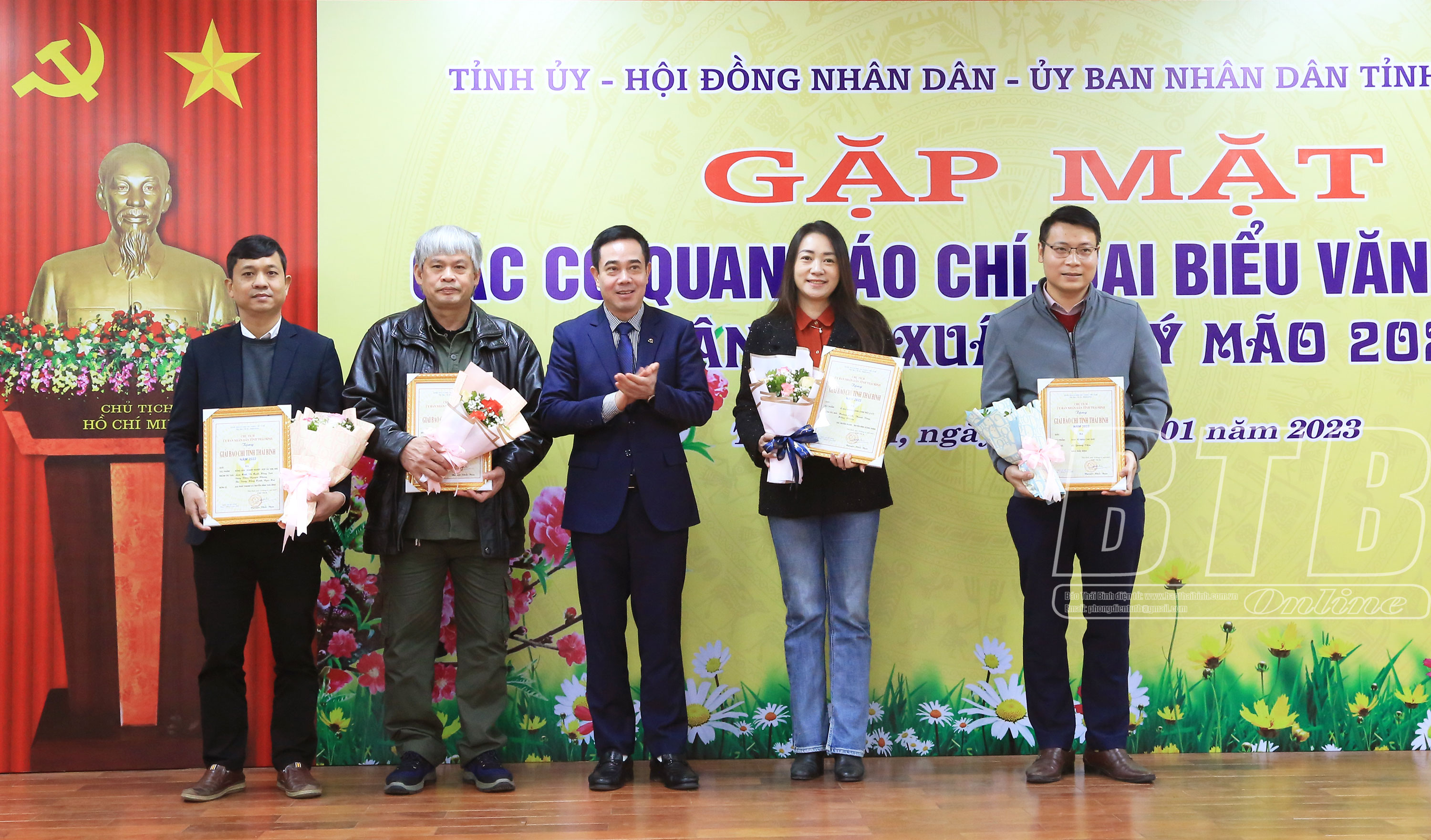 Tại buổi gặp mặt, các đồng chí lãnh đạo tỉnh, lãnh đạo Hội Nhà báo tỉnh đã trao giải cho 23 tác giả, nhóm tác giả đạt giải báo chí tỉnh năm 2022, trong đó có 1 giải nhất, 3 giải nhì, 4 giải ba và 15 giải khuyến khích. Loạt bài 5 kỳ "Trăn trở sức già lo việc nước" của nhóm tác giả thuộc đơn vị Báo Thái Bình vinh dự đạt giải nhất.