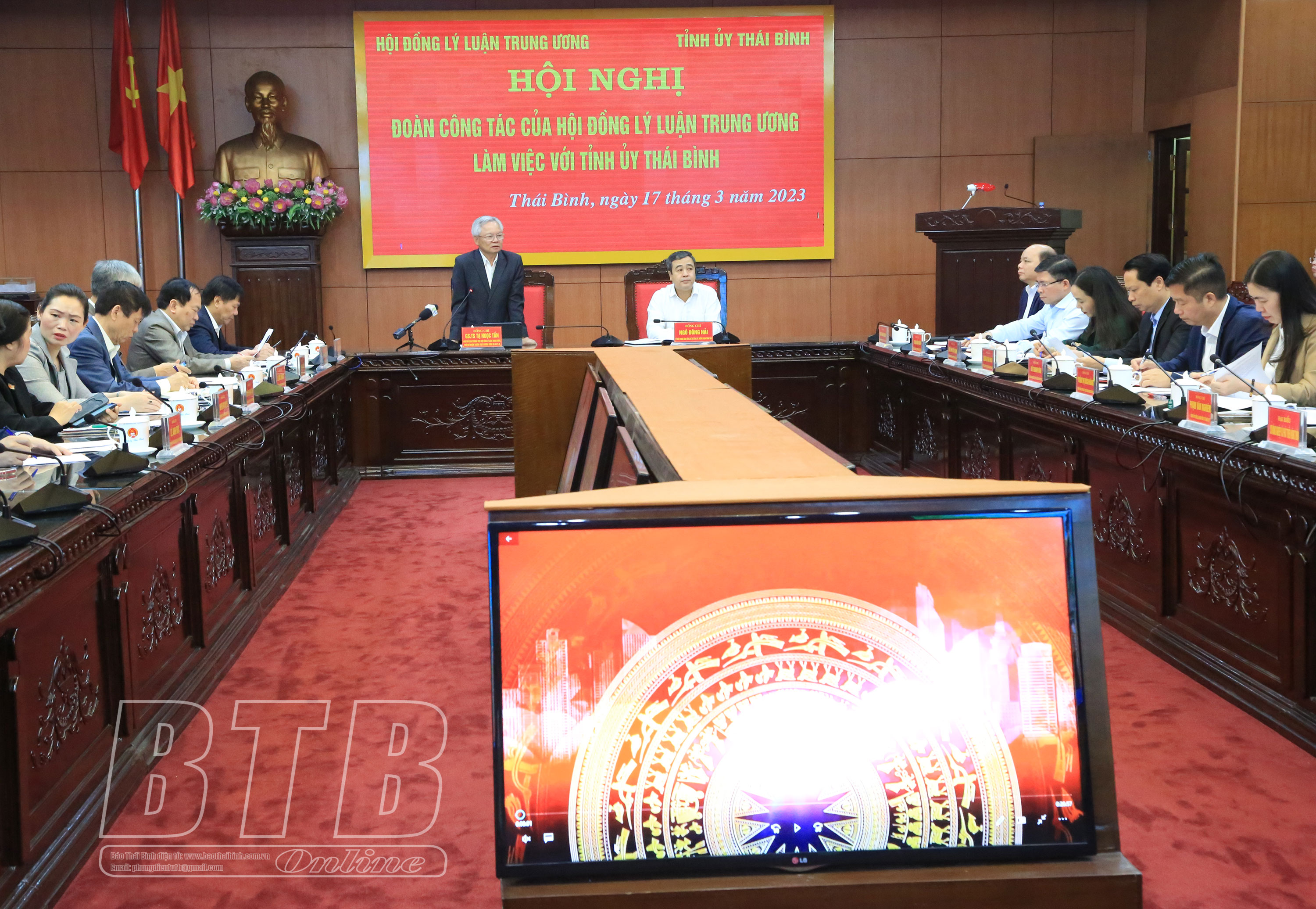 Đoàn công tác của Hội đồng Lý luận Trung ương làm việc với Tỉnh ủy Thái Bình
