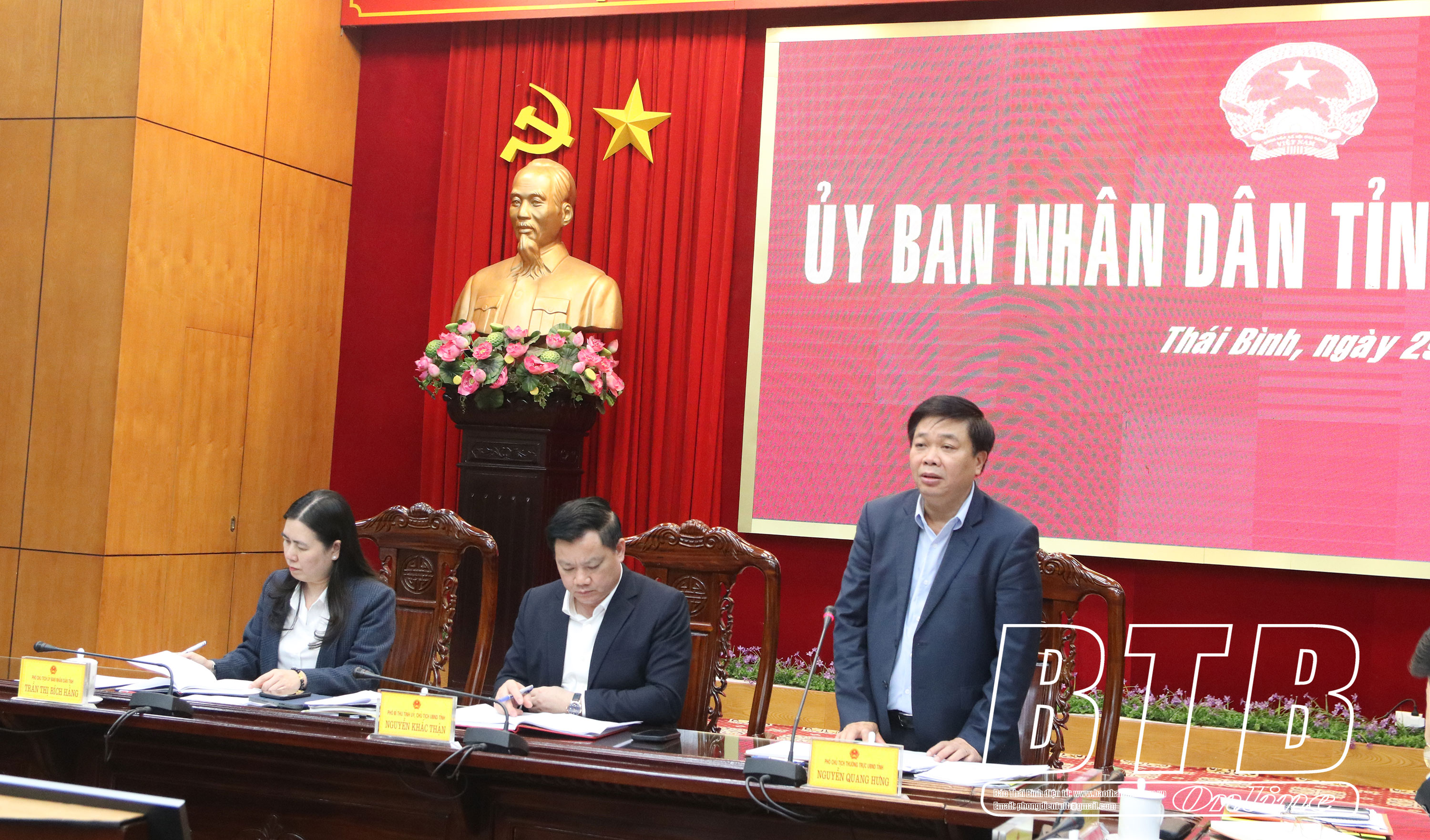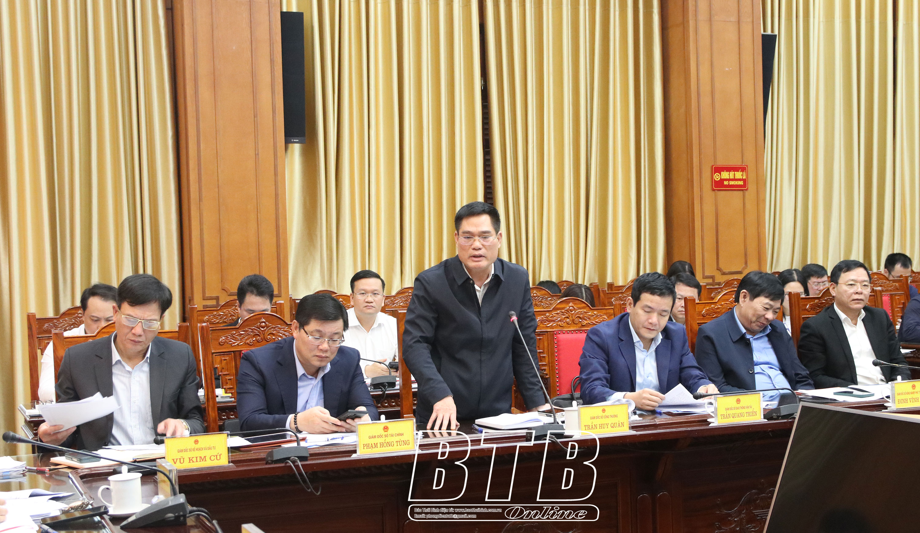 Lãnh đạo thành phố Thái Bình phát biểu tại cuộc họp.