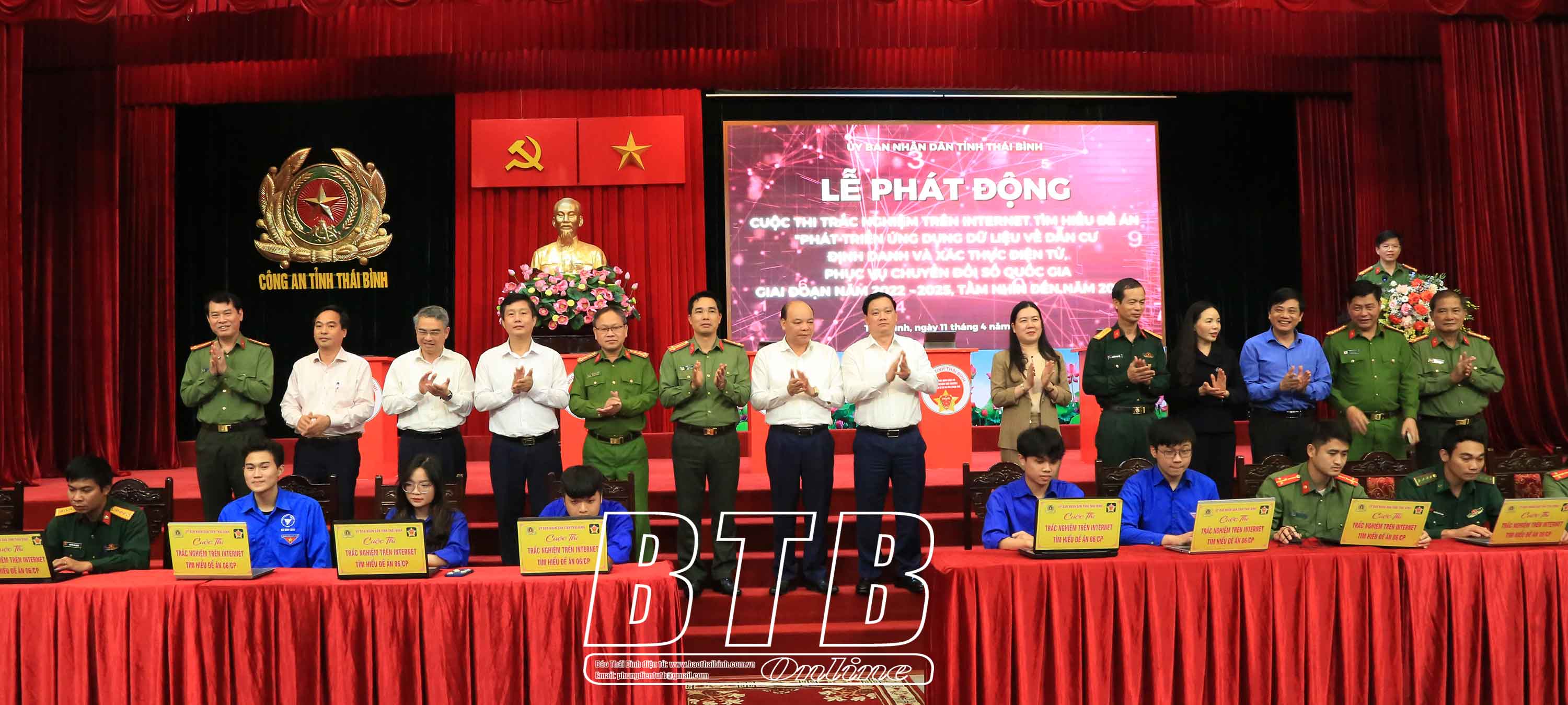 Các đồng chí lãnh đạo tỉnh và Bộ Công an đã thực hiện nghi thức bấm nút phát động và chứng kiến đại diện các cơ quan, đơn vị tham gia thi trực tiếp.