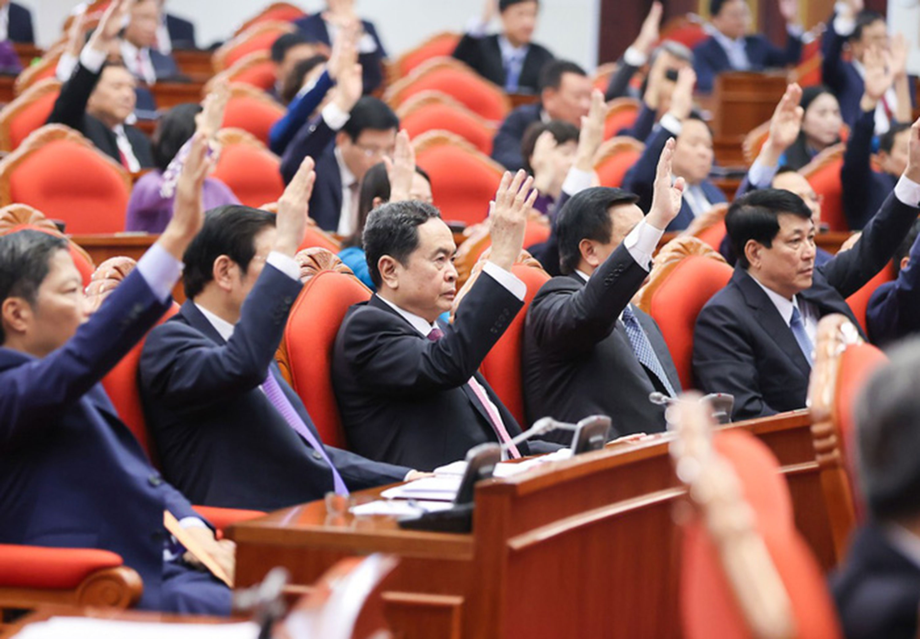 Các đai biểu biểu quyết thông qua các văn kiện tại phiên bế mạc. Ảnh: chinhphu.vn