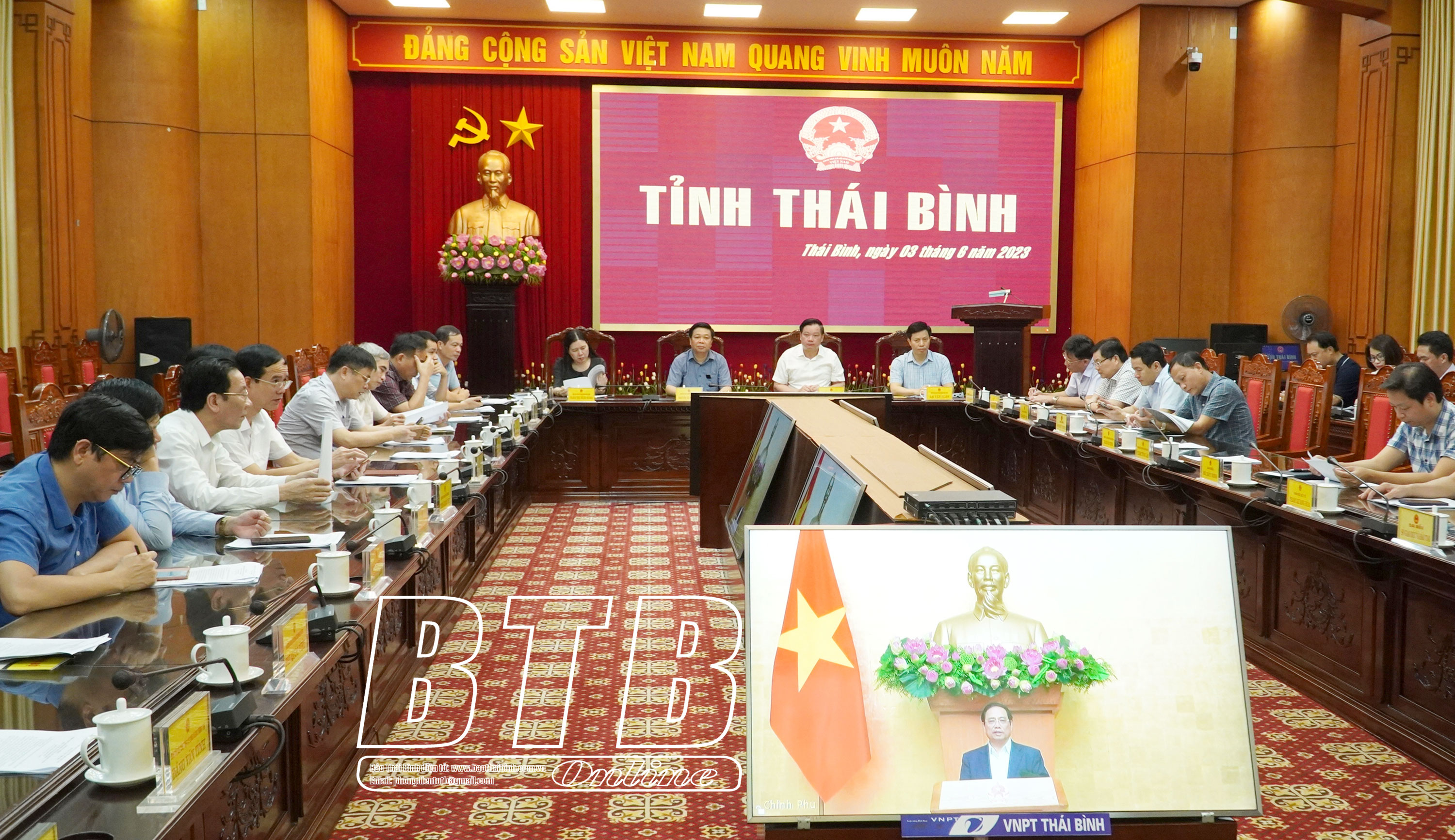 Lãnh đạo UBND tỉnh và các sở, ngành liên quan dự phiên họp tại điểm cầu Thái Bình.