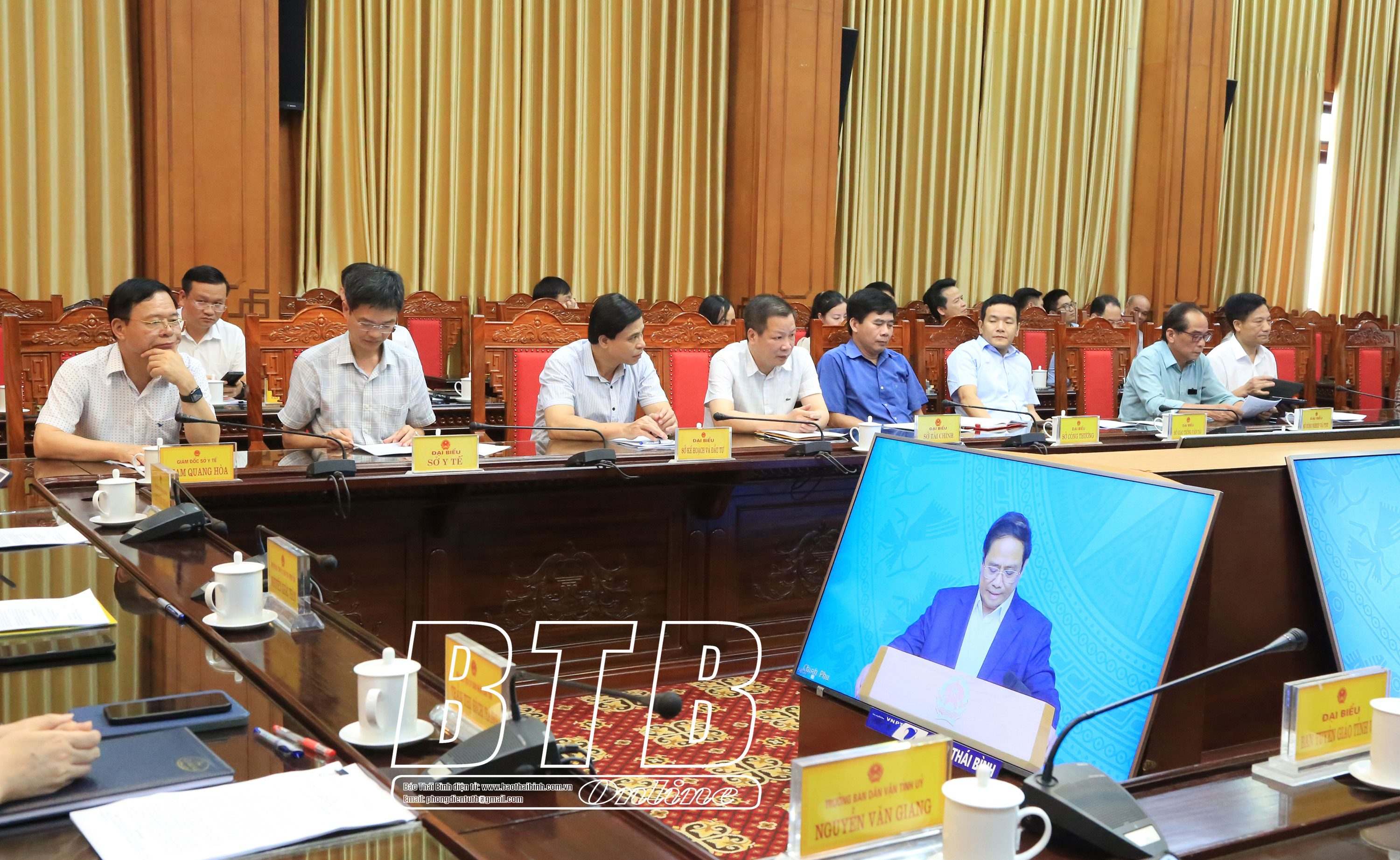 Các đồng chí lãnh đạo tỉnh và đại biểu dự họp tại điểm cầu tỉnh Thái Bình.