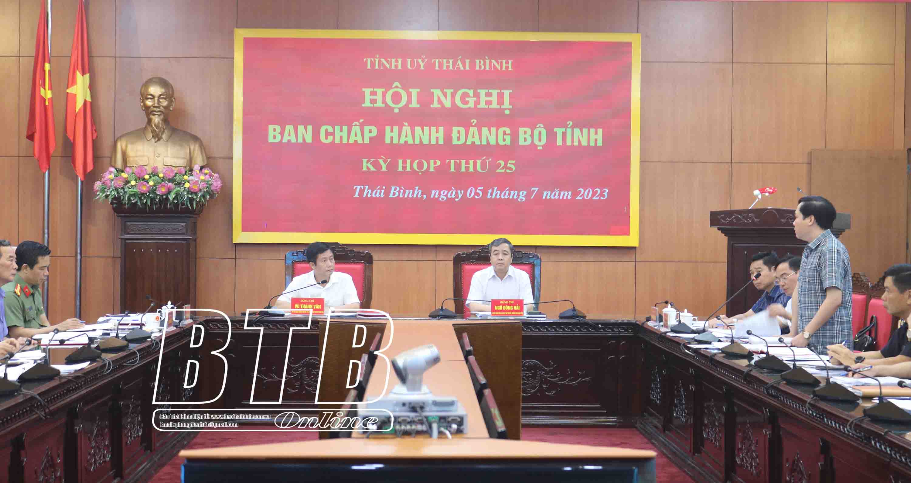Về nhiệm vụ trọng tâm 6 tháng cuối năm 2023, đồng chí đề nghị tiếp tục tập trung tháo gỡ khó khăn, đẩy mạnh phát triển kinh tế - xã hội theo hướng thực chất, bền vững hơn. Tăng cường thu hút đầu tư, tạo điều kiện thuận lợi cho các doanh nghiệp đầu tư vào tỉnh tạo ra giá trị mới, giải quyết việc làm cho người dân. Đặc biệt chú trọng thu hút nguồn lực xã hội vào đầu tư, trong đó khâu giải quyết các quy trình, thủ tục đầu tư phải theo đúng quy định của pháp luật và có hiệu quả. Quan tâm thực hiện tốt công tác giải phóng mặt bằng, giải quyết thủ tục hành chính cho các dự án, nhất là các dự án công trình trọng điểm như phát triển đô thị, phát triển khu kinh tế, khu công nghiệp. Tập trung quyết liệt cho công tác thu ngân sách, chú trọng nuôi dưỡng nguồn thu, xử lý kiên quyết các trường hợp trốn tránh nghĩa vụ nộp thuế. Giải quyết ngay các điểm nghẽn và vấn đề bất cập được chỉ ra thời gian qua như lĩnh vực quản lý đất đai, xây dựng, an toàn giao thông, môi trường, nước sạch. Tiếp tục tập trung giải quyết có hiệu quả, có kết quả các nhiệm vụ trọng tâm, trọng điểm tỉnh đã đề ra như: quy hoạch điều chỉnh cục bộ quy hoạch Khu kinh tế Thái Bình; tuyến đường bộ cao tốc Ninh Bình - Nam Định - Thái Bình (CT.08); nhà máy điện khí LNG… Đối với các vấn đề phức tạp, người đứng đầu phải trực tiếp vào cuộc, chỉ đạo giải quyết, đôn đốc, giám sát thì mới có kết quả tốt. Tiếp tục thực hiện tốt công tác xây dựng Đảng, củng cố hệ thống chính trị, hướng mạnh về cơ sở. Đẩy mạnh việc luân chuyển, điều động, bổ nhiệm cán bộ trên tinh thần đúng người, đúng việc, luân chuyển cán bộ yếu kém gây đình trệ công việc thay thế bằng cán bộ tốt hơn, trách nhiệm hơn trong thực thi công vụ. Giao Ban Tổ chức Tỉnh ủy tham mưu Ban Thường vụ Tỉnh ủy xem xét, sửa đổi quy chế, quy định về phân cấp quản lý cán bộ, trong đó cán bộ thuộc quản lý cấp phòng trong những trường hợp cần thiết thì Ban Thường vụ Tỉnh ủy cho chủ trương yêu cầu các cấp có thẩm quyền thay đổi, điều chuyển. Đề cao kỷ cương, kỷ luật hành chính.