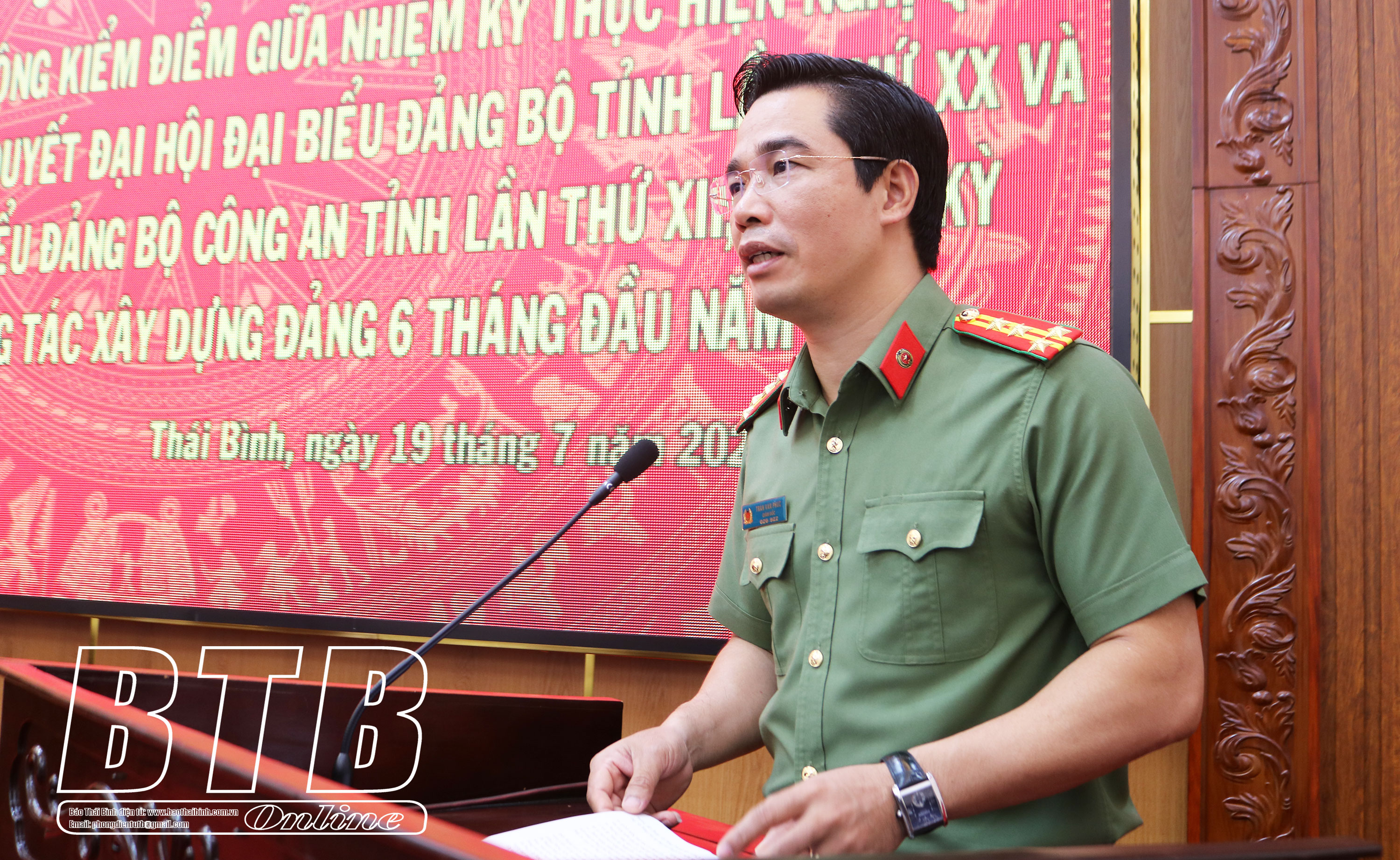 Sau nửa nhiệm kỳ thực hiện nghị quyết đại hội đảng bộ các cấp, Ban Thường vụ Đảng ủy Công an tỉnh với tinh thần chủ động quyết tâm cao, nỗ lực lớn đã bám sát thực tiễn công tác, chiến đấu, triển khai quán triệt, tổ chức thực hiện nghiêm túc mục tiêu, kế hoạch đề ra, bảo đảm hoàn thành xuất sắc nhiệm vụ trên từng mặt công tác. Toàn lực lượng đã tập trung đấu tranh trấn áp hiệu quả các loại tội phạm, kéo giảm tội phạm về trật tự xã hội: năm 2022 giảm 8,56%, 6 tháng đầu năm 2023 giảm 15,95%, tỷ lệ điều tra khám phá án đạt 94,3%, trọng án đạt 100% . Số vụ vi phạm về kinh tế, tham nhũng, buôn lậu, môi trường bị điều tra, khám phá năm sau cao hơn năm trước, kiềm chế hiệu quả tai nạn giao thông và số vụ cháy nổ. Thái Bình đã vượt chỉ tiêu trước thời hạn hoàn thành cấp căn cước công dân gắn chíp điện tử, cài đặt định danh điện tử, xây dựng mô hình tổ liên gia, điểm chữa cháy công cộng của Bộ Công an giao. Tỷ lệ cán bộ vi phạm kỷ luật dưới 0,5%. Phân loại thi đua, xếp loại chất lượng tổ chức đảng, đảng viên hàng năm 100% đơn vị hoàn thành nhiệm vụ...