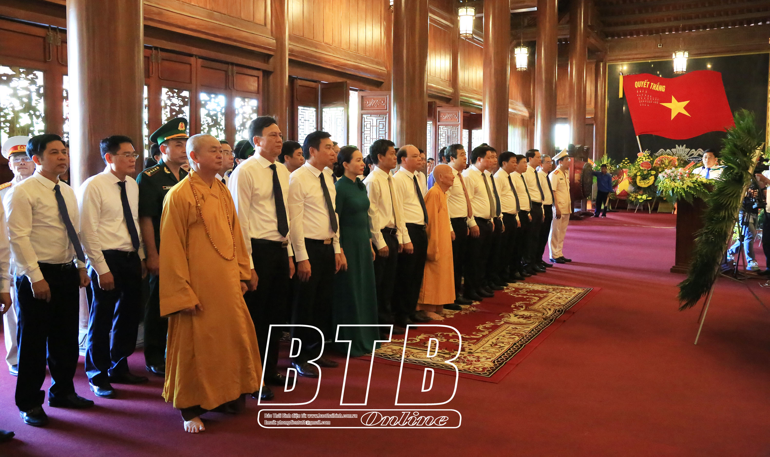 Tại Đền thờ Liệt sĩ tỉnh, các đại biểu đã đặt vòng hoa của Tỉnh ủy, HĐND, UBND tỉnh, Ủy ban MTTQ tỉnh mang dòng chữ “Đời đời nhớ ơn các anh hùng liệt sĩ”, dành phút mặc niệm, tưởng nhớ những người con ưu tú của quê hương đã anh dũng chiến đấu và hy sinh vì sự nghiệp đấu tranh giải phóng dân tộc, thống nhất đất nước, vì nền độc lập, tự do của Tổ quốc, vì hạnh phúc của nhân dân.
