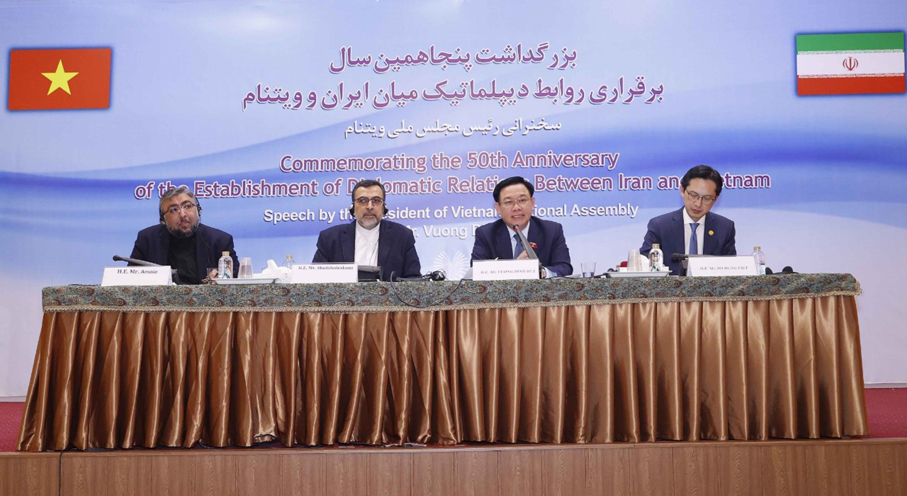 Chiều 9/8/2023 (theo giờ địa phương) Chủ tịch Quốc hội Vương Đình Huệ đến thăm và có bài phát biểu quan trọng về quan hệ “Việt Nam – Iran hợp tác vì hoà bình và phát triển” tại Viện Nghiên cứu chính trị và Quan hệ quốc tế Iran ở thủ đô Tehran.