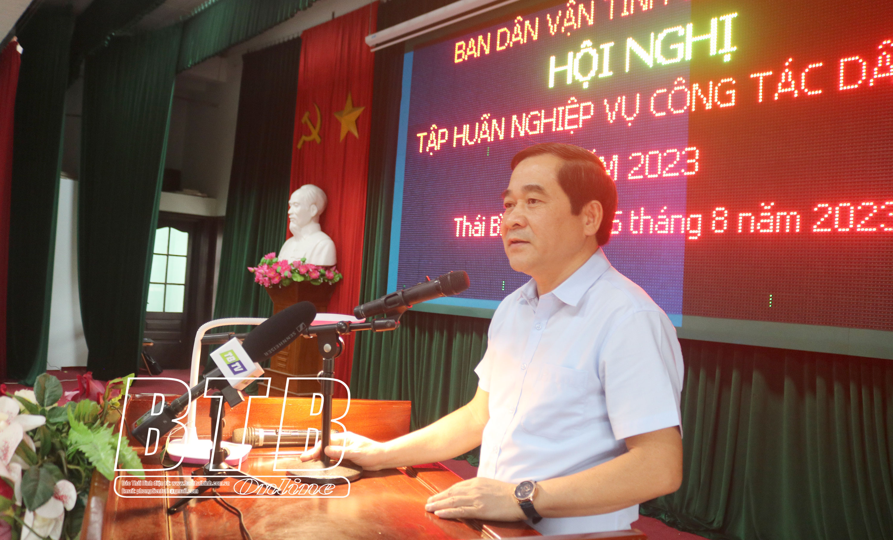 Trên 350 đại biểu là lãnh đạo, chuyên viên ban dân vận các huyện ủy, thành ủy; cán bộ phụ trách công tác dân vận của các đảng ủy trực thuộc Tỉnh ủy; đại diện lãnh đạo phòng nội vụ các huyện, thành phố; phó bí thư đảng ủy kiêm trưởng khối dân vận các xã, phường, thị trấn trong tỉnh; chủ tịch UBND các xã, phường, thị trấn được lựa chọn thực hiện thí điểm mô hình “Chính quyền thân thiện vì nhân dân phục vụ” được nghe truyền đạt 4 chuyên đề: một số vấn đề công tác tín ngưỡng, tôn giáo hiện nay; một số nội dung về thực hiện phong trào thi đua “Dân vận khéo”; Luật số 10/2022/QH15 ngày 10/11/2022 của Quốc hội khóa XV về thực hiện dân chủ ở cơ sở và một số vấn đề về thực hiện dân chủ hiện nay; triển khai Đề án số 08-ĐA/TU ngày 5/7/2023 của Ban Thường vụ Tỉnh ủy về xây dựng thí điểm mô hình “Chính quyền thân thiện vì nhân dân phục vụ” ở xã, phường, thị trấn trên địa bàn tỉnh Thái Bình giai đoạn 2023 - 2025 và hướng dẫn thực hiện Đề án.