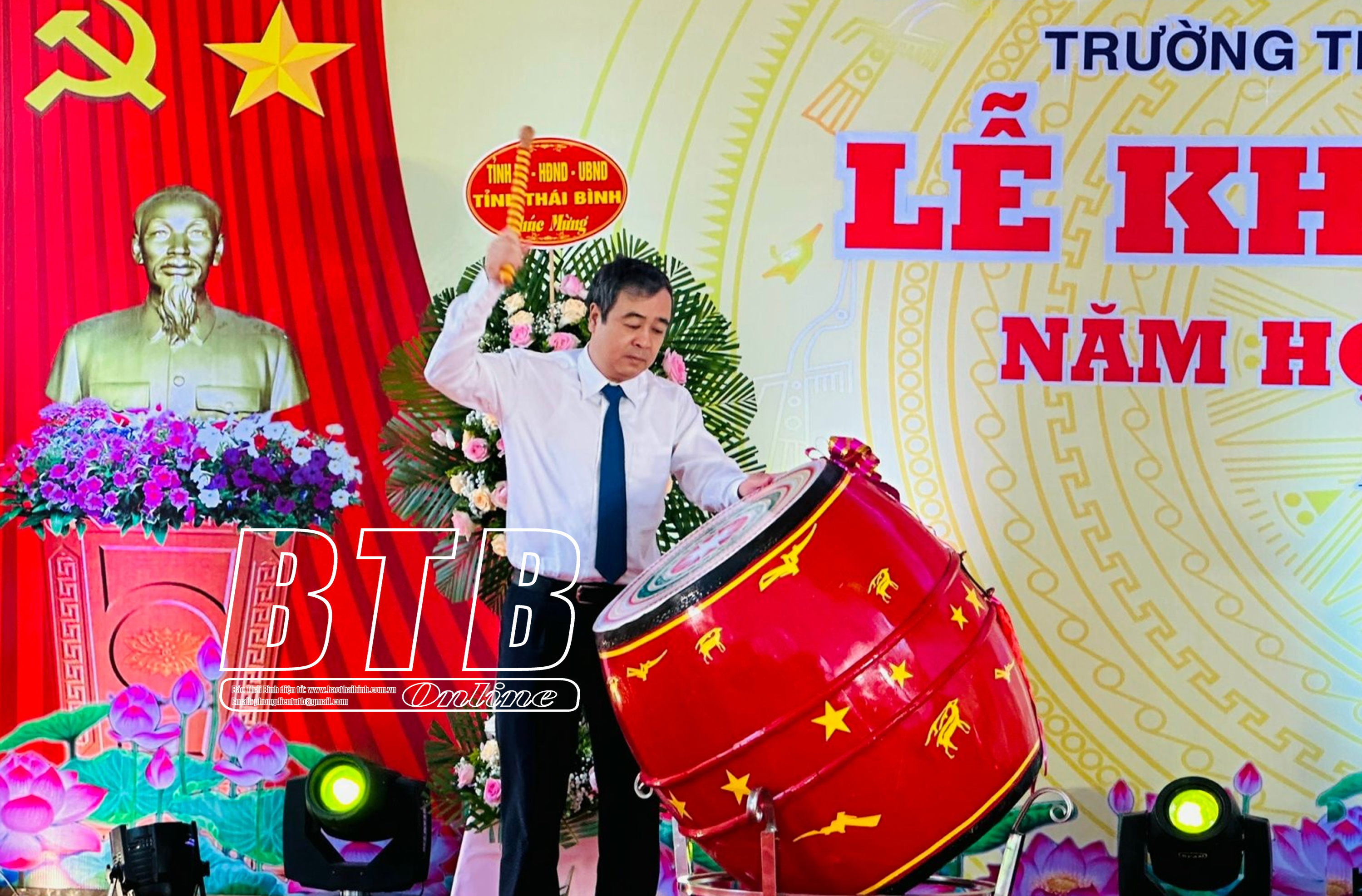Đồng chí Ngô Đông Hải, Ủy viên Ban Chấp hành Trung ương Đảng, Bí thư Tỉnh ủy dự lễ khai giảng năm học mới tại Trường THCS Lương Thế Vinh