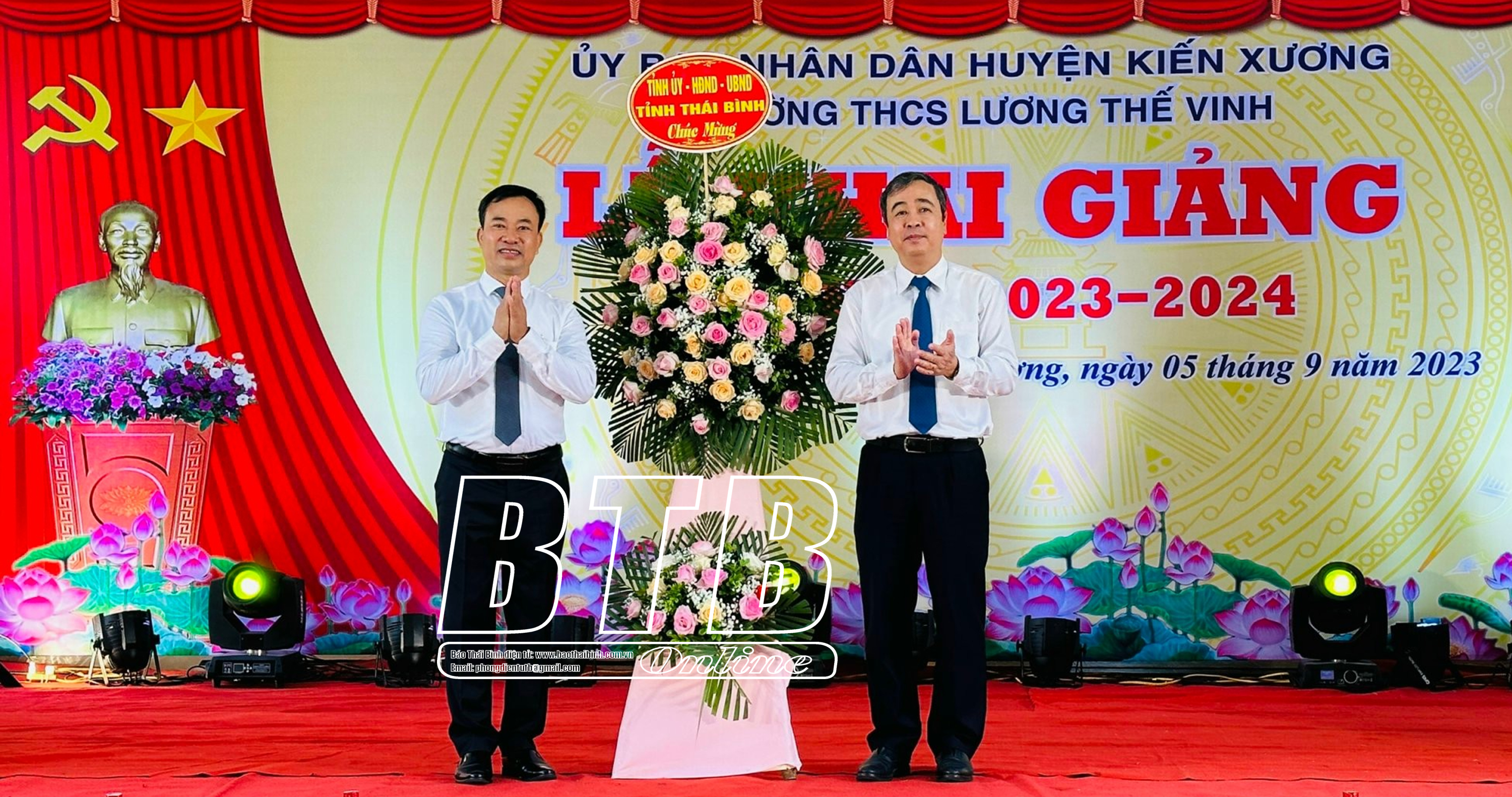 Trong không khí vui mừng, phấn khởi của ngày khai trường, đồng chí Bí thư Tỉnh ủy chúc mừng những kết quả thầy và trò Trường THCS Lương Thế Vinh đạt được trong năm học 2022 – 2023. Đồng chí mong muốn trong năm học mới, Trường THCS Lương Thế Vinh tiếp tục thực hiện đồng bộ các giải pháp thực hiện thắng lợi nhiệm vụ năm học. Đẩy mạnh thực hiện Nghị quyết số 29-NQ/TW ngày 4/11/2013 Hội nghị Trung ương 8 khóa XI về “Đổi mới căn bản, toàn diện giáo dục và đào tạo, đáp ứng yêu cầu công nghiệp hóa, hiện đại hóa trong điều kiện kinh tế thị trường định hướng xã hội chủ nghĩa và hội nhập quốc tế”. Tập trung đổi mới công tác quản lý giáo dục; nâng cao chất lượng dạy và học; chăm lo, đầu tư, phát triển nâng cao trình độ chuyên môn cho cán bộ, giáo viên; quan tâm xây dựng mạng lưới quy mô trường lớp đáp ứng nhu cầu ngày càng cao của sự nghiệp giáo dục.