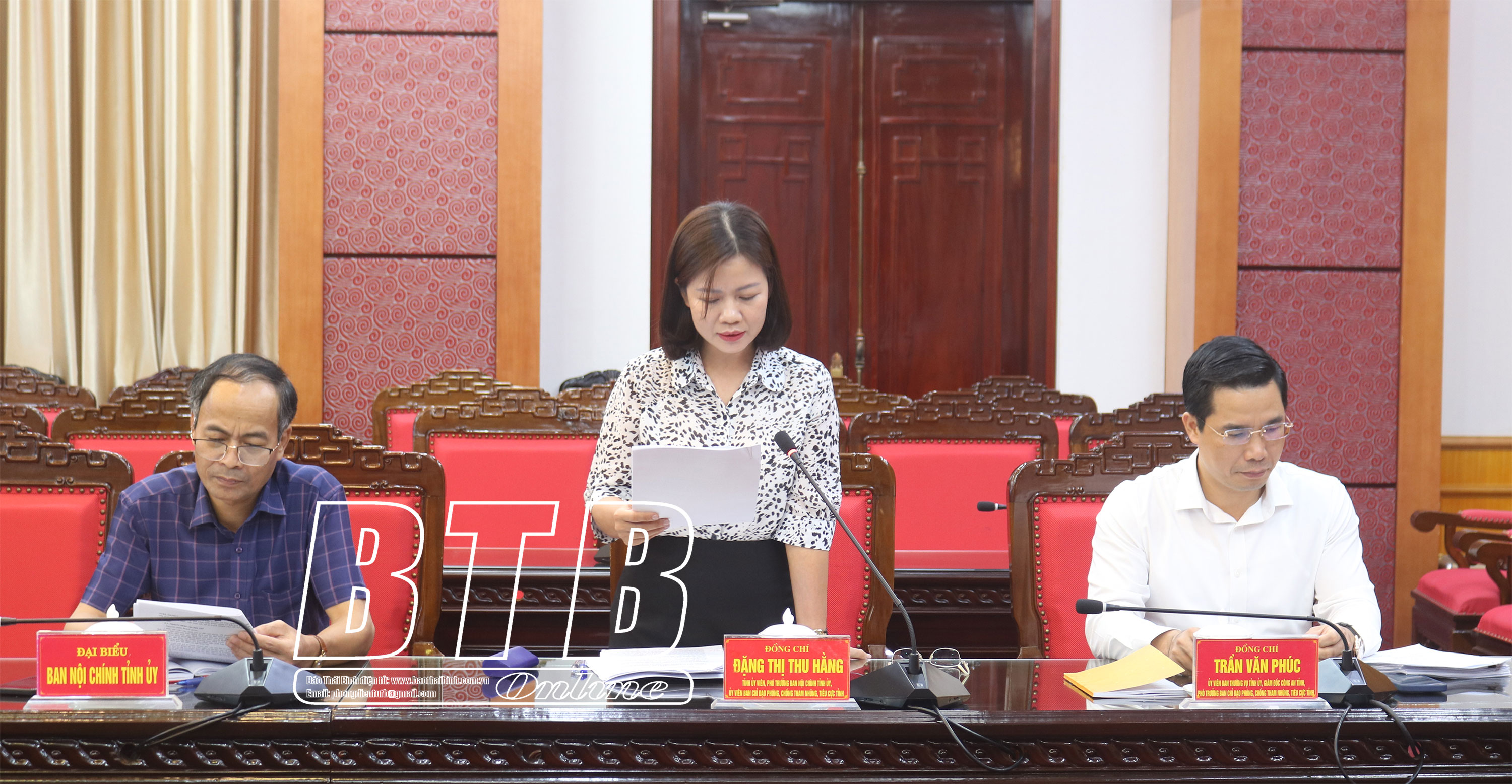 Đồng chí Ngô Thị Kim Hoàn, Ủy viên Ban Thường vụ, Chủ nhiệm Ủy ban Kiểm tra Tỉnh ủy phát biểu tại cuộc họp.