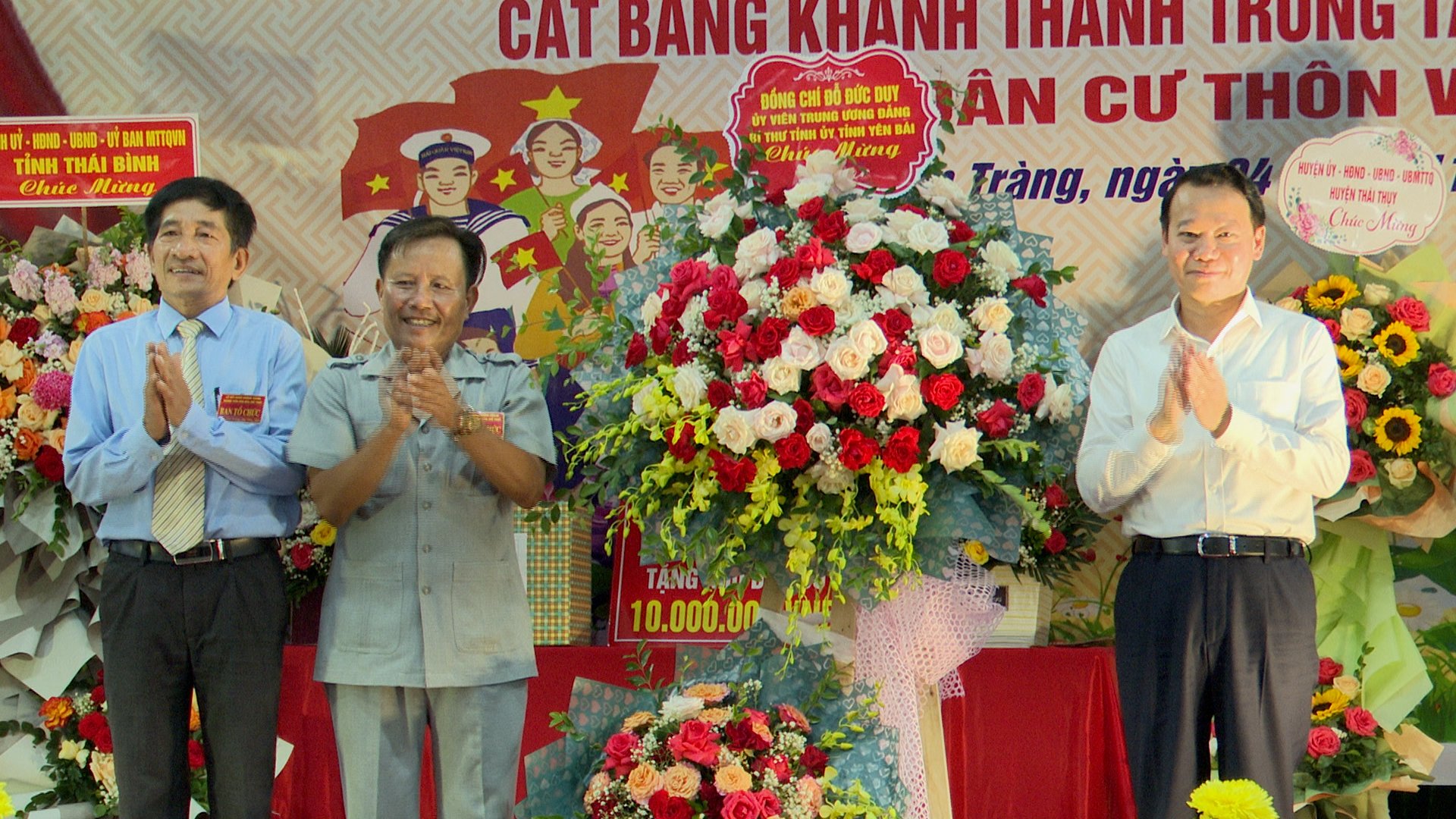 Các đồng chí: Đỗ Đức Duy, Ủy viên Ban Chấp hành Trung ương Đảng, Bí thư Tỉnh ủy Yên Bái; Nguyễn Tiến Thành, Phó Bí thư thường trực Tỉnh ủy, Chủ tịch HĐND tỉnh; Trần Văn Phúc, Ủy viên Ban Thường vụ Tỉnh ủy, Giám đốc Công an tỉnh; Ngô Minh Thuấn, Tổng giám đốc Tổng công ty Tân Cảng Sài Gòn cùng lãnh đạo một số sở, ngành của tỉnh, huyện Thái Thụy, xã Thụy Văn cùng đông đảo nhân dân trong khu dân cư dự ngày hội.