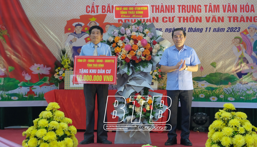Nhân dịp này, các đồng chí lãnh đạo tỉnh đã trao quà cho các hộ nghèo trên địa bàn thôn và cắt băng khánh thành Trung tâm Văn hóa thể thao khu dân cư thôn Văn Tràng.