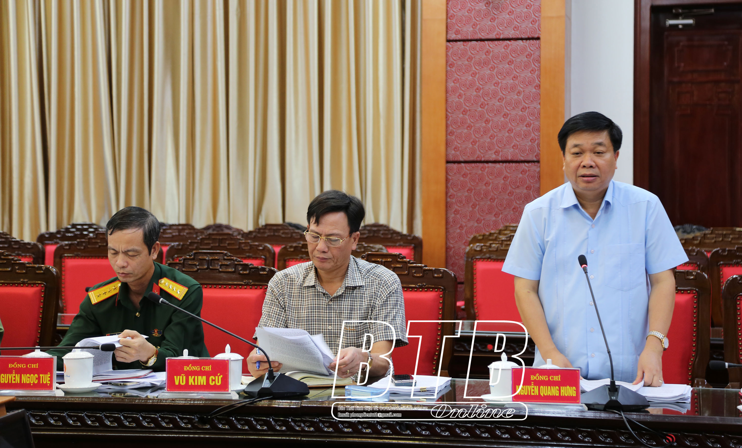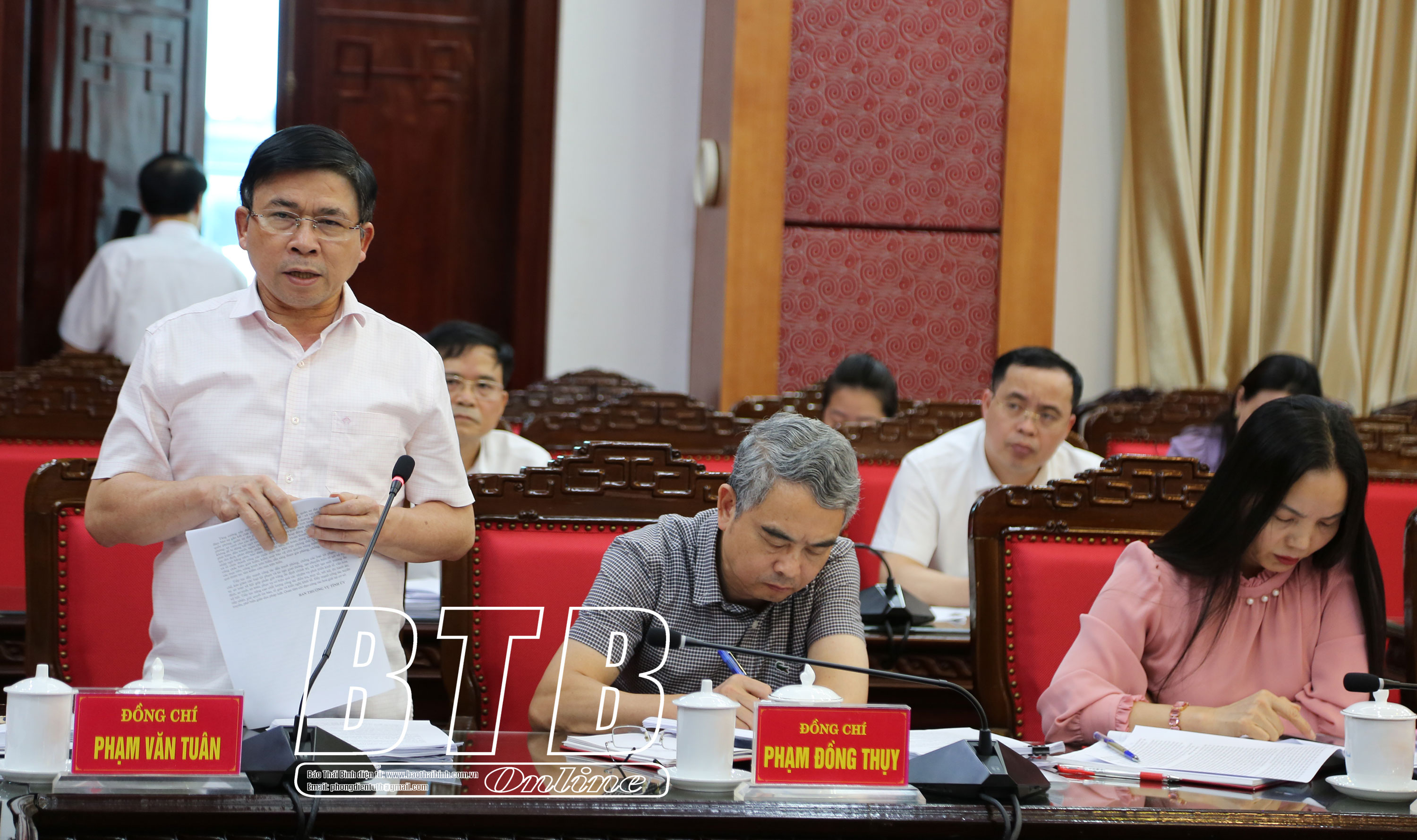 Phát biểu kết luận, đồng chí Ngô Đông Hải, Ủy viên Ban Chấp hành Trung ương Đảng, Bí thư Tỉnh ủy ghi nhận và đánh giá cao sự nỗ lực của đơn vị chủ trì soạn thảo đã xây dựng, hoàn thiện dự thảo báo cáo đầy đủ theo bố cục, bảo đảm yêu cầu đề ra, nêu bật kết quả đạt được sau nửa nhiệm kỳ Thái Bình thực hiện Nghị quyết Đại hội XIII của Đảng, Nghị quyết Đại hội Đảng bộ tỉnh lần thứ XX.