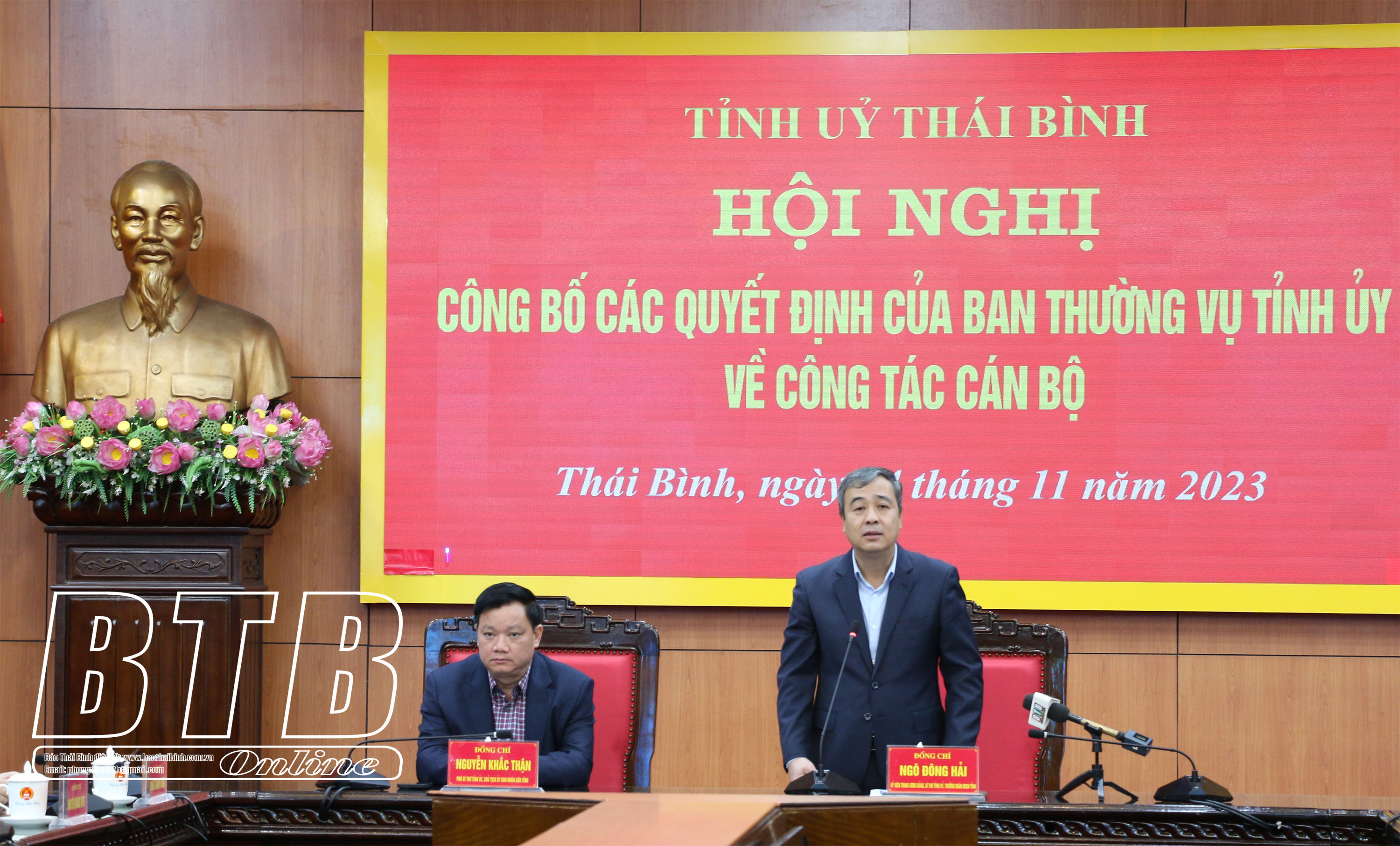 Phát biểu tại hội nghị, đồng chí Ngô Đông Hải, Ủy viên Ban Chấp hành Trung ương Đảng, Bí thư Tỉnh ủy chúc mừng 2 đồng chí được điều động, bổ nhiệm đợt này; đồng thời nhấn mạnh Ban Thường vụ Tỉnh ủy đã cân nhắc rất kỹ lưỡng trước khi tiến hành kiện toàn lãnh đạo Văn phòng Tỉnh ủy. Đồng chí đánh giá cao trình độ, năng lực, kinh nghiệm công tác của các đồng chí được điều động, bổ nhiệm đợt này và đề nghị các đồng chí trên cương vị công tác mới sẽ tiếp tục phát huy năng lực, sở trường, kinh nghiệm trong quá trình công tác trước đây, nhanh chóng tiếp cận công việc, không ngừng học hỏi, trau dồi thêm kinh nghiệm để hoàn thành tốt chức trách, nhiệm vụ được giao.