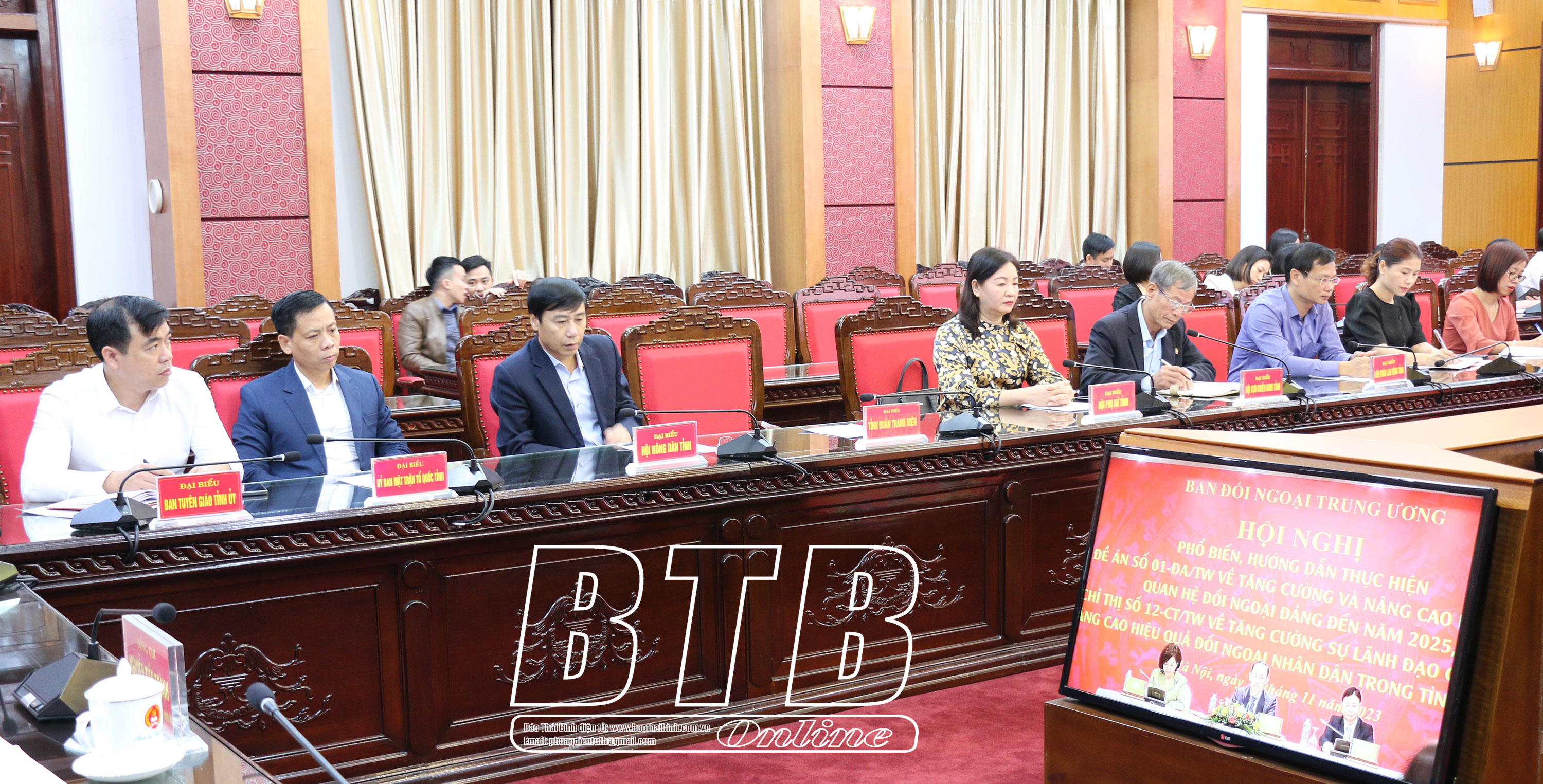 Ngoài ra, hội nghị dành phần lớn thời gian để đại biểu các điểm cầu chia sẻ về kết quả thực hiện công tác đối ngoại trên từng địa bàn, lĩnh vực thời gian qua; đồng thời phân tích làm rõ thêm các nội dung nhằm triển khai thực hiện hiệu quả đề án, chỉ thị của Trung ương trên lĩnh vực đối ngoại.