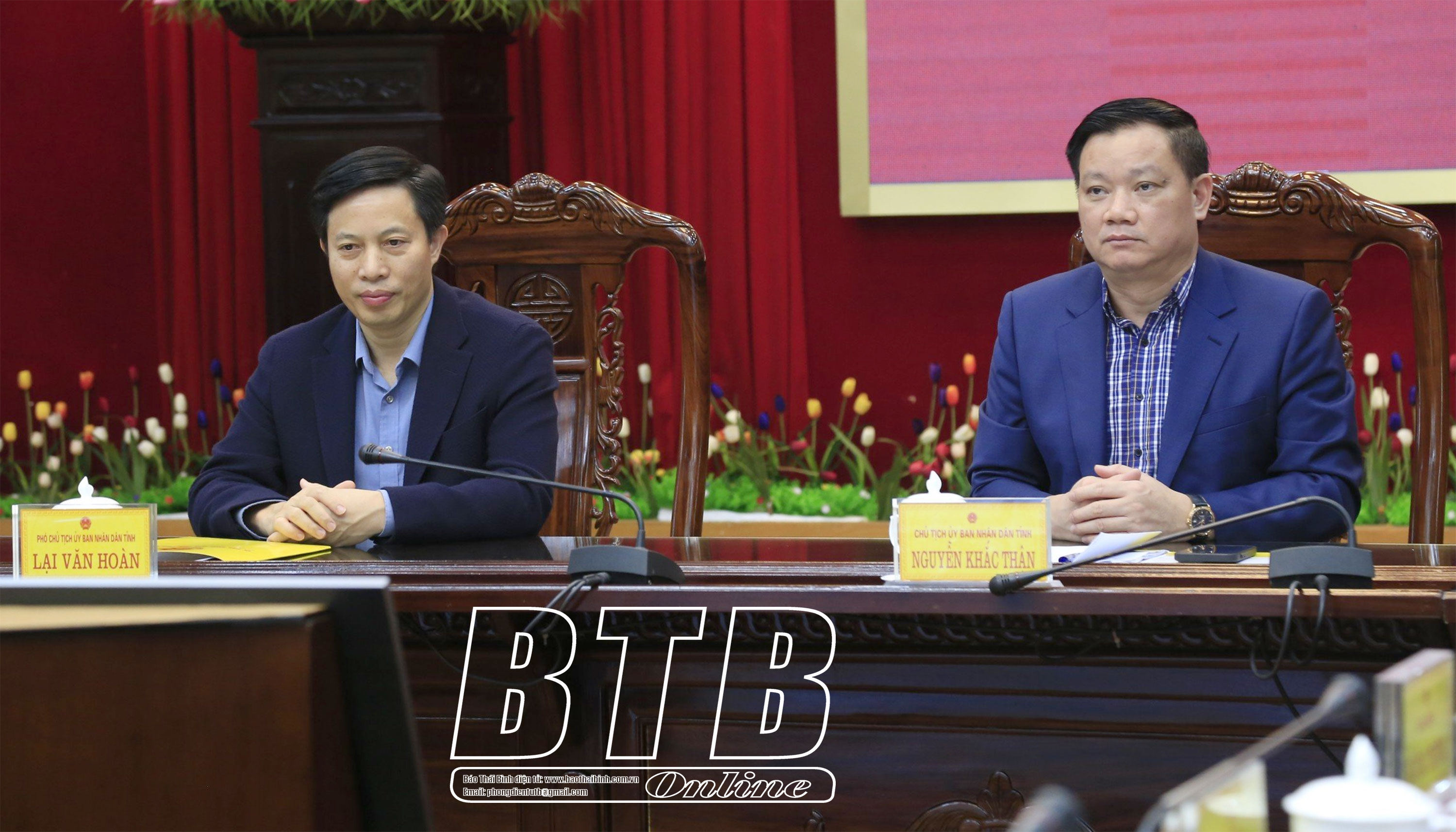 Các đồng chí: Nguyễn Khắc Thận, Phó Bí thư Tỉnh ủy, Chủ tịch UBND tỉnh; Lại Văn Hoàn, Tỉnh ủy viên, Phó Chủ tịch UBND tỉnh dự hội nghị tại điểm cầu Thái Bình.