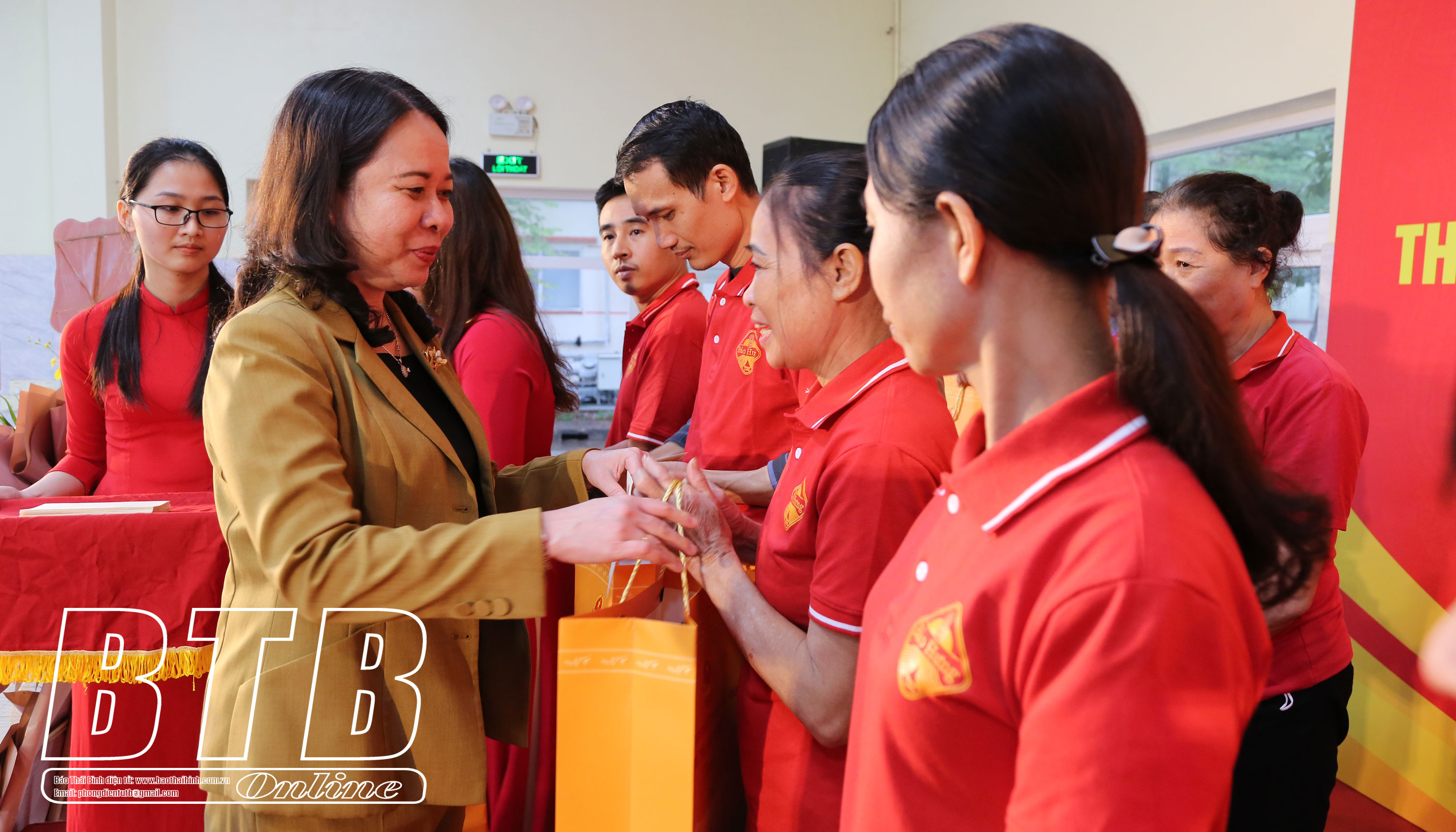 Đến thăm, động viên, tặng quà 20 công nhân có hoàn cảnh khó khăn tại Công ty Cổ phần Quốc tế Bảo Hưng, đồng chí Phó Chủ tịch nước chia sẻ, năm 2023 dưới sự lãnh đạo của Đảng, sự nỗ lực của cả hệ thống chính trị cùng sự đóng góp của các tầng lớp nhân dân, doanh nghiệp trong đó có giai cấp công nhân, đất nước đã được đạt những thành tựu quan trọng trên tất cả các lĩnh vực. Đảng, Nhà nước luôn quan tâm, chăm lo, nâng cao đời sống vật chất, tinh thần cho người dân, trong đó có công nhân lao động. Năm 2023, Thái Bình đã đạt được những kết quả nổi bật trong phát triển kinh tế - xã hội, trong thành tựu chung đó có sự đóng góp tích cực của đội ngũ công nhân trong các doanh nghiệp trên địa bàn tỉnh nói chung và của Công ty Cổ phần Quốc tế Bảo Hưng nói riêng.