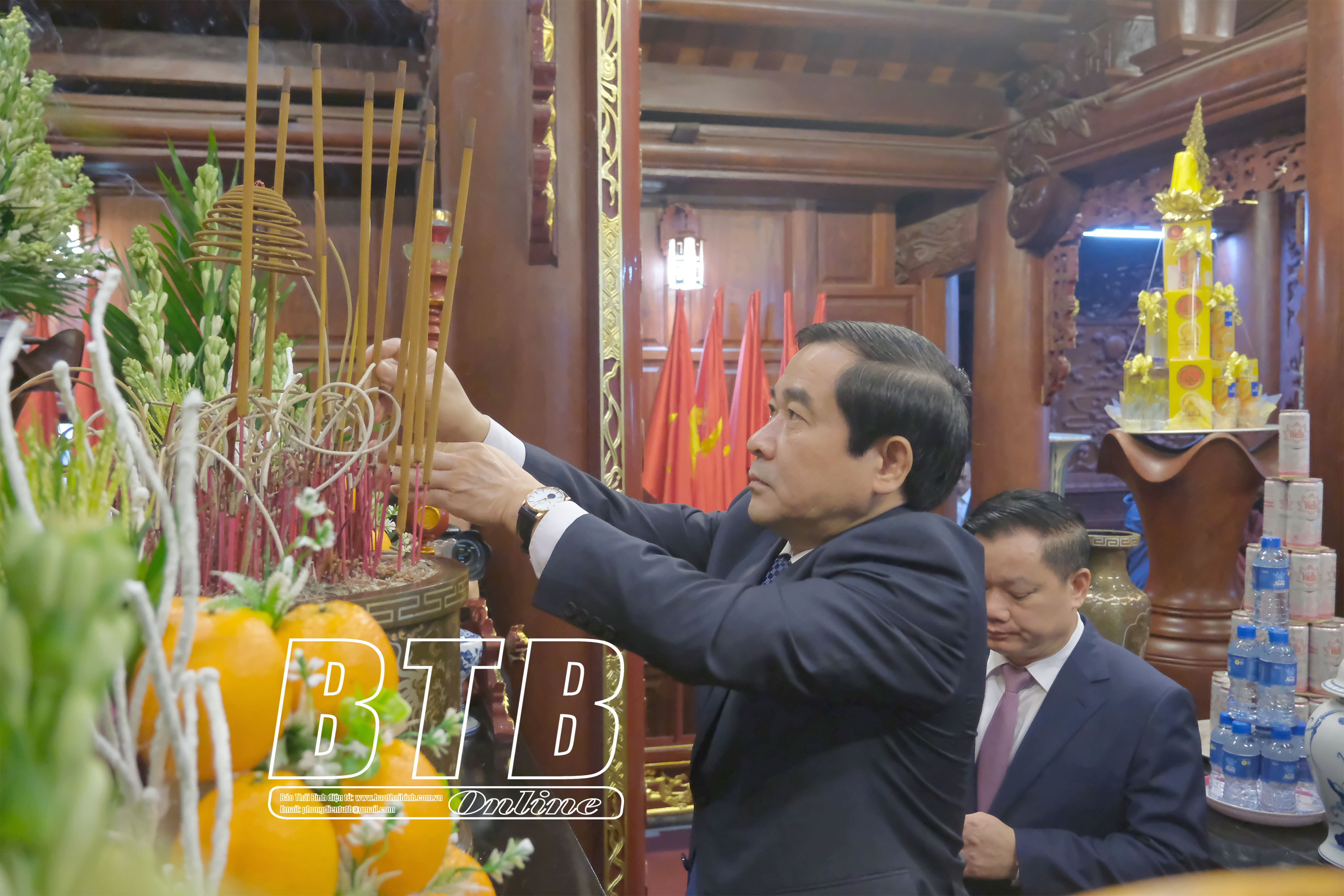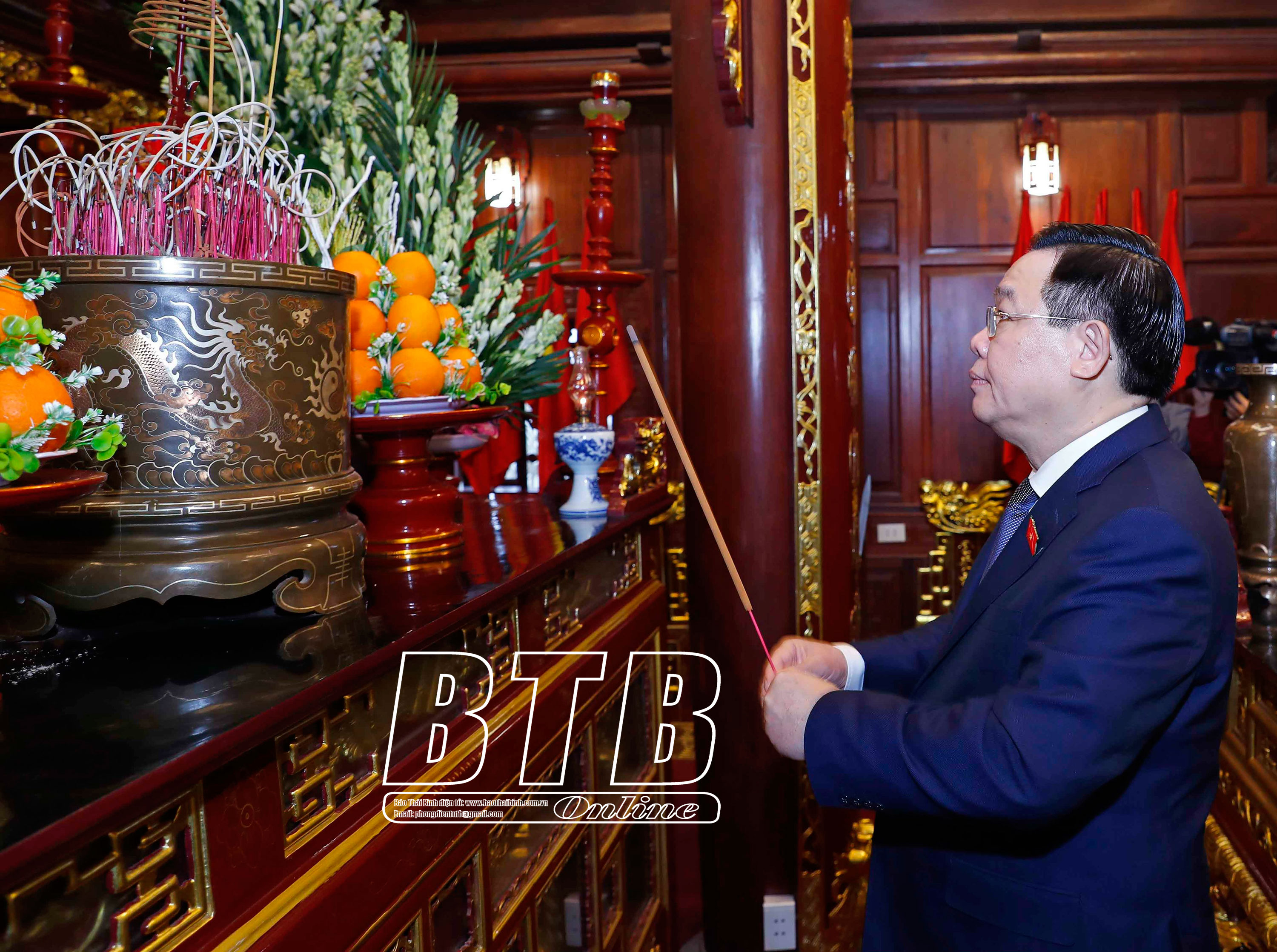 Trong không khí trang nghiêm, thành kính, Chủ tịch Quốc hội Vương Đình Huệ và các thành viên đoàn công tác cùng các đồng chí lãnh đạo tỉnh đã dâng hương, dâng lẵng hoa bày tỏ lòng biết ơn vô hạn và kính trọng sâu sắc Chủ tịch Hồ Chí Minh - Anh hùng giải phóng dân tộc, danh nhân văn hóa thế giới, lãnh tụ muôn vàn kính yêu của dân tộc Việt Nam, nhà hoạt động quốc tế xuất sắc. Người đã cống hiến, hy sinh trọn đời mình cho sự nghiệp giải phóng dân tộc, giải phóng giai cấp, đấu tranh cho hòa bình, độc lập dân tộc và hạnh phúc của nhân dân. Chủ tịch Hồ Chí Minh đã đi xa nhưng sự nghiệp vĩ đại, tấm gương cao đẹp của Người sống mãi với non sông đất nước Việt Nam. Tư tưởng, đạo đức, phong cách của Người luôn là nền tảng tư tưởng, kim chỉ nam cho mọi hành động, soi đường chỉ lối cho cách mạng Việt Nam đi từ thắng lợi này đến thắng lợi khác.