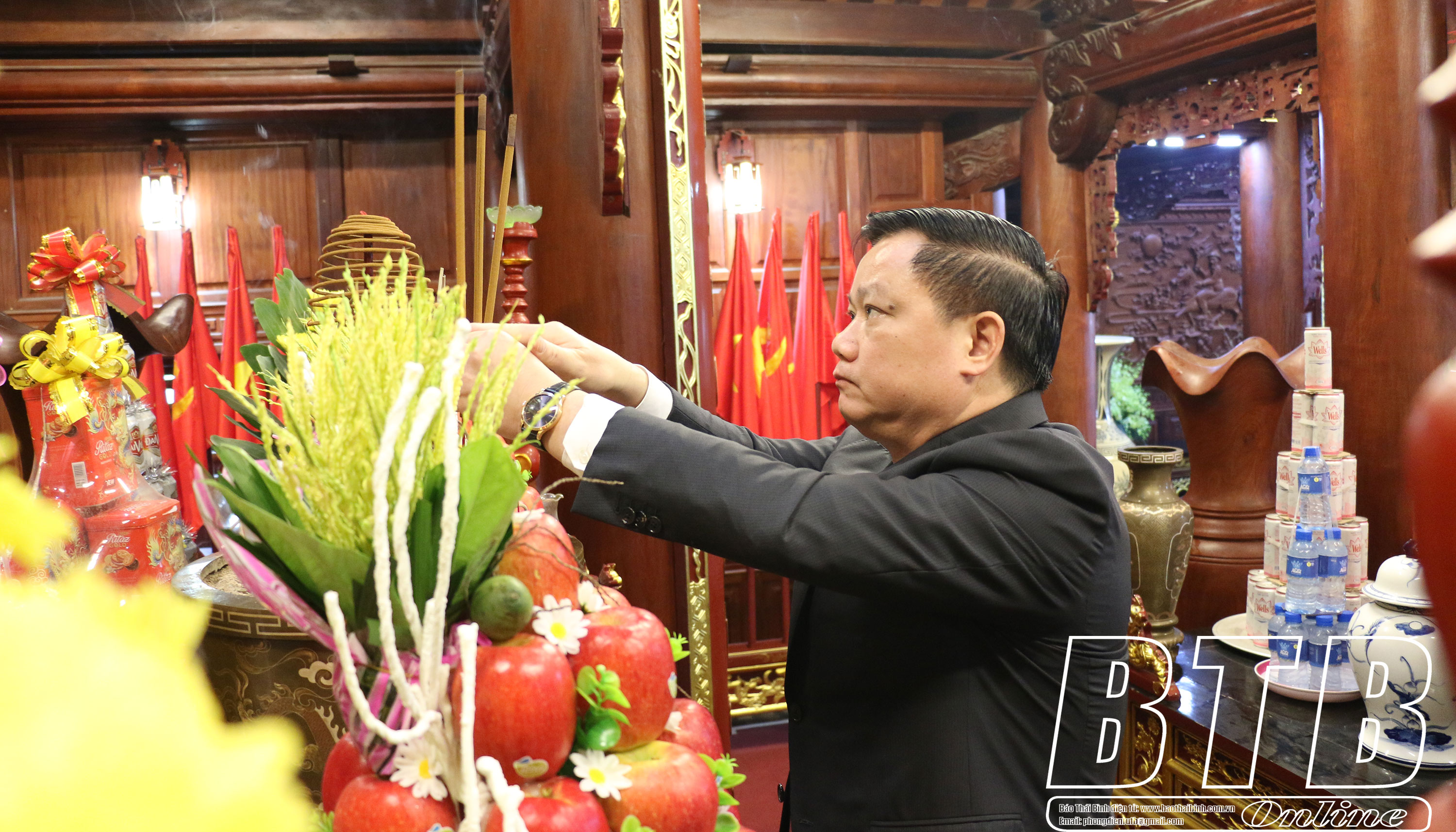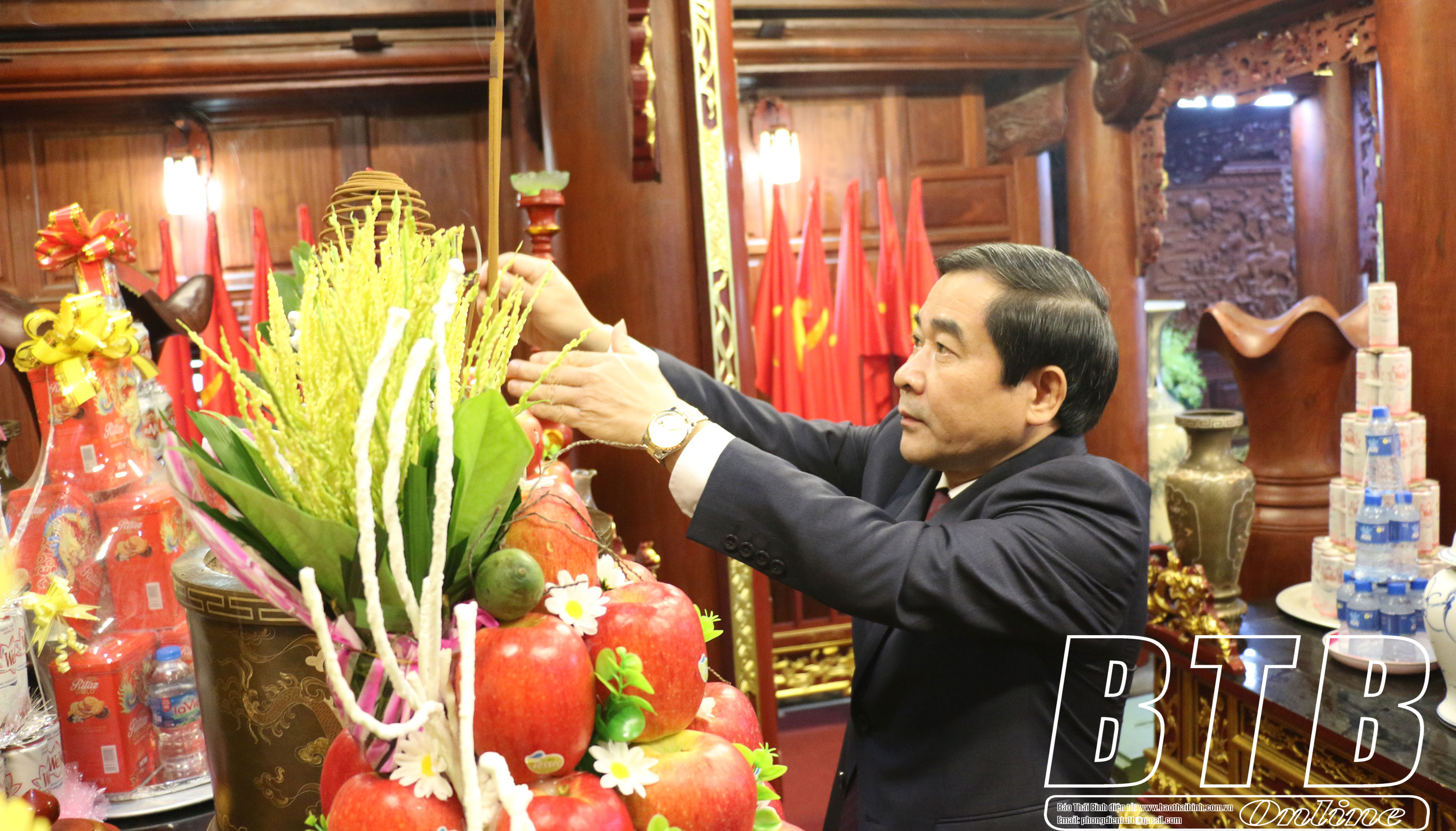 Dự lễ dâng hương có các đồng chí: Ngô Đông Hải, Ủy viên Ban Chấp hành Trung ương Đảng, Bí thư Tỉnh ủy; Nguyễn Tiến Thành, Phó Bí thư thường trực Tỉnh ủy, Chủ tịch HĐND tỉnh; Nguyễn Khắc Thận, Phó Bí thư Tỉnh ủy, Chủ tịch UBND tỉnh; các đồng chí Ủy viên Ban Thường vụ Tỉnh ủy; lãnh đạo HĐND, UBND tỉnh, Ủy ban MTTQ tỉnh; Đoàn đại biểu Quốc hội tỉnh; lãnh đạo các sở, ban, ngành, đoàn thể và thành phố Thái Bình.
