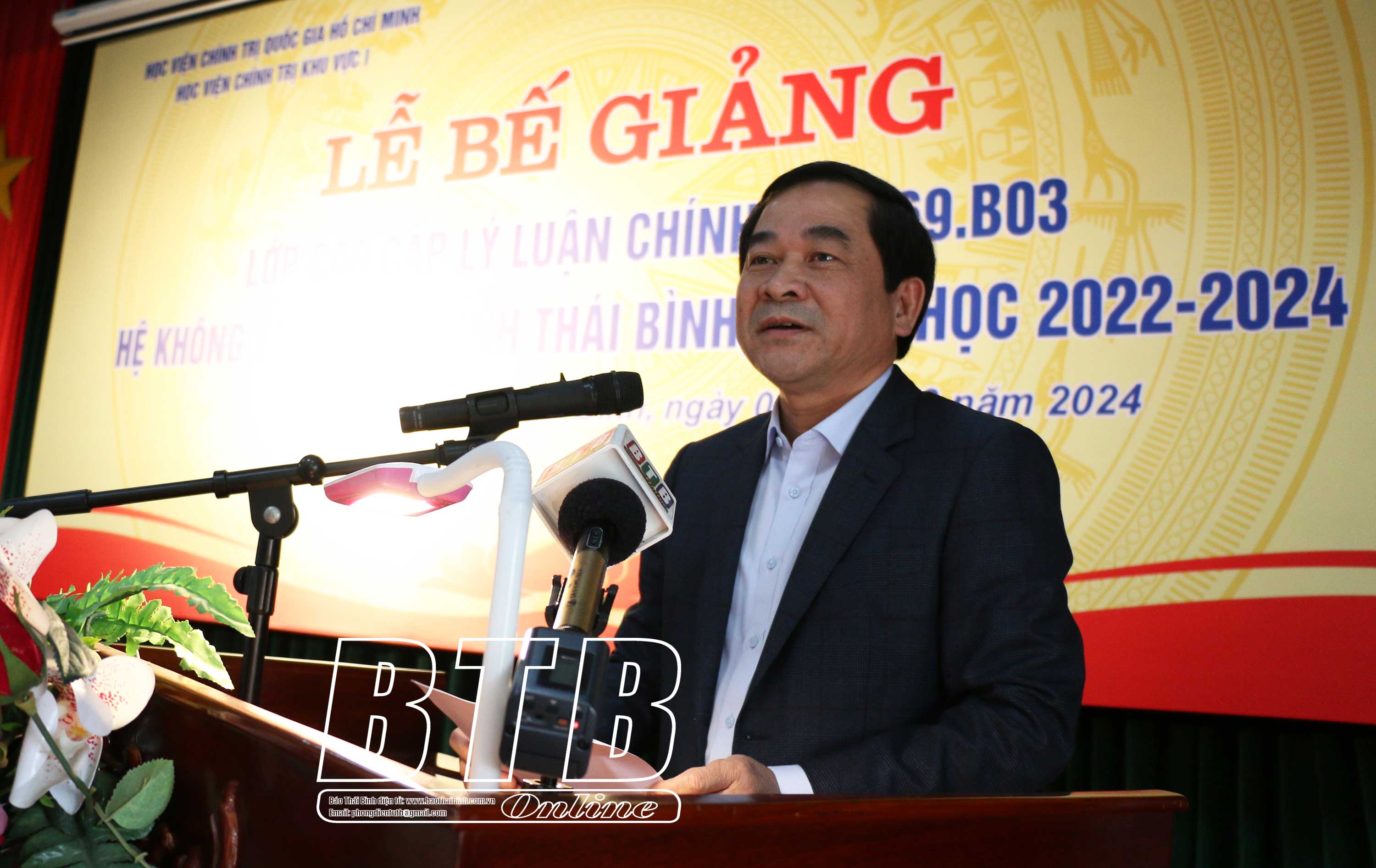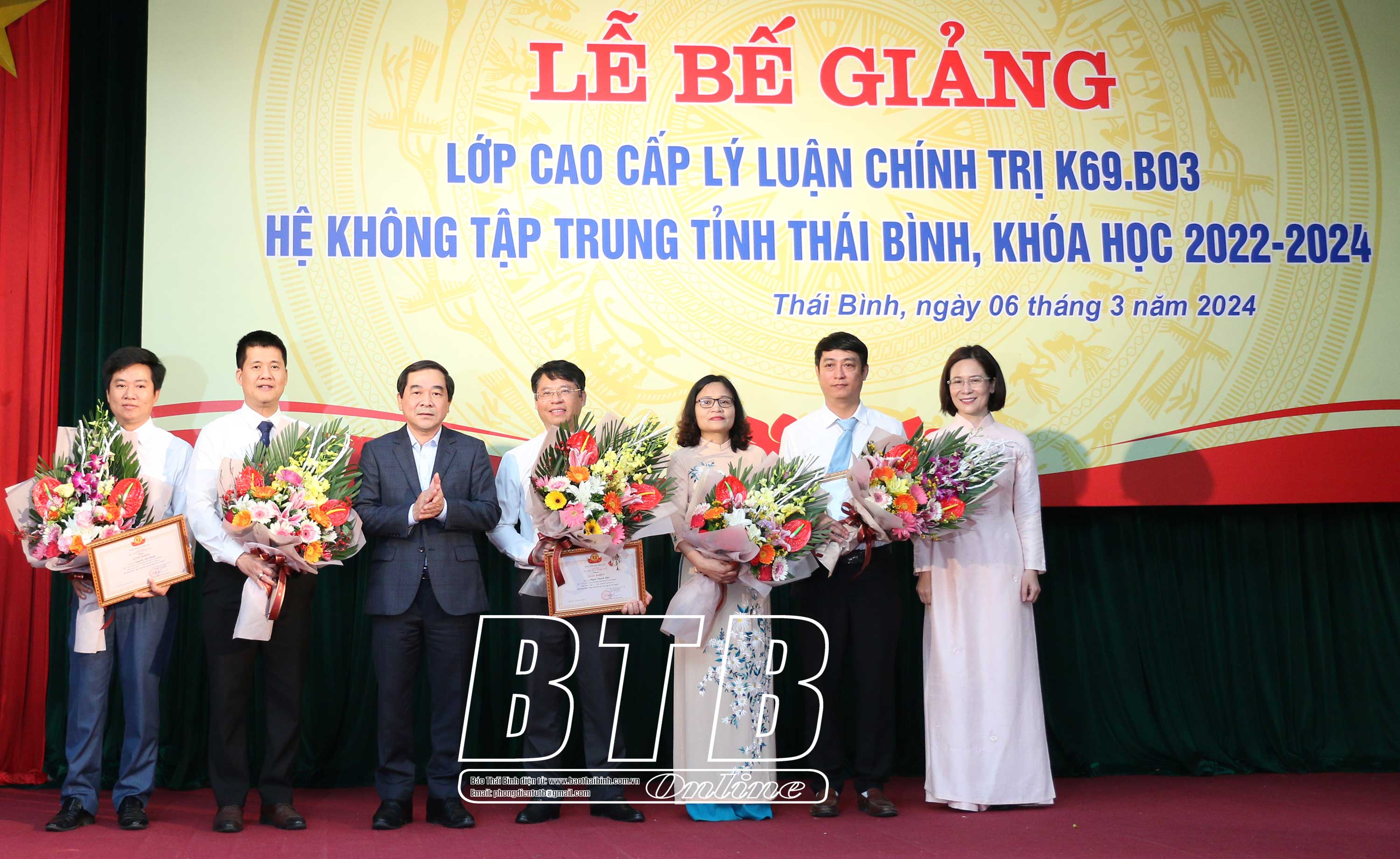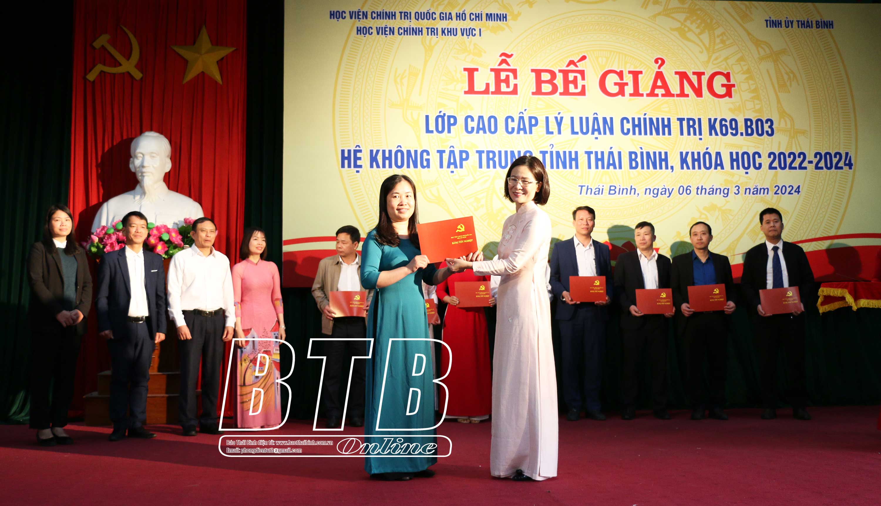 Sáng ngày 6/3, tại Trường Chính trị tỉnh, Ban Thường vụ Tỉnh ủy phối hợp với Học viện Chính trị Khu vực I tổ chức bế giảng lớp cao cấp lý luận chính trị K69.B03 hệ không tập trung tỉnh Thái Bình, khóa học 2022 - 2024.