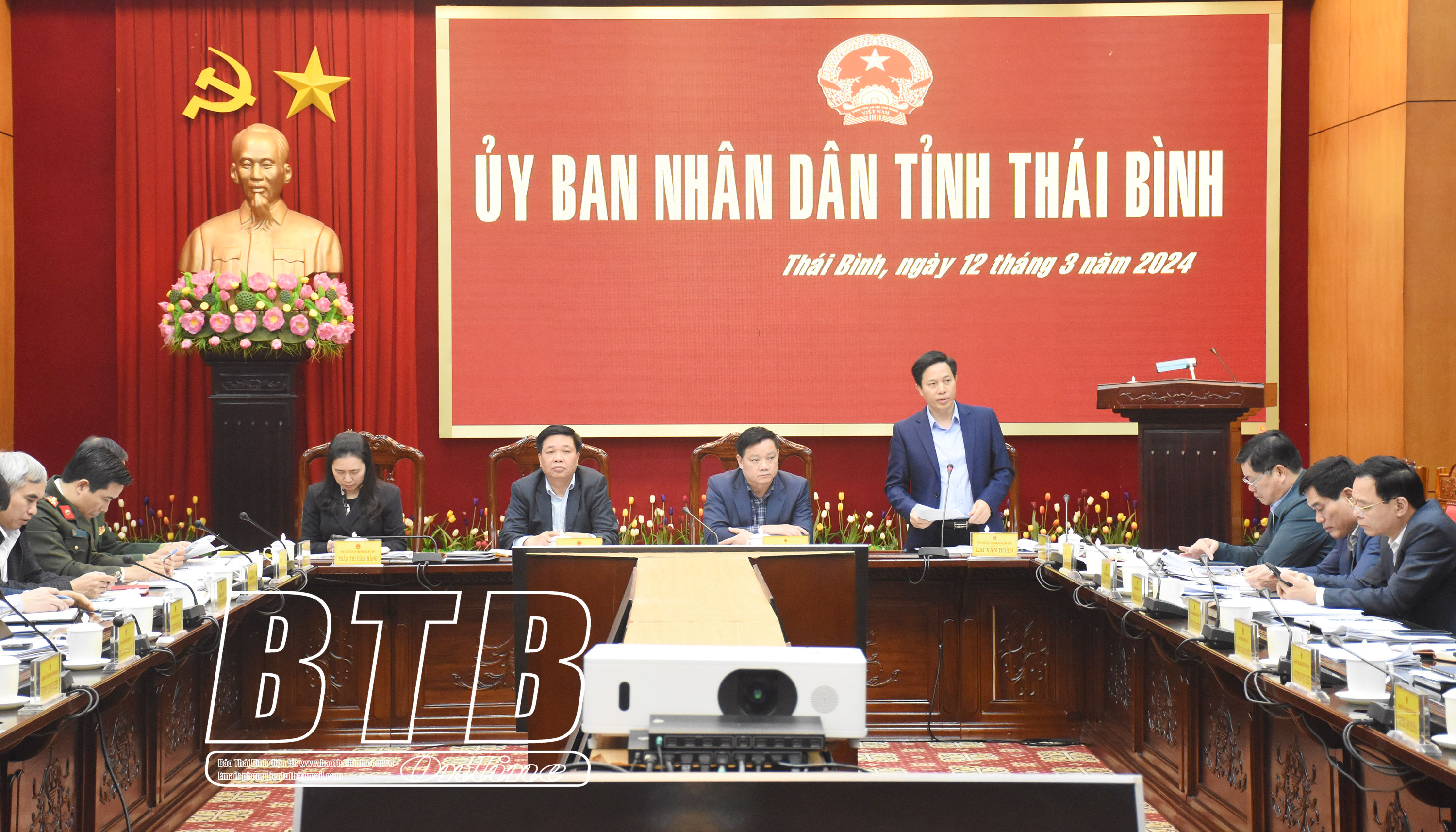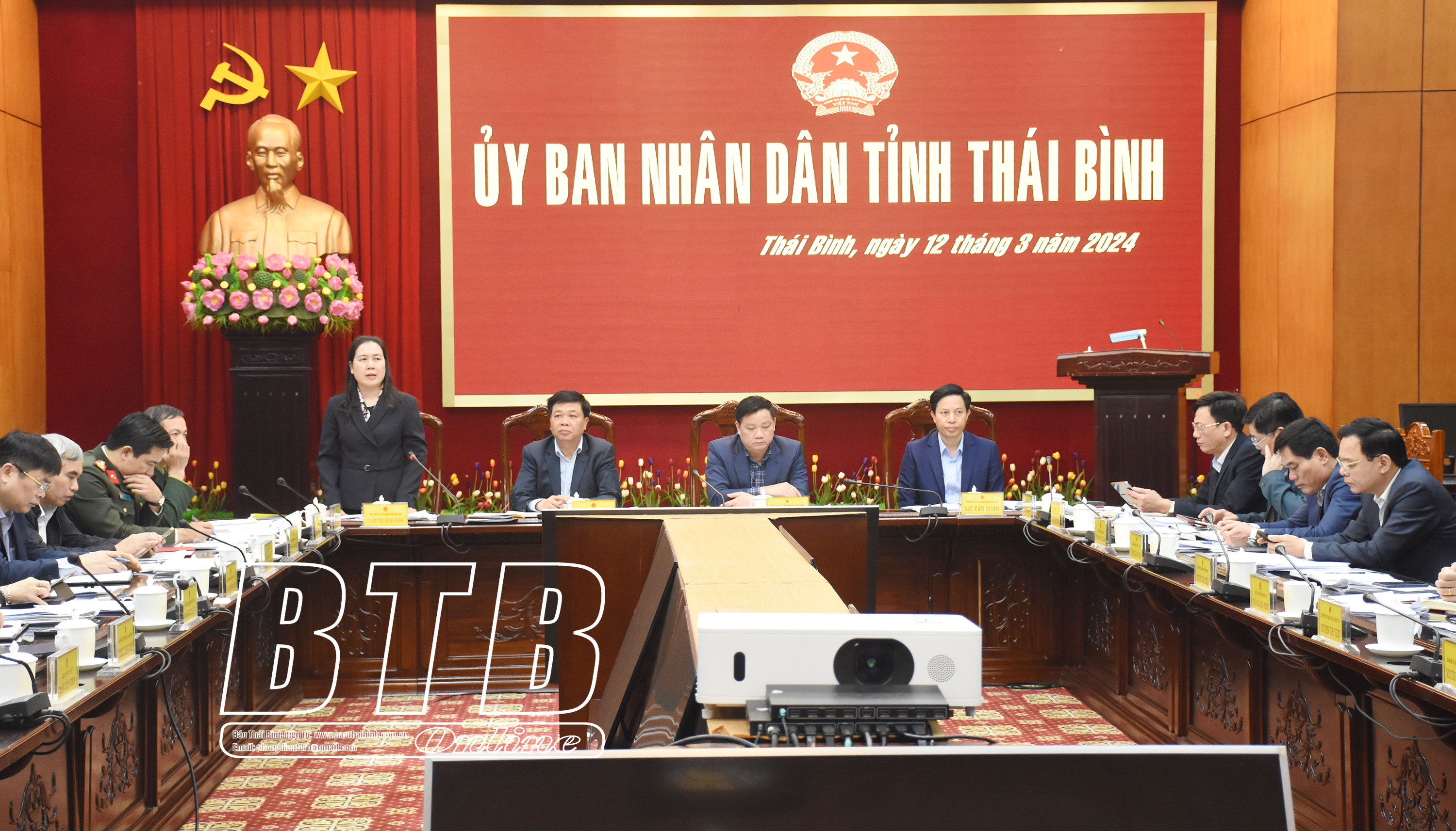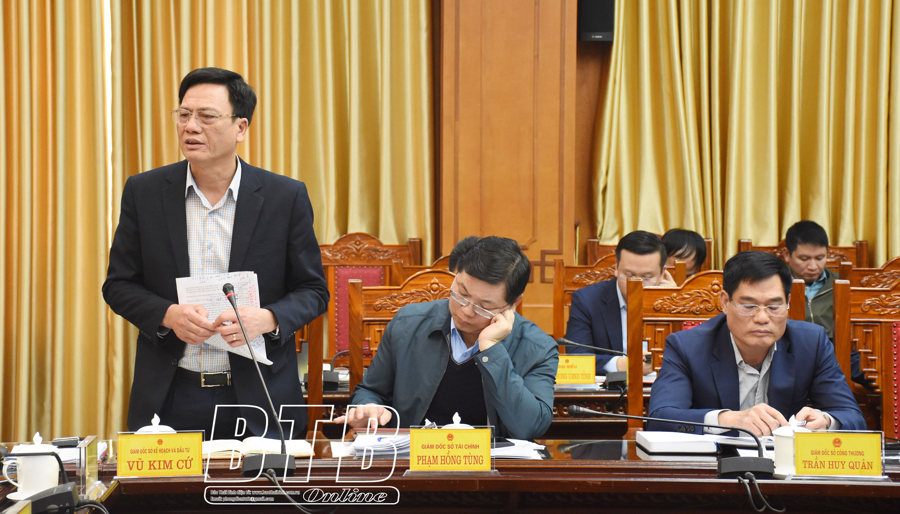 Tại cuộc họp, Ban Quản lý Dự án Đầu tư xây dựng các công trình giao thông tỉnh, Sở Kế hoạch và Đầu tư báo cáo phương án thực hiện Dự án tuyến đường thành phố Thái Bình đi Cầu Nghìn; Sở Nội vụ báo cáo đề xuất chính sách hỗ trợ của tỉnh đối với cán bộ, công chức cấp xã, viên chức, người hoạt động không chuyên trách ở cấp xã dôi dư do thực hiện sắp xếp đơn vị hành chính cấp xã giai đoạn 2023-2025; Sở Tài nguyên và Môi trường báo cáo về tình hình khai thác cát và Đề án xây dựng hệ thống giám sát khai thác khoáng sản trên địa bàn tỉnh; Sở Y tế báo cáo dự thảo Nghị quyết của HĐND tỉnh quy định giá dịch vụ khám bệnh, chữa bệnh không thuộc phạm vi thanh toán của quỹ bảo hiểm y tế trong các cơ sở khám bệnh, chữa bệnh của Nhà nước thuộc phạm vi quản lý của tỉnh; Sở Lao động - Thương binh và Xã hội báo cáo dự thảo Nghị quyết của HĐND tỉnh quy định chính sách hỗ trợ học phí học nghề trình độ trung cấp, cao đẳng; đào tạo chương trình chất lượng cao và hỗ trợ học phí học chương trình giáo dục thường xuyên cấp THPT cho học sinh tốt nghiệp THCS học tiếp lên trình độ trung cấp trên địa bàn tỉnh Thái Bình.