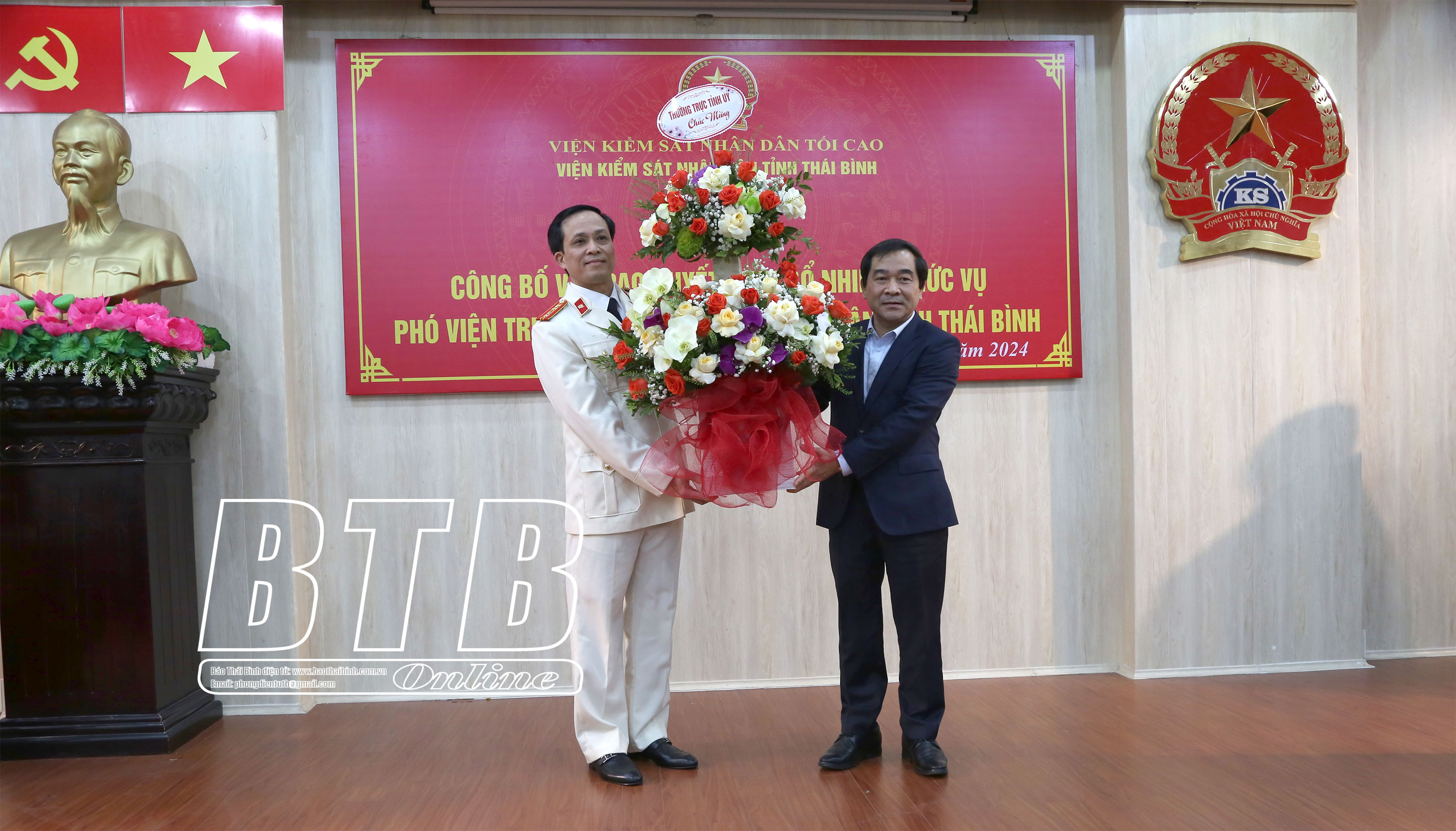 Theo quyết định của Viện trưởng Viện KSND Tối cao, đồng chí Nguyễn Anh Đức, Chánh Văn phòng Viện KSND tỉnh được bổ nhiệm giữ chức vụ Phó Viện trưởng Viện KSND tỉnh Thái Bình kể từ ngày 1/4/2024, thời hạn bổ nhiệm 5 năm.
