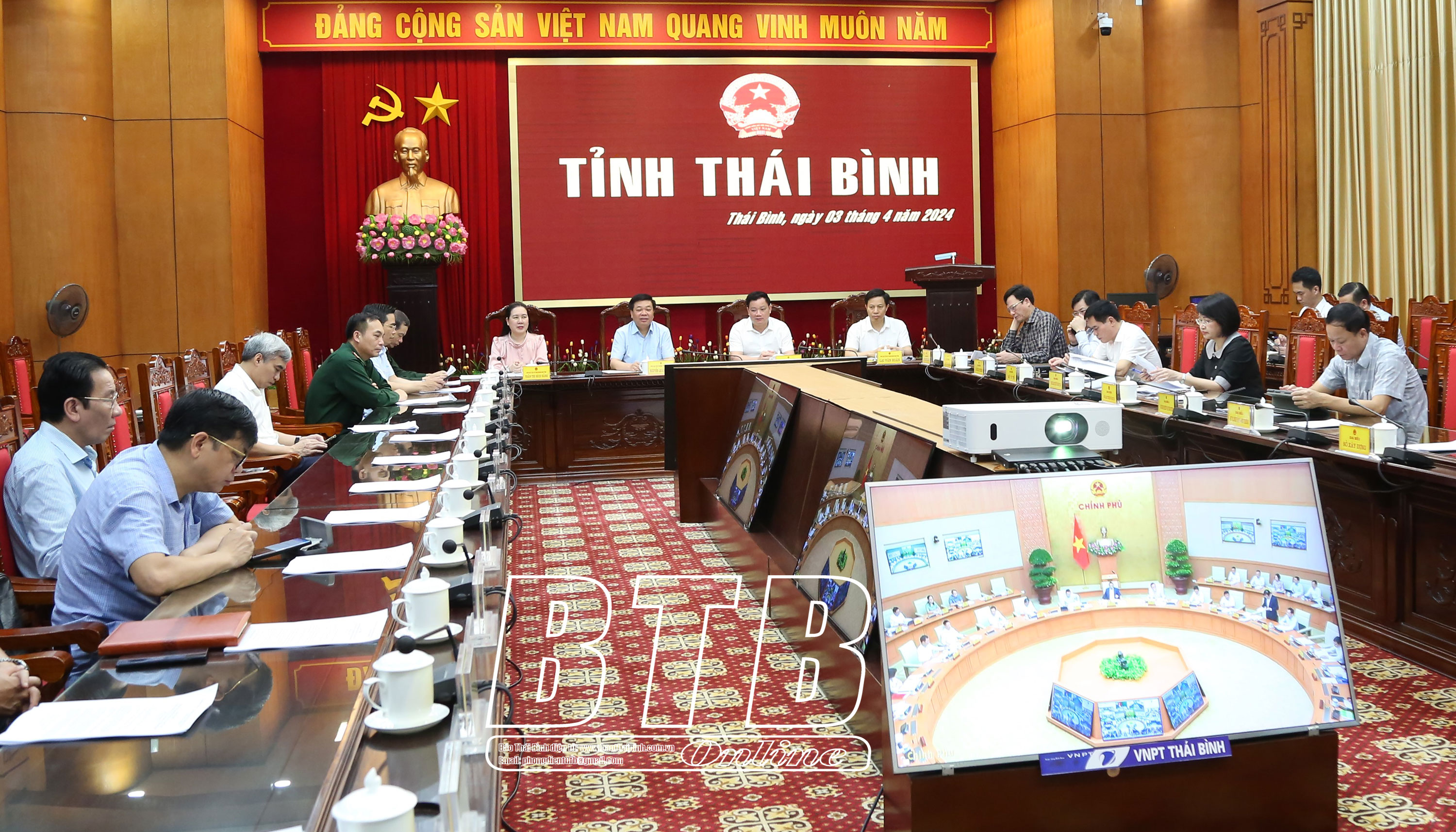 Các đồng chí lãnh đạo tỉnh và đại biểu dự hội nghị tại điểm cầu Thái Bình.