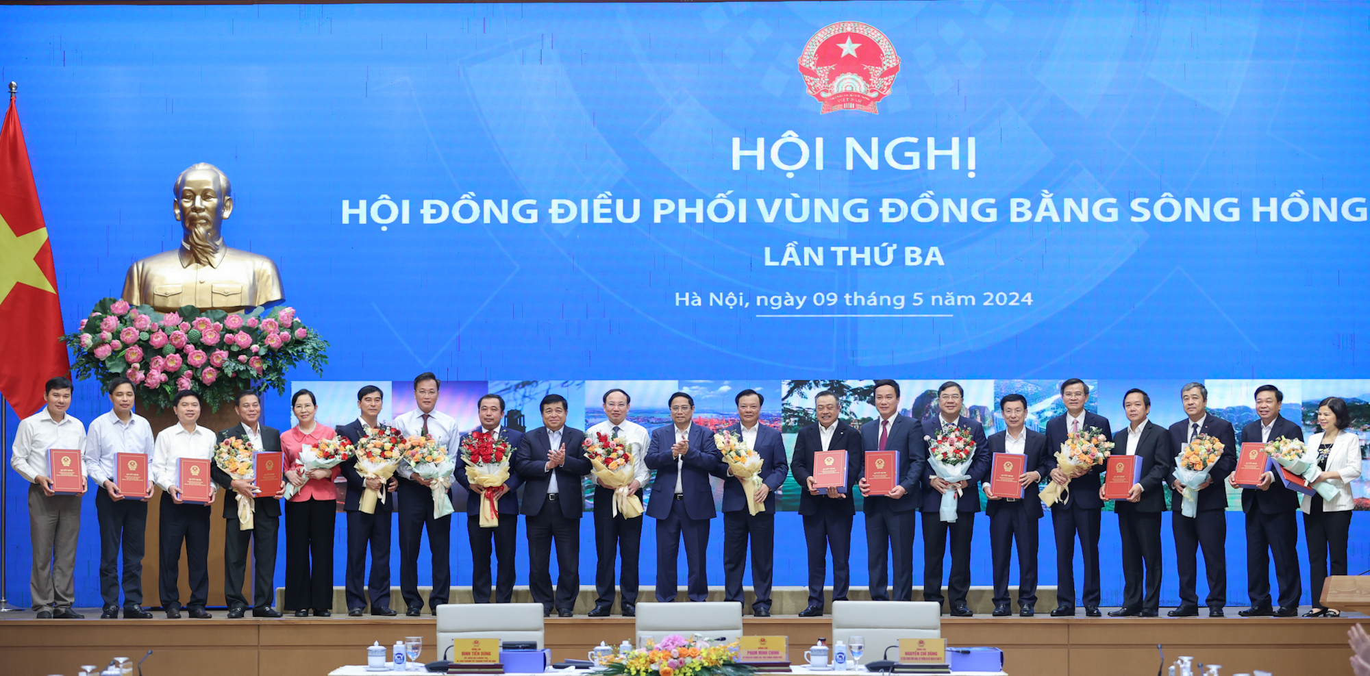 Trong khuôn khổ hội nghị, Thủ tướng Chính phủ Phạm Minh Chính và lãnh đạo Bộ Kế hoạch và Đầu tư đã trao quyết định của Thủ tướng Chính phủ phê duyệt Quy hoạch cho lãnh đạo các tỉnh, thành phố vùng đồng bằng sông Hồng.