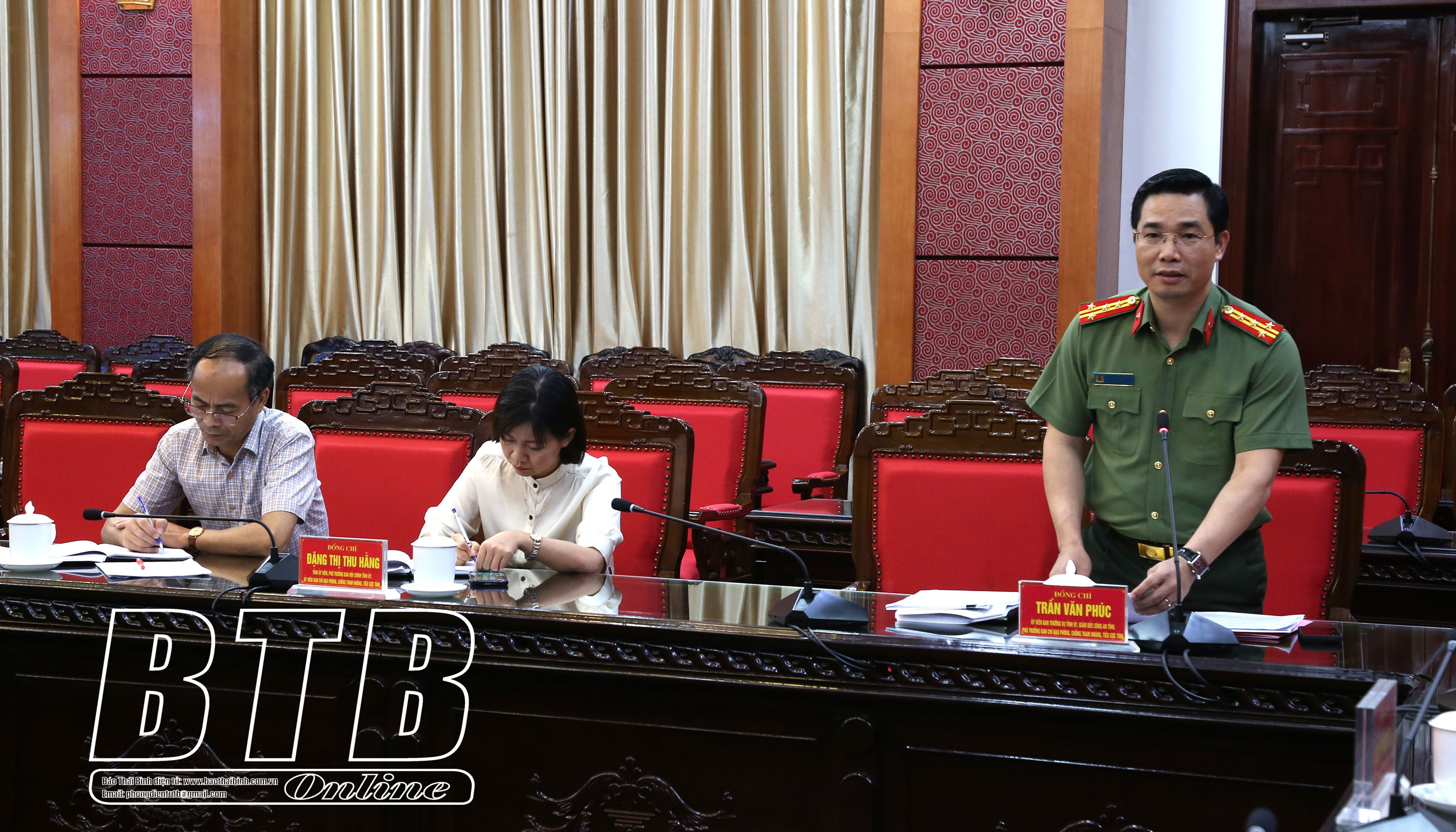 Đồng chí Trần Văn Phúc, Ủy viên Ban Thường vụ Tỉnh ủy, Giám đốc Công an tỉnh phát biểu tại phiên họp.