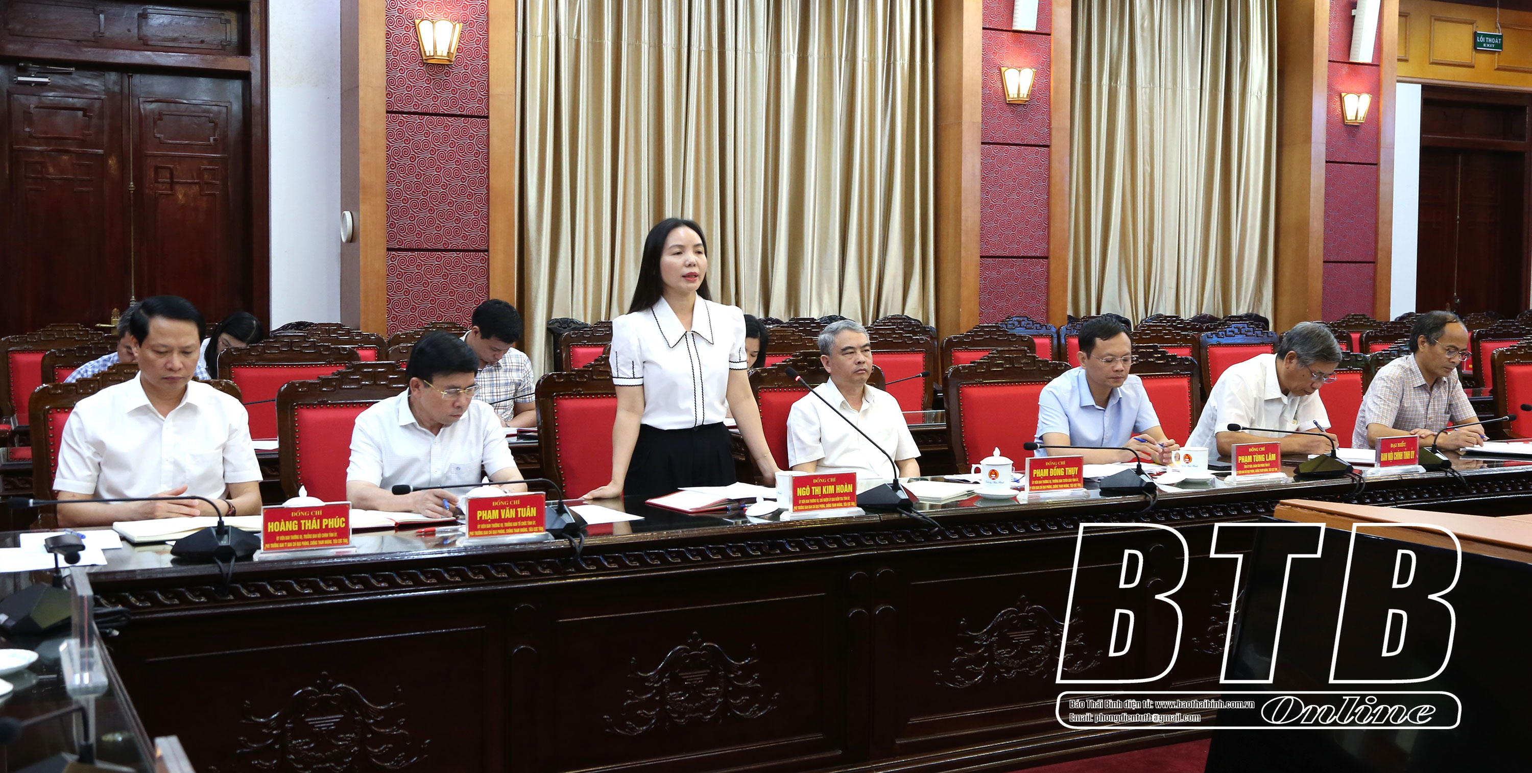 Đồng chí Ngô Thị Kim Hoàn, Ủy viên Ban Thường vụ, Chủ nhiệm Ủy ban Kiểm tra Tỉnh ủy phát biểu tại phiên họp.