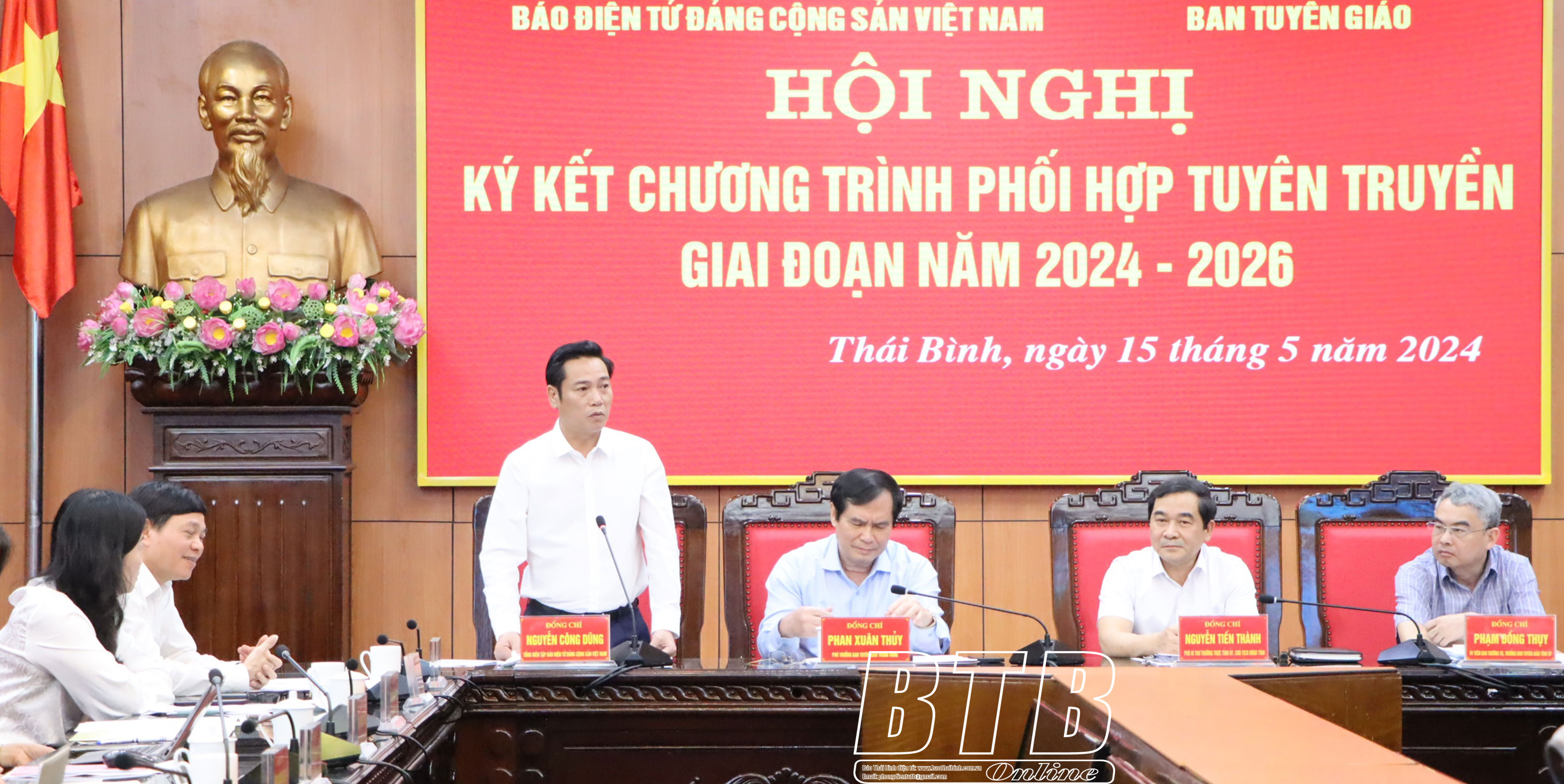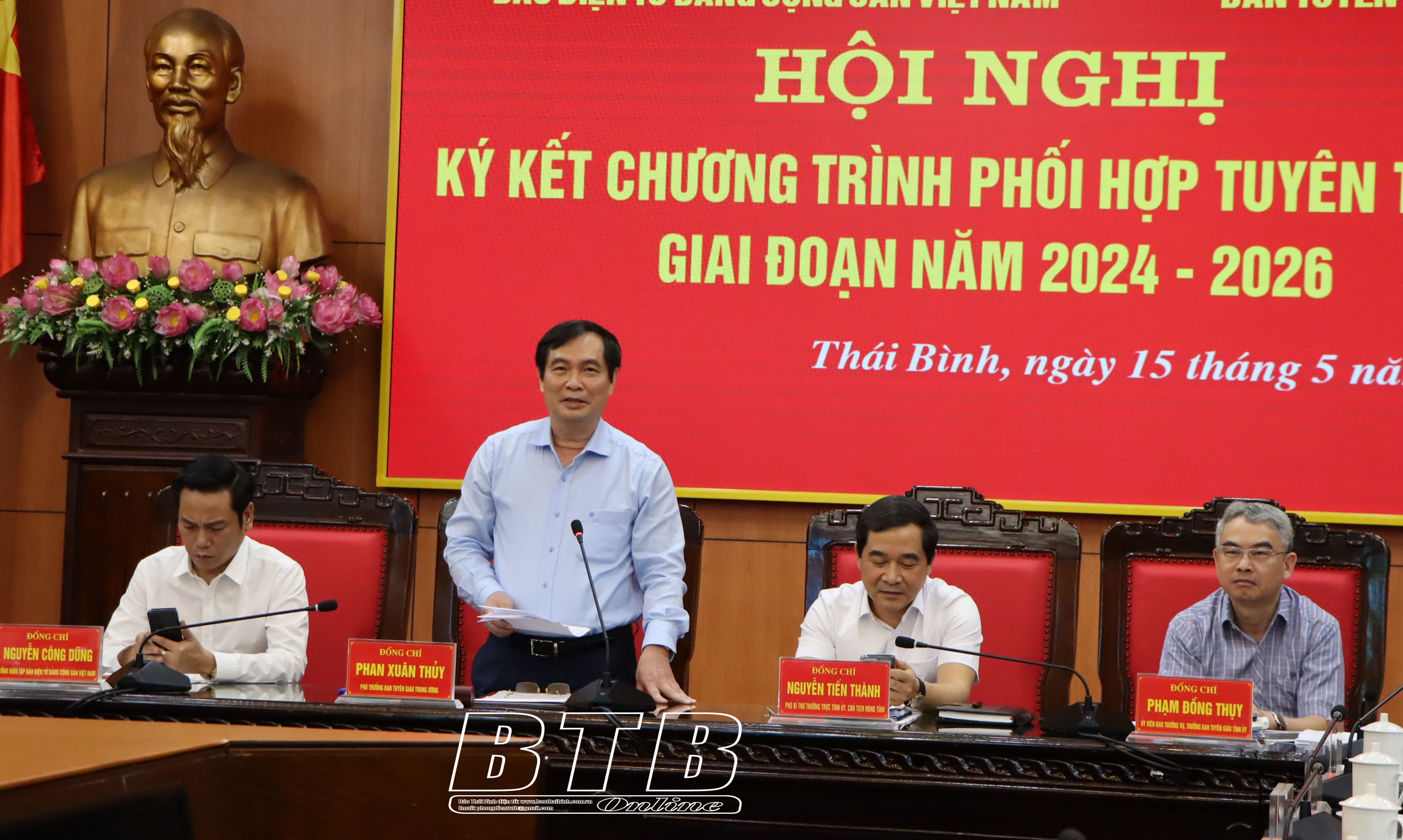 Đồng chí Phan Xuân Thủy, Phó Trưởng ban Tuyên giáo Trung ương phát biểu đánh giá cao những thành tựu tỉnh Thái Bình đạt được trong những năm qua, đồng thời khẳng định việc ký kết chương trình phối hợp tuyên truyền đã góp phần hiện thực hóa Quy định số 238 của Ban Chấp hành Trung ương về ban hành Quy chế phối hợp giữa ban tuyên giáo các cấp với cơ quan nhà nước cùng cấp trong việc thực thi pháp luật, triển khai kế hoạch phát triển kinh tế - xã hội, giải quyết các vấn đề nổi cộm, nhân dân quan tâm; đồng thời góp phần thực hiện Chỉ thị của Bộ Chính trị (khóa VIII), Kết luận của Ban Bí thư khóa XIII về việc mua và đọc báo, tạp chí của Đảng.