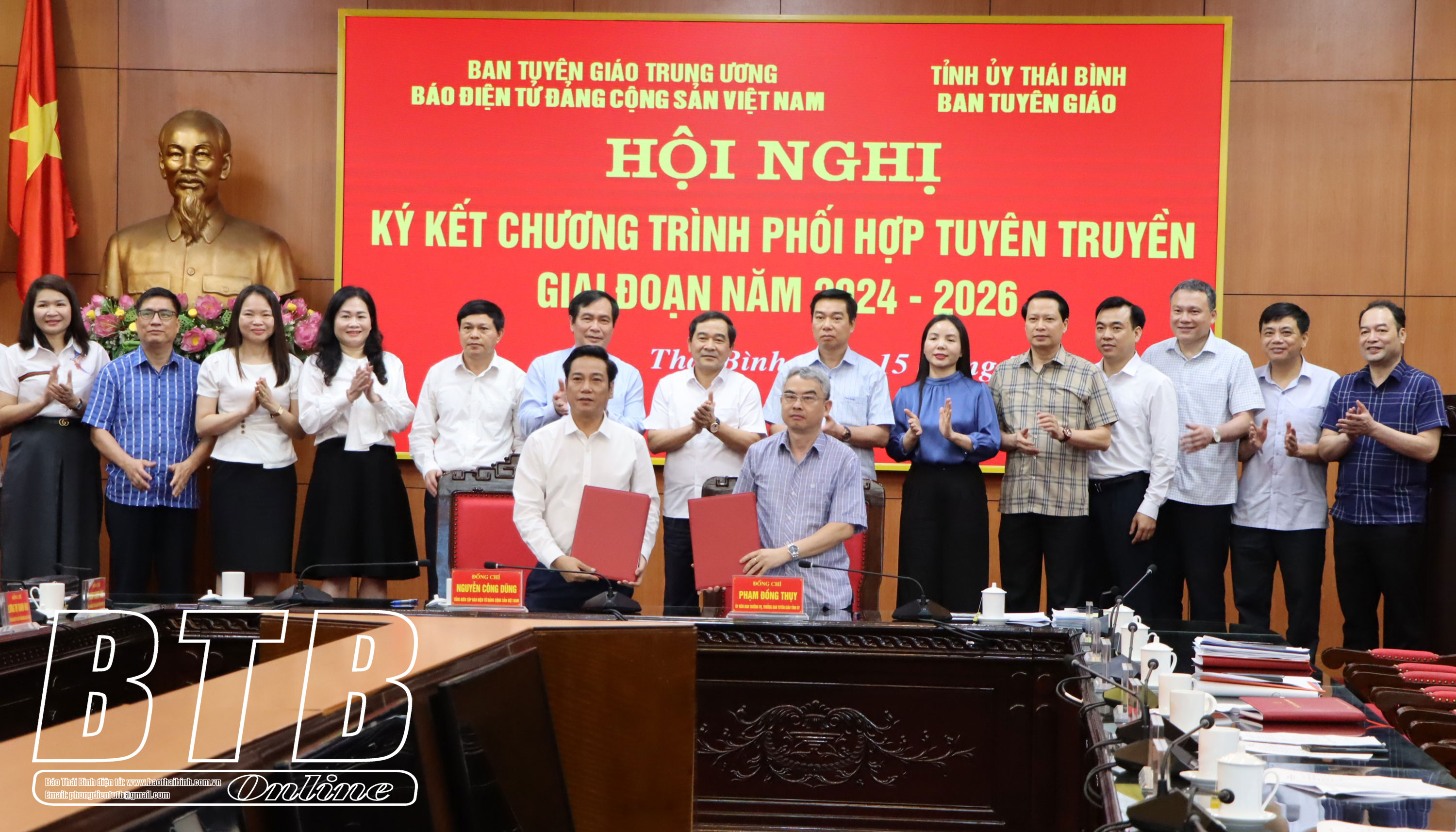 Ký kết chương trình phối hợp tuyên truyền giữa tỉnh Thái Bình với Báo điện tử Đảng Cộng sản Việt Nam.