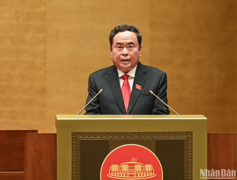 Thực hiện nghi lễ tuyên thệ tại Hội trường Diên Hồng, Nhà Quốc hội, dưới cờ đỏ sao vàng thiêng liêng của Tổ quốc, trước Quốc hội và đồng bào cử tri cả nước, Chủ tịch Quốc hội Trần Thanh Mẫn tuyên thệ: “Tuyệt đối trung thành với Tổ quốc, với nhân dân, với Hiến pháp nước Cộng hòa xã hội Chủ nghĩa Việt Nam; nỗ lực phấn đấu, hoàn thành tốt nhiệm vụ được Đảng, Nhà nước và nhân dân giao phó”.