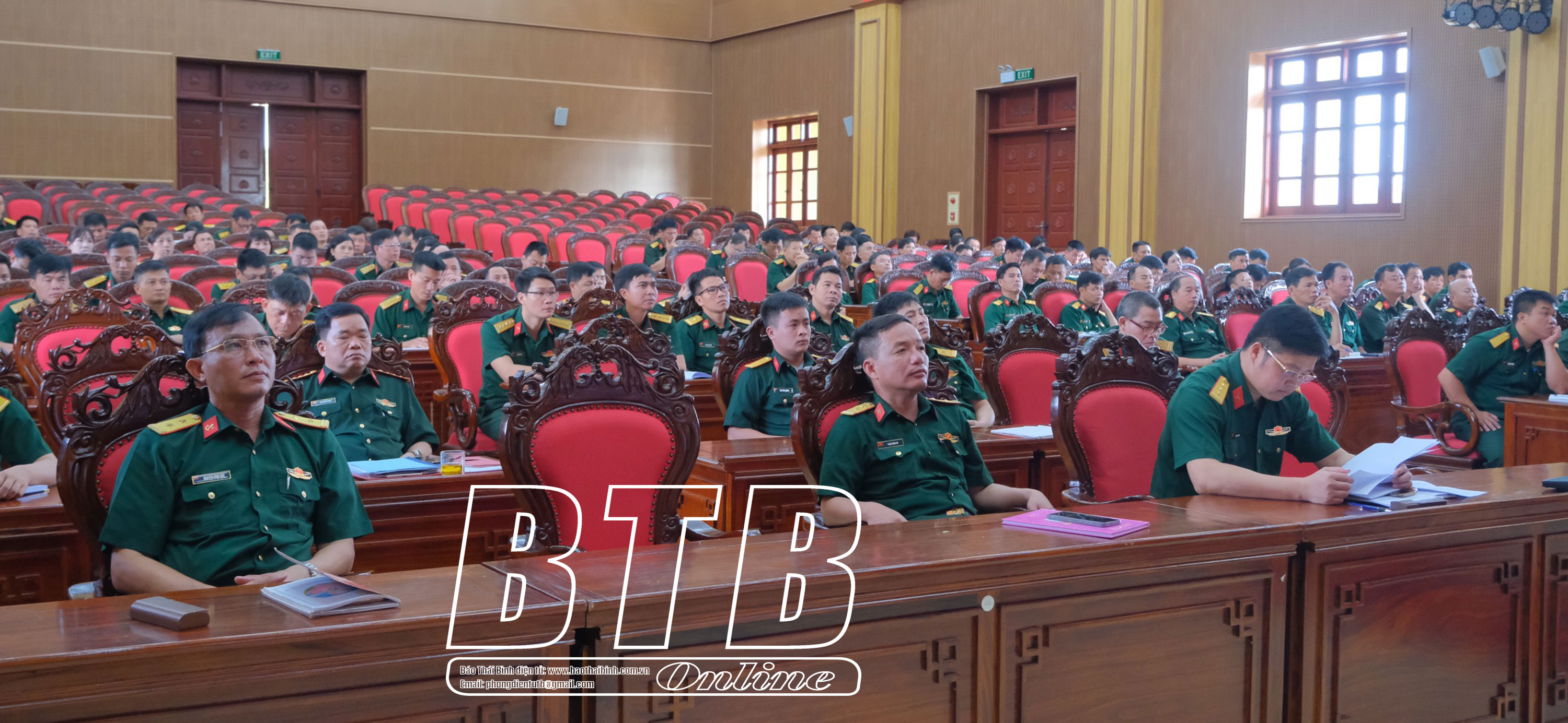 Các đại biểu dự hội nghị tại điểm cầu Bộ Chỉ huy Quân sự tỉnh. Ảnh: Quang Triệu