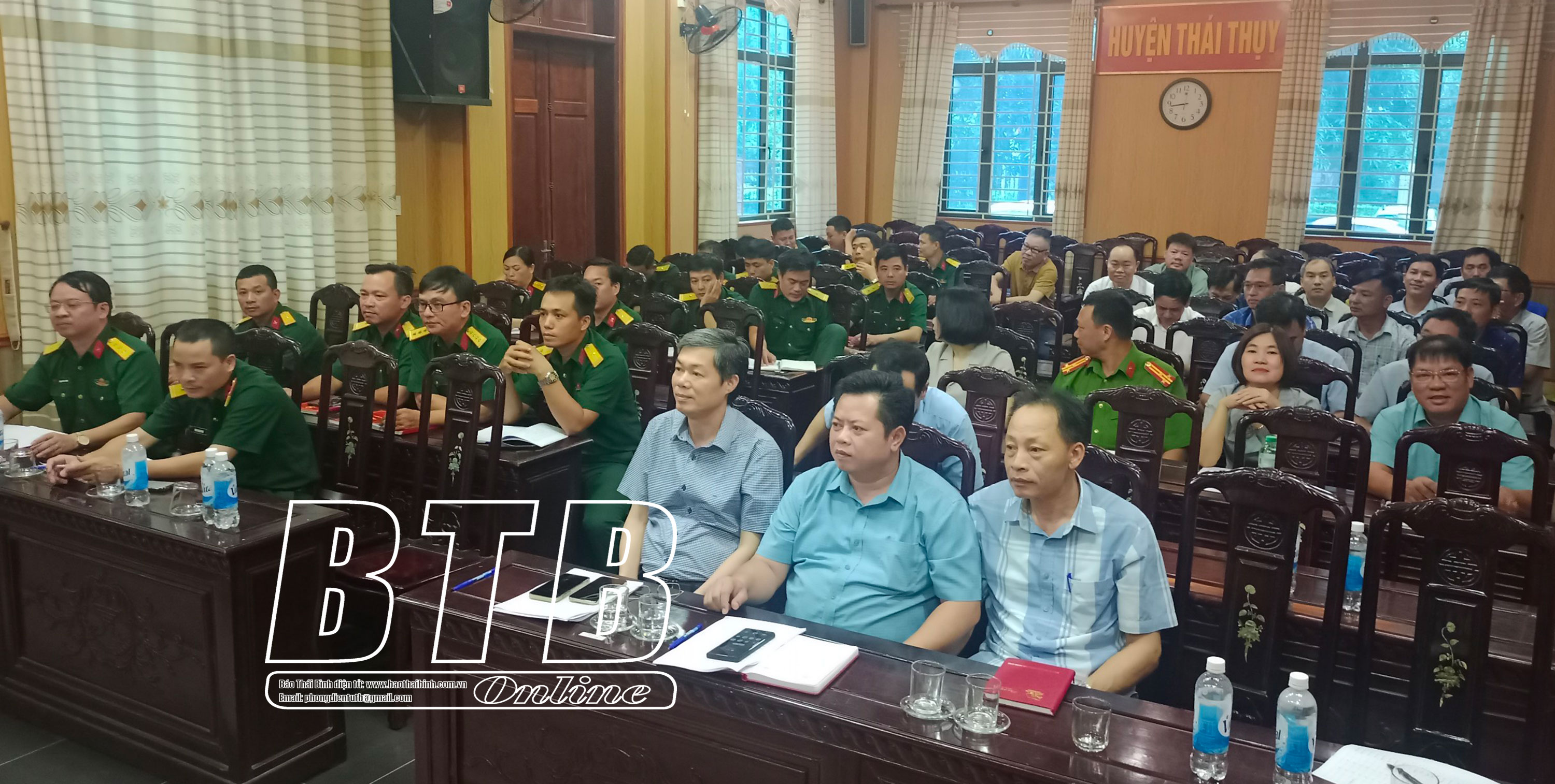 Các đại biểu dự hội nghị tại điểm cầu UBND huyện Thái Thụy. Ảnh: Hải Yến