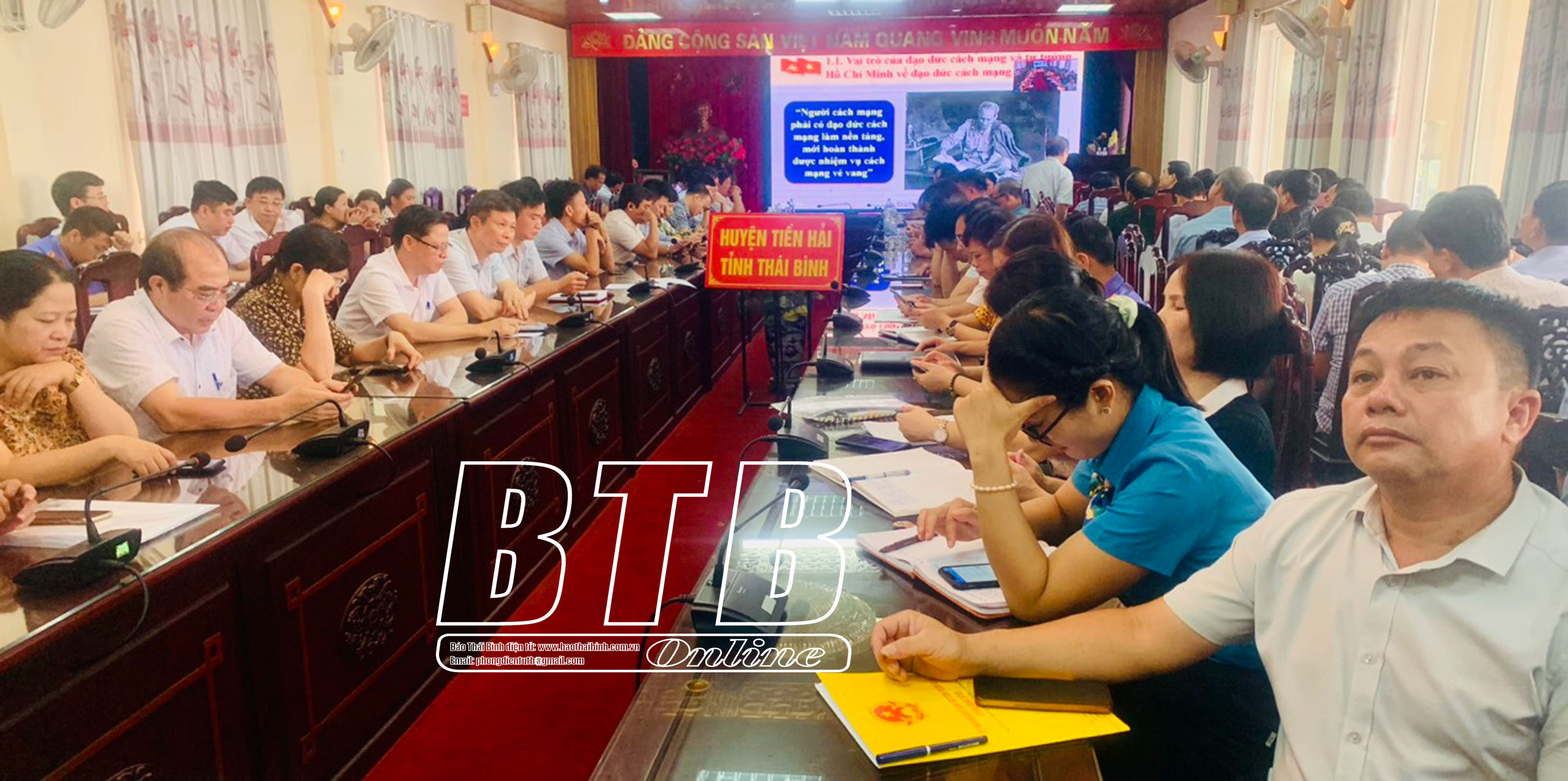 Các đại biểu dự hội nghị tại điểm cầu huyện Tiền Hải. Ảnh: Thu Hà