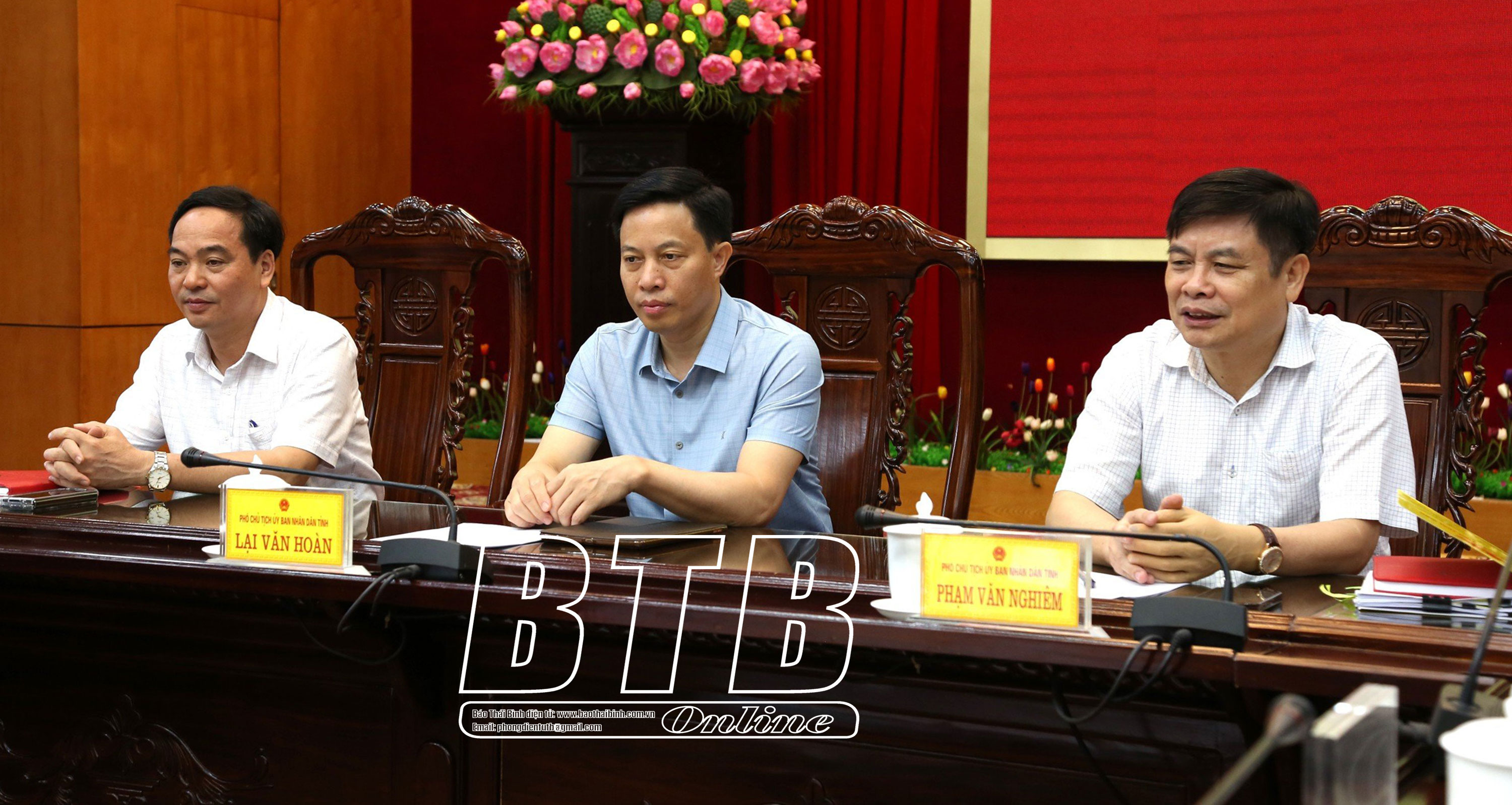 Các đồng chí: Ngô Đông Hải, Ủy viên Ban Chấp hành Trung ương Đảng, Bí thư Tỉnh ủy; Nguyễn Tiến Thành, Phó Bí thư thường trực Tỉnh ủy, Chủ tịch HĐND tỉnh dự hội nghị tại điểm cầu Thái Bình. Ảnh: Đào Quyên